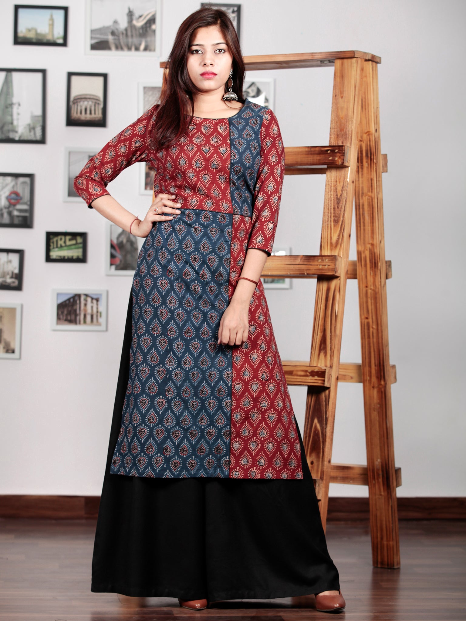 Indigo Maroon Black Beige Hand Printed Ajrakh Kurta in Natural Colors - K57BPA142