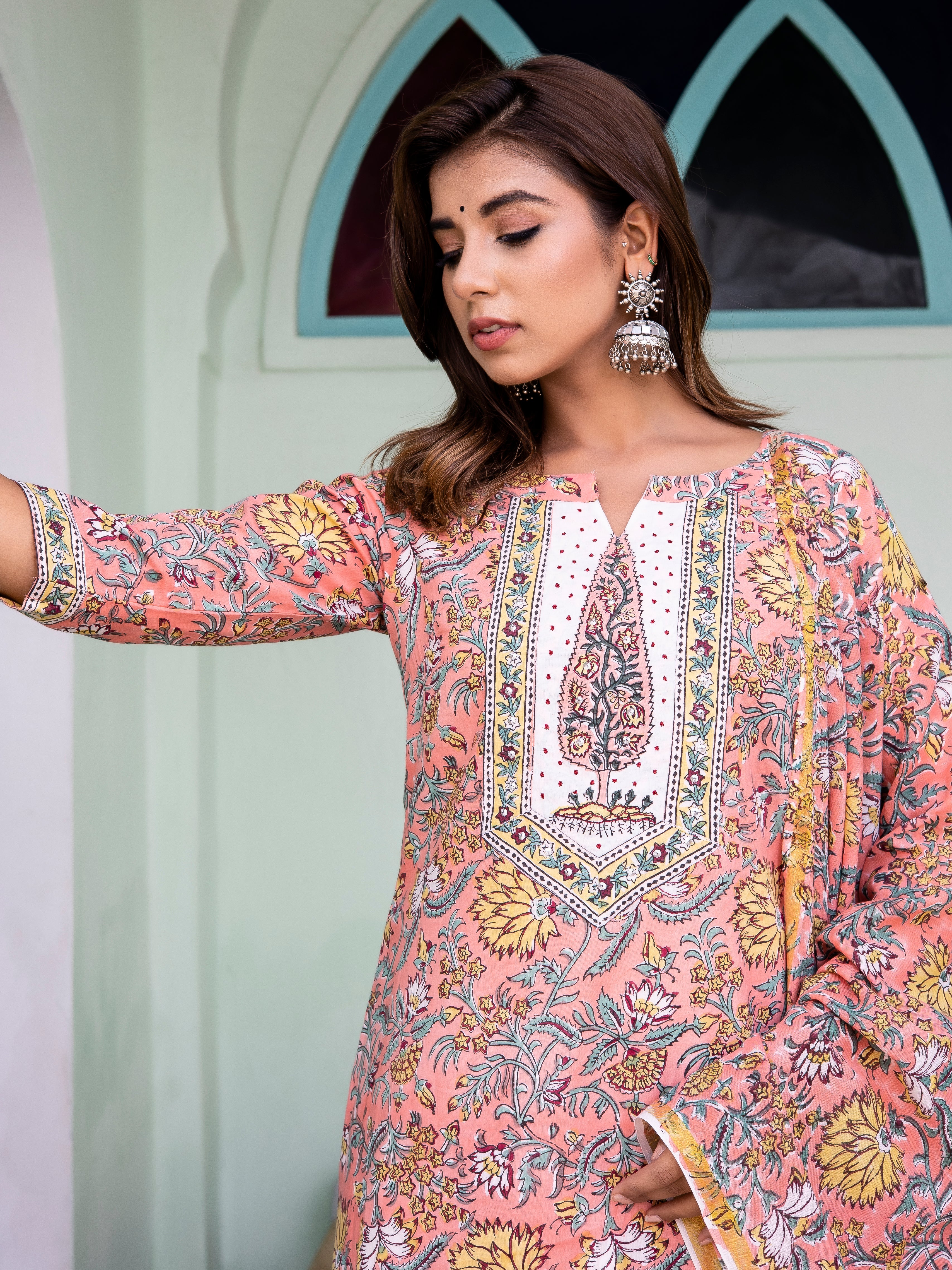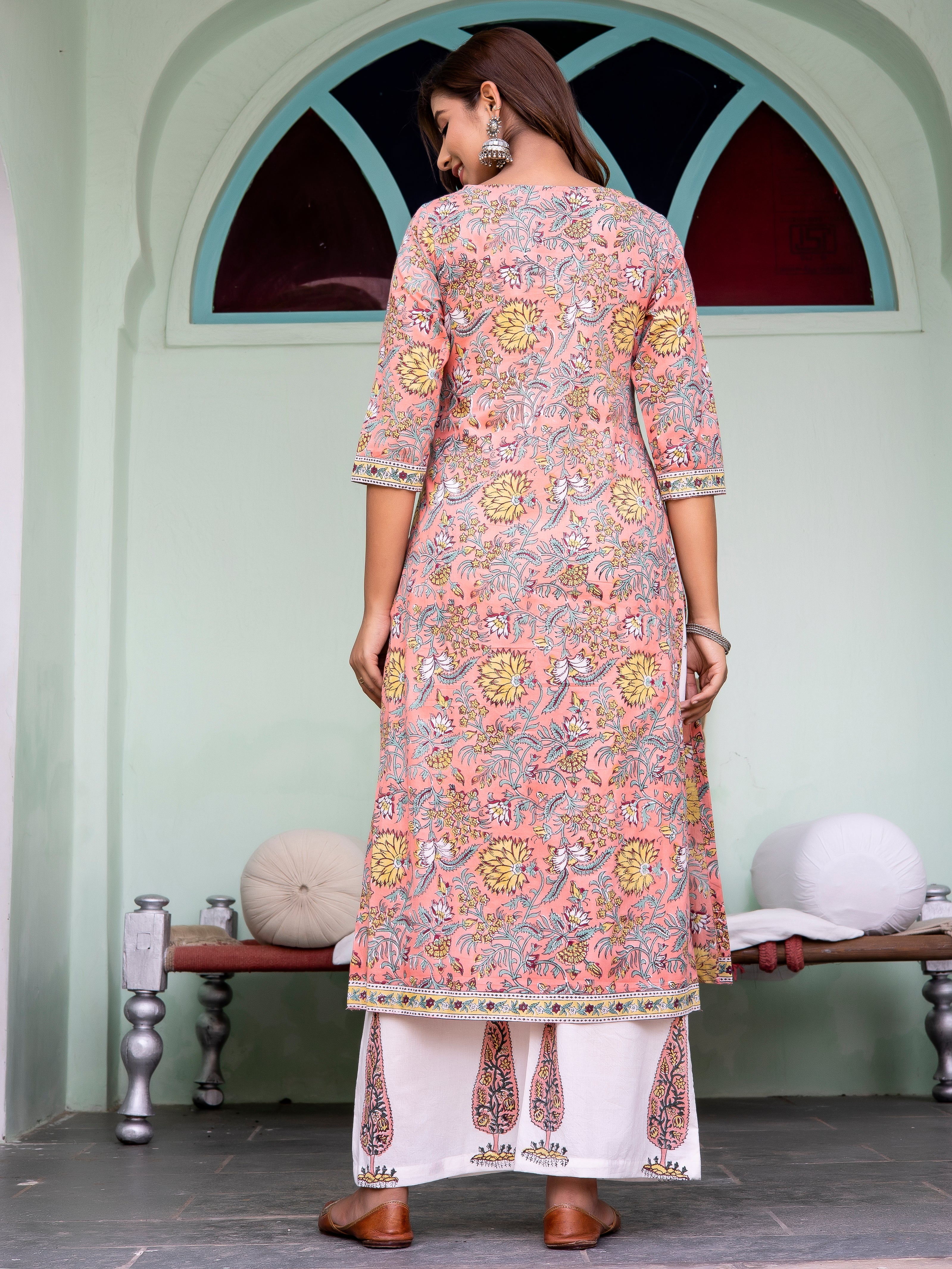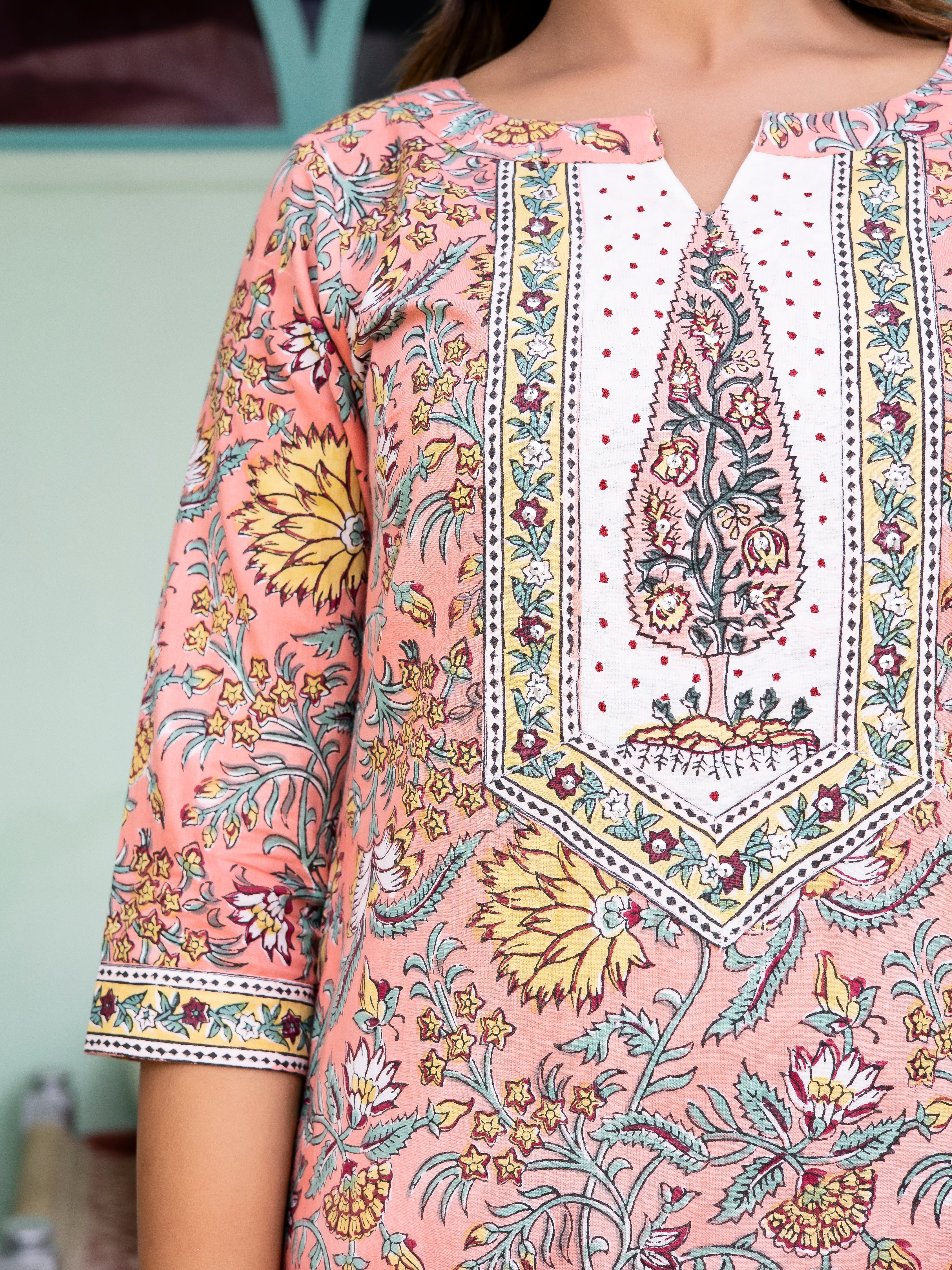 Product: Contains Hand Block Printed Cotton Kurta. Matching Pants/Bottoms and Dupatta are also available separately under BUY THE LOOK section.