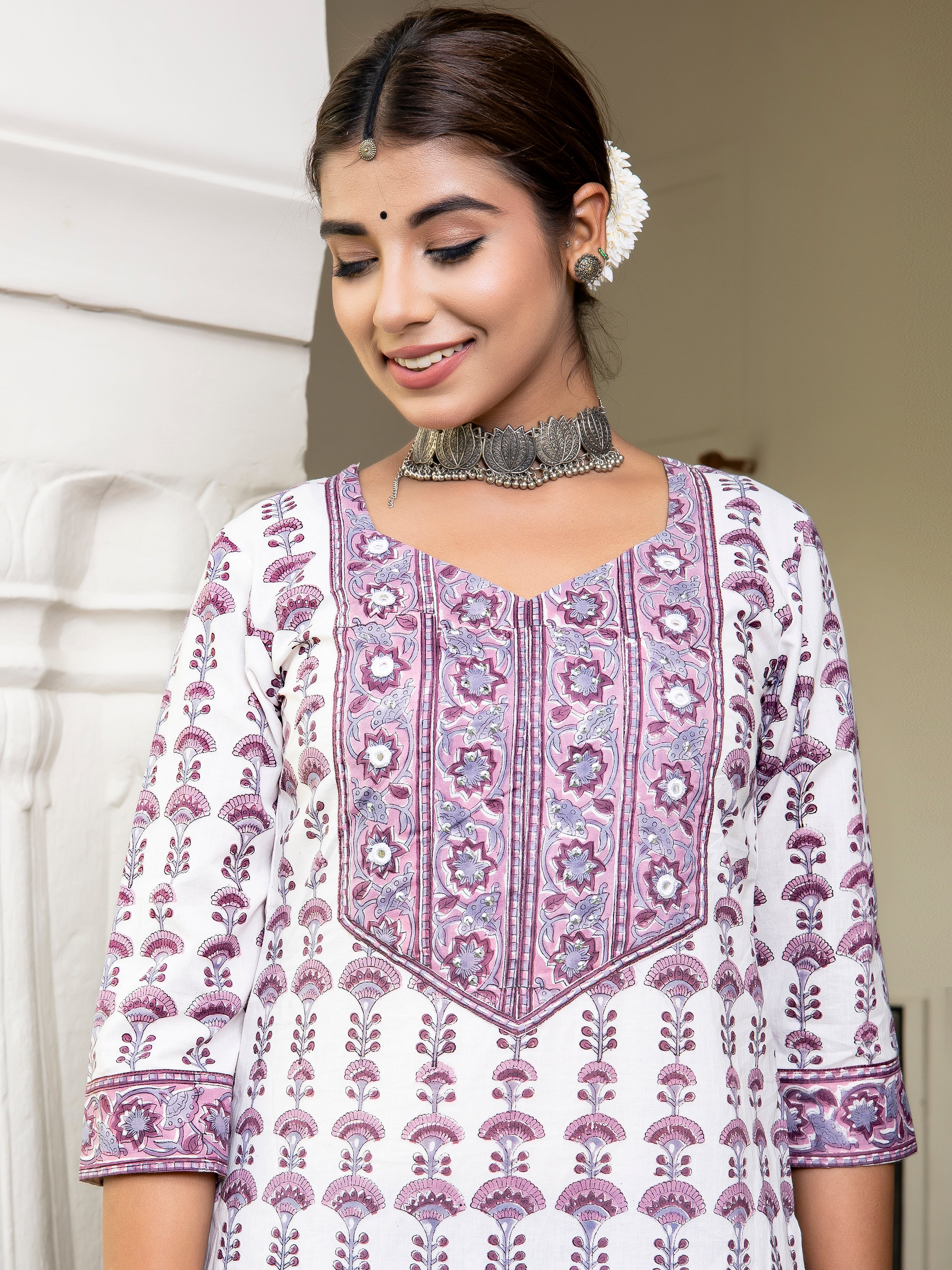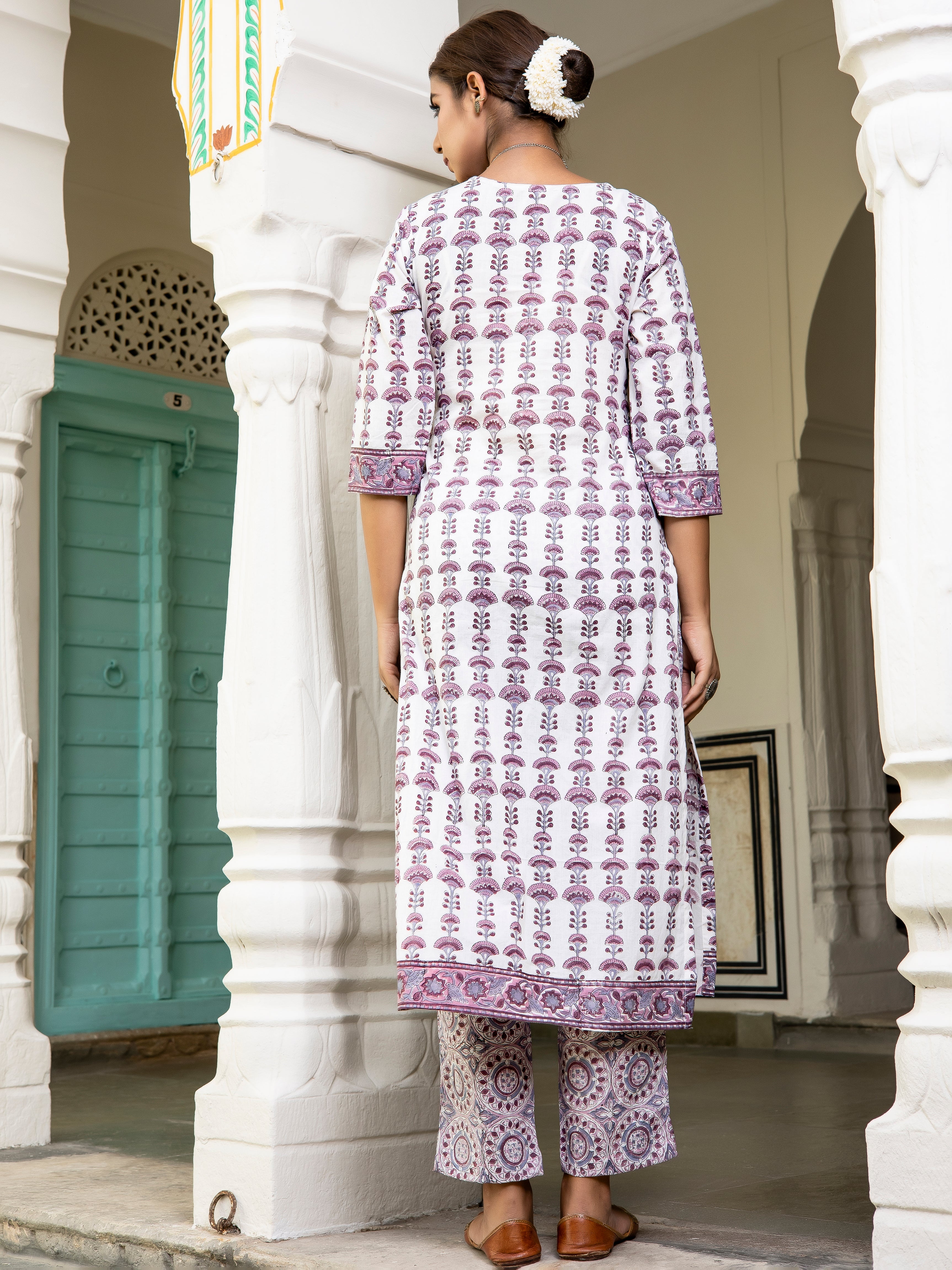 Product: Contains Hand Block Printed Cotton Kurta. Matching Pants/Bottoms and Dupatta are also available separately under BUY THE LOOK section.
