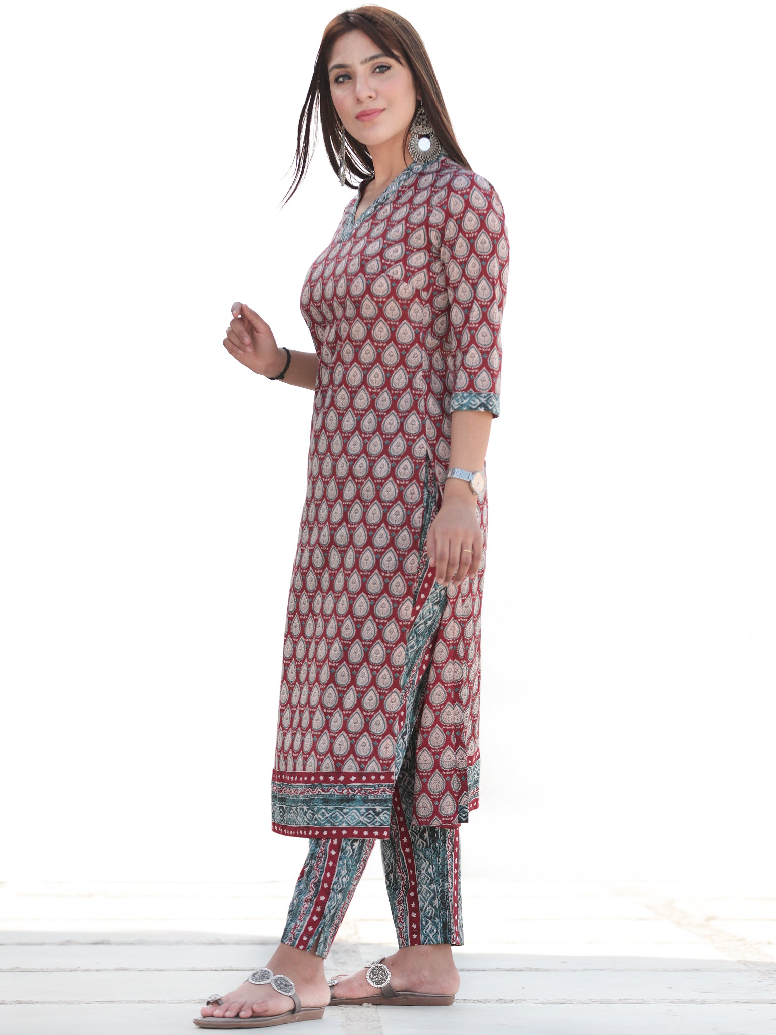 Product: Contains Hand Block Printed Cotton Kurta. Matching Pants/Bottoms and Dupatta are also available separately under BUY THE LOOK section.