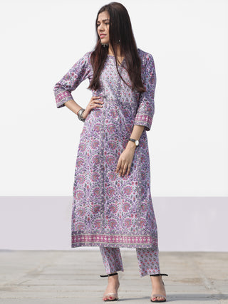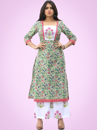 Garden Stripes - Block Printed Kurta Set With Dupatta - SS01F1938