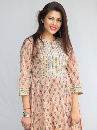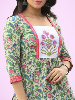 Indigo Rust Green Beige Hand Block Printed Kurta in Natural Colors With Pintuck - K79F1341