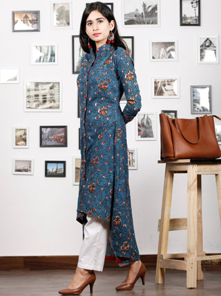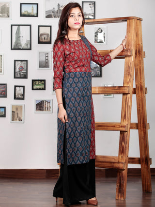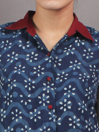 Indigo Ivory Maroon Hand Block Printed Kurti With Open Front With Buttons - K02A17001