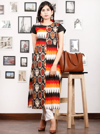 Black Orange Ivory Red Hand Block Printed & Ikat Kurta With Natural Colors - K76F1491