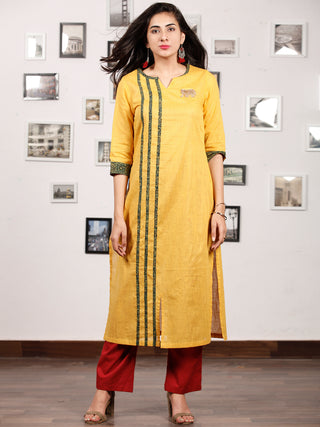 Yellow Green South Handloom Cotton Kurta With Ajrakh High Lighting - K145FXXX