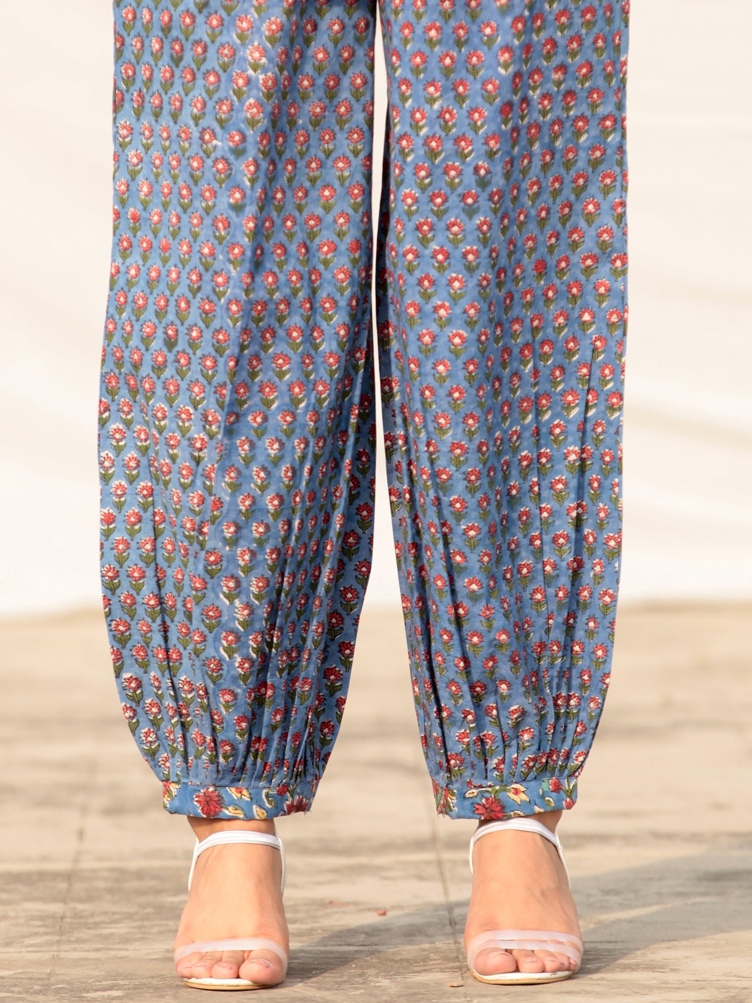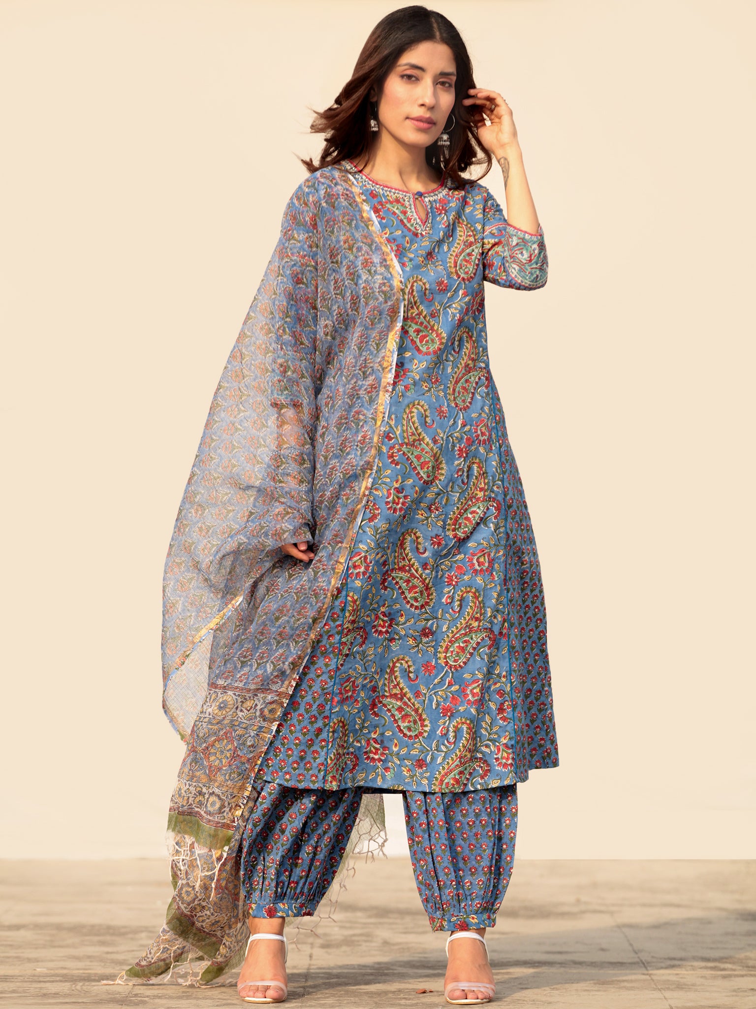 Product: This set contains Handcrafted Sanganeri Premium Cotton Kurta, 100% Cotton Salwar Pants Pants and Kota Doria Dupatta.