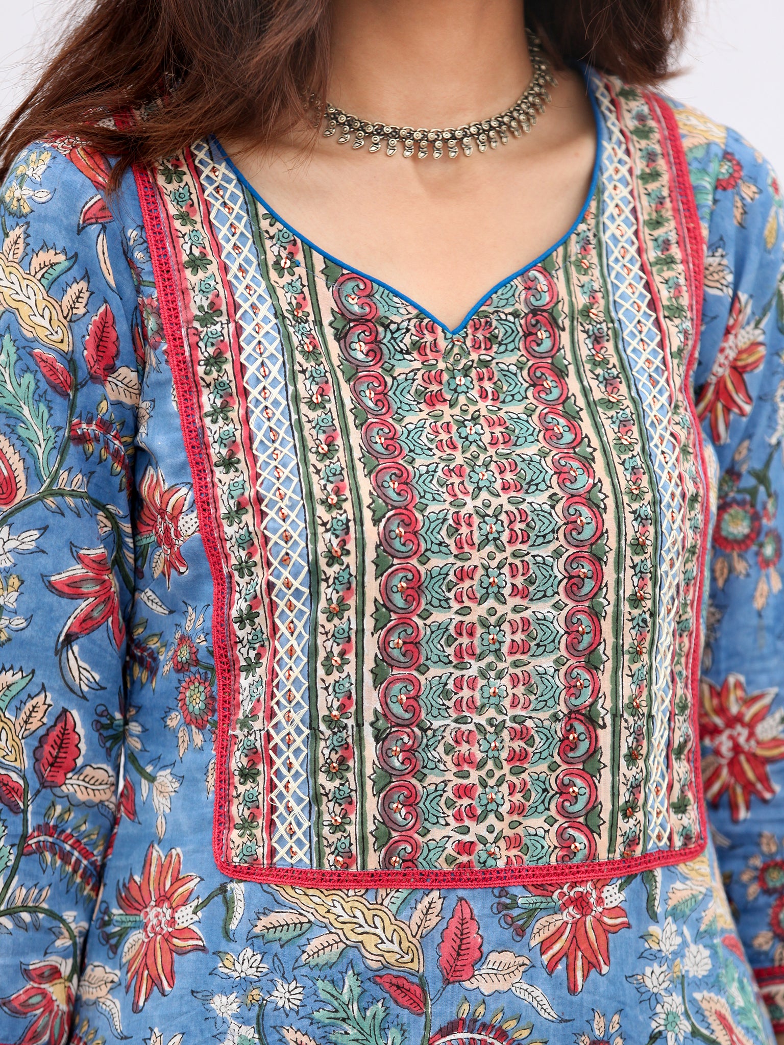 Product: Contains Hand Block Printed Cotton Kurta. Matching Pants/Bottoms and Dupatta are also available separately under BUY THE LOOK section.