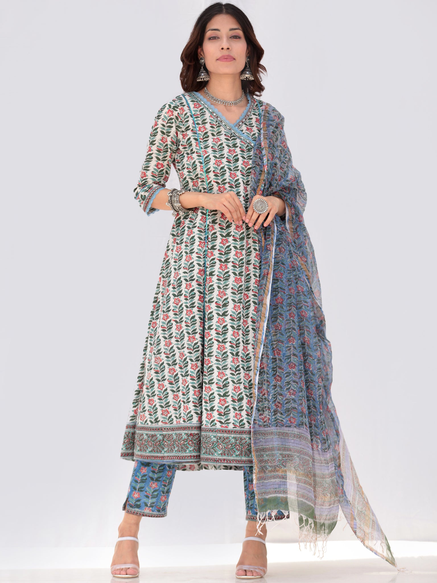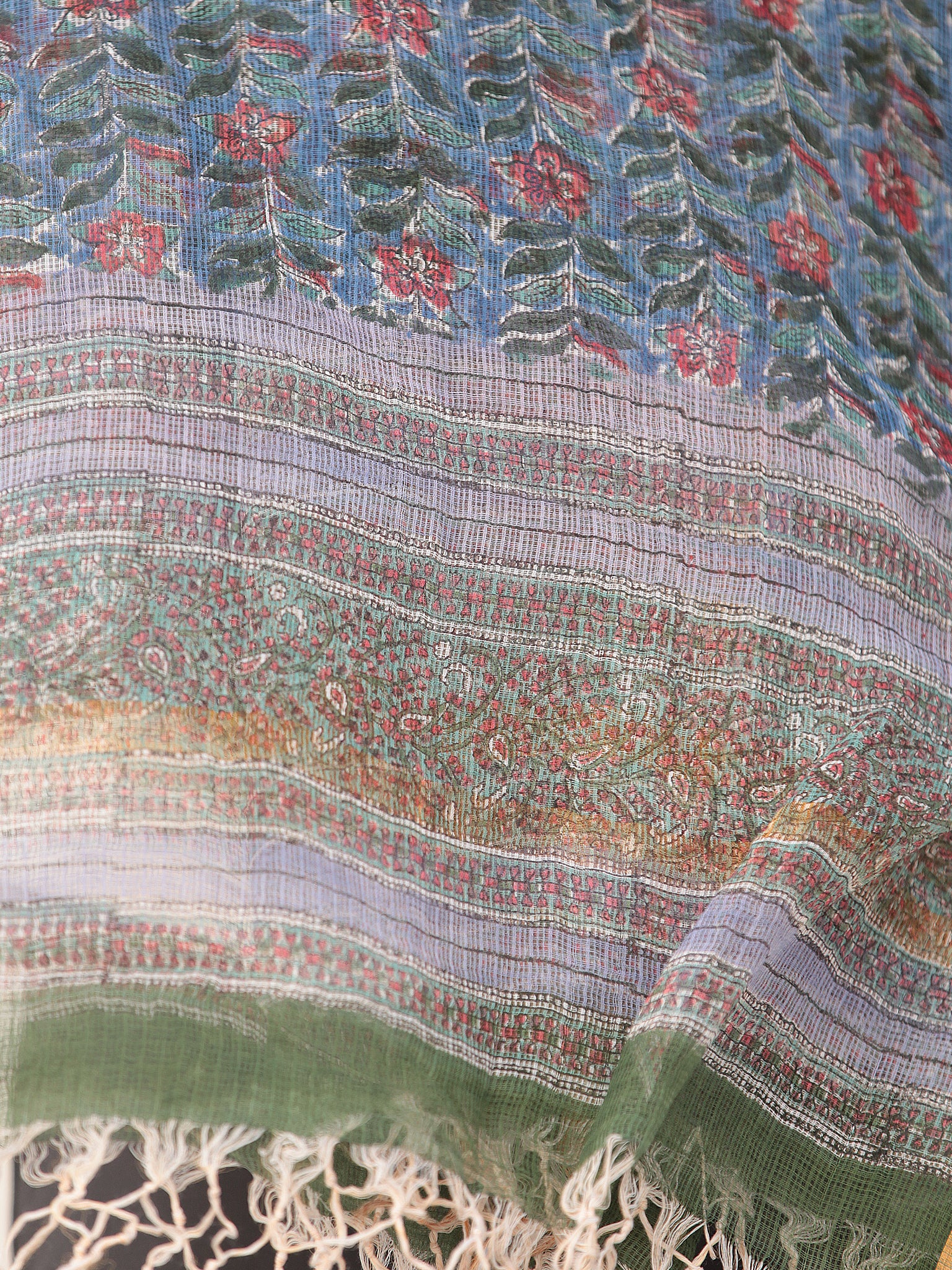 Product : Contains Sanganeri Hand Block Printed Kota Doria Dupatta. Matching Kurta and Pants are also available separately under BUY THE LOOK section.