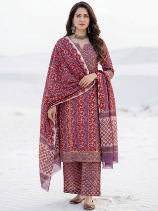 Ajrakh Shifat - Set of Straight Kurta Pants & Dupatta - KS47N2513D