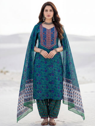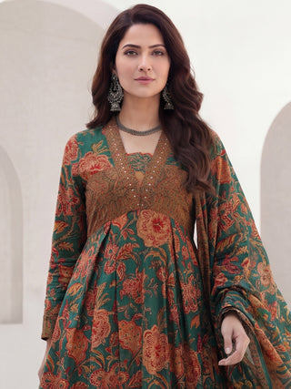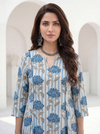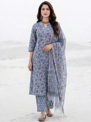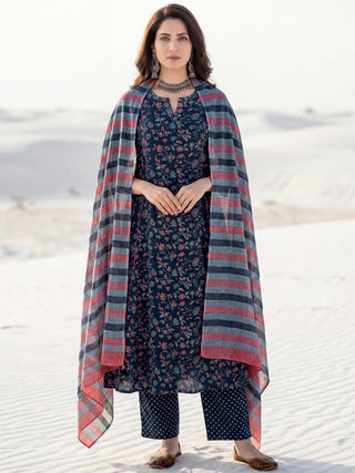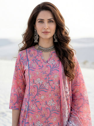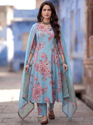 Aina Arisha Set Of Floral A-line Kurta Tulip Pants & Dupatta