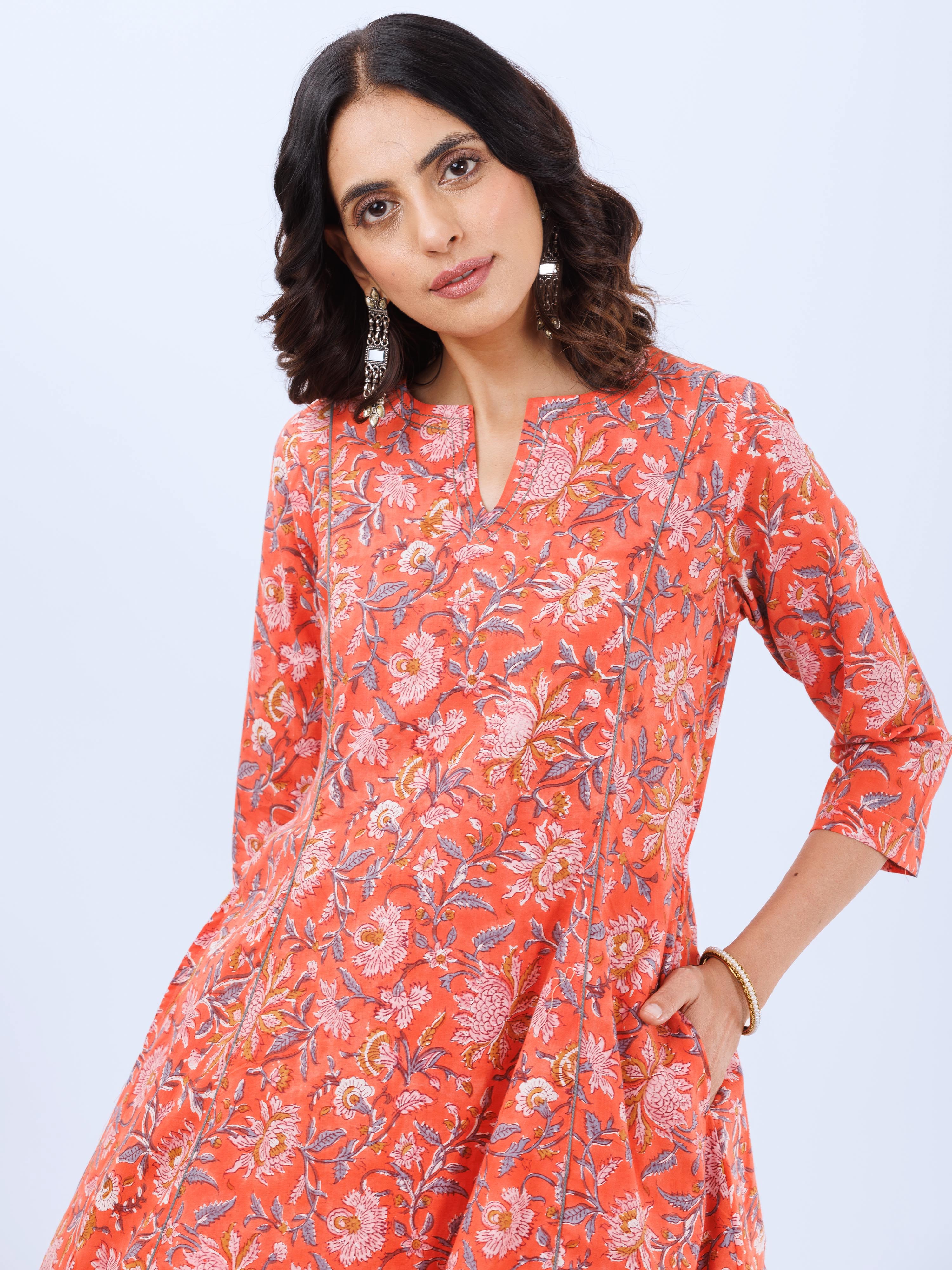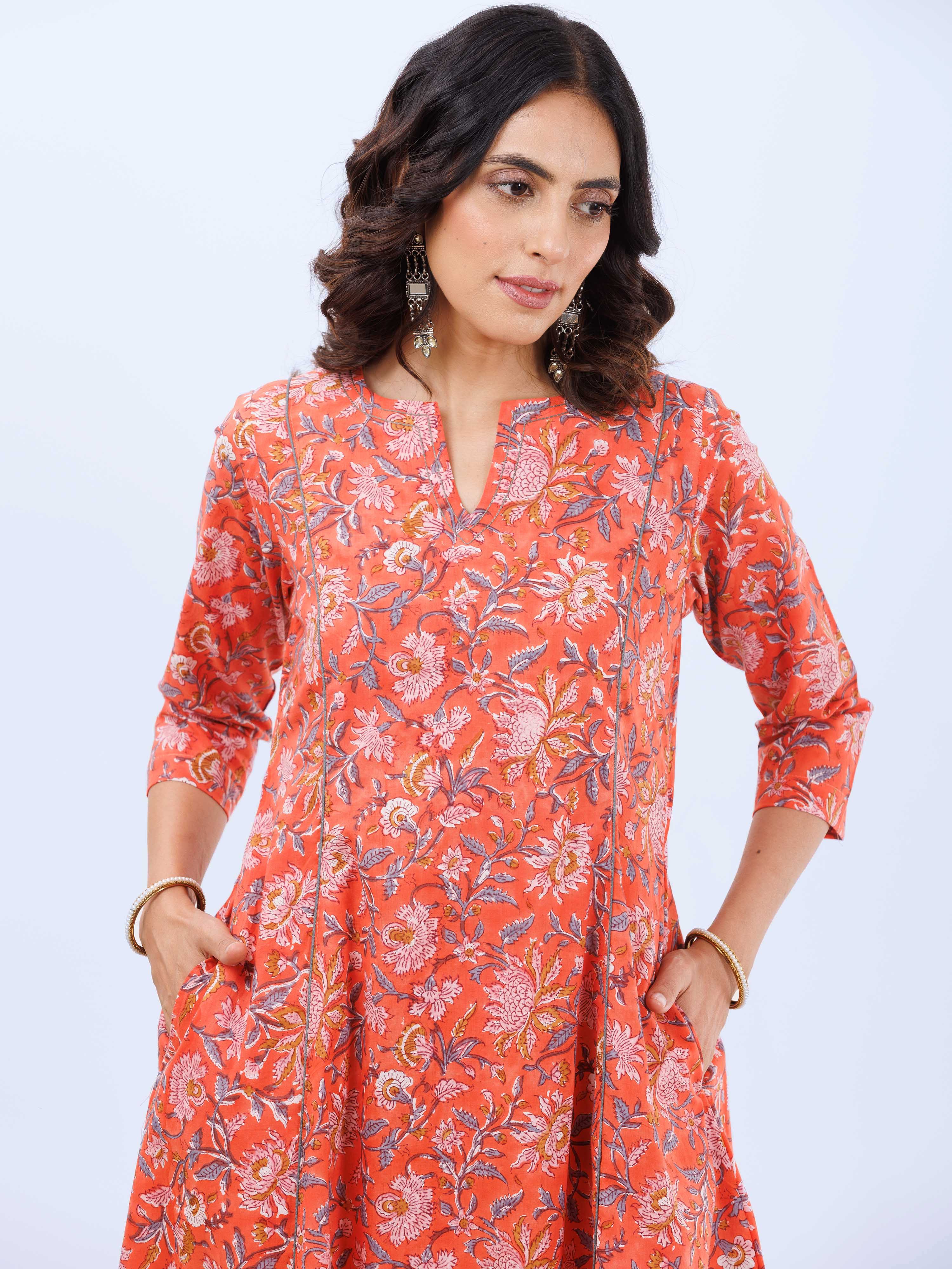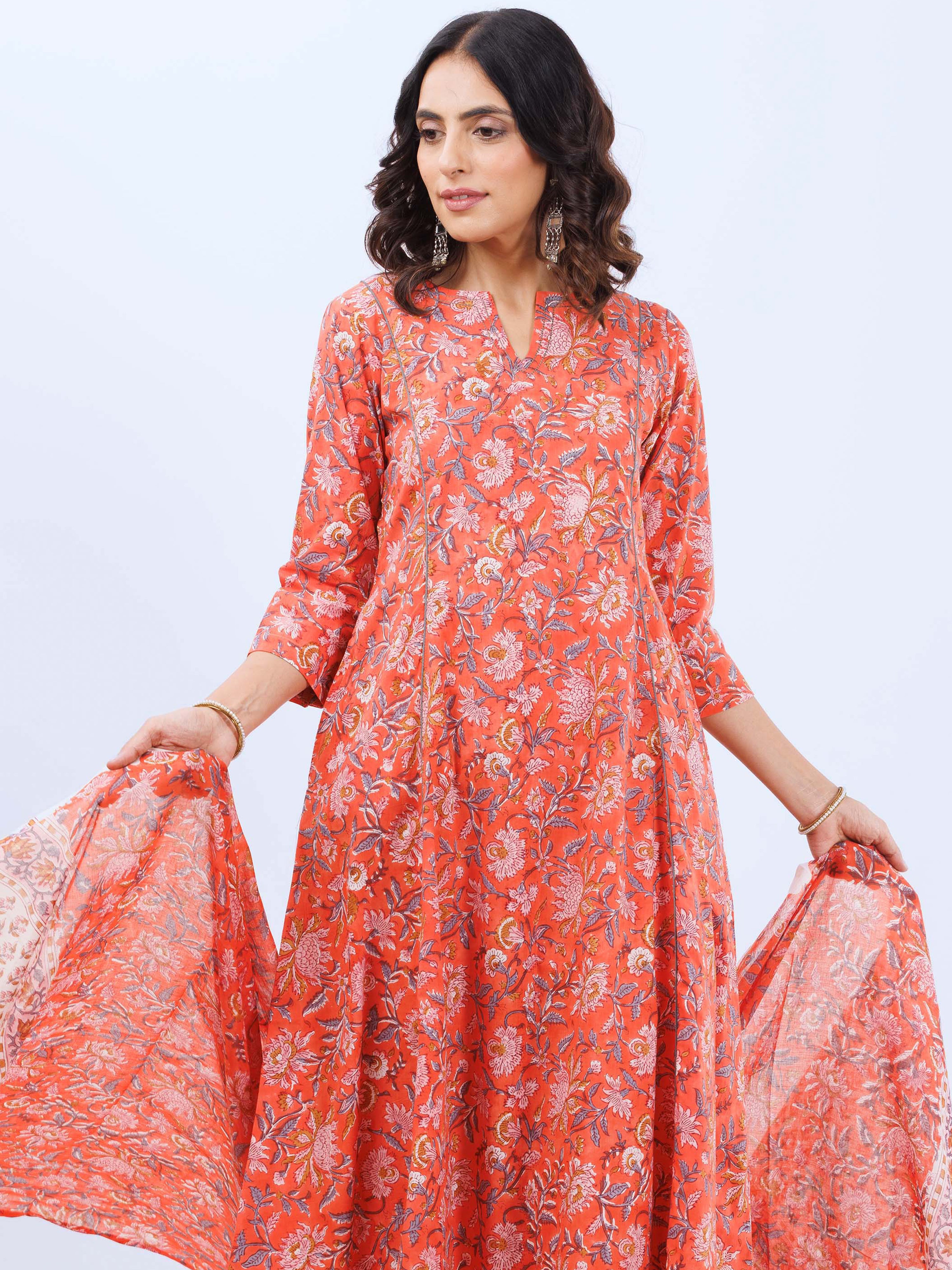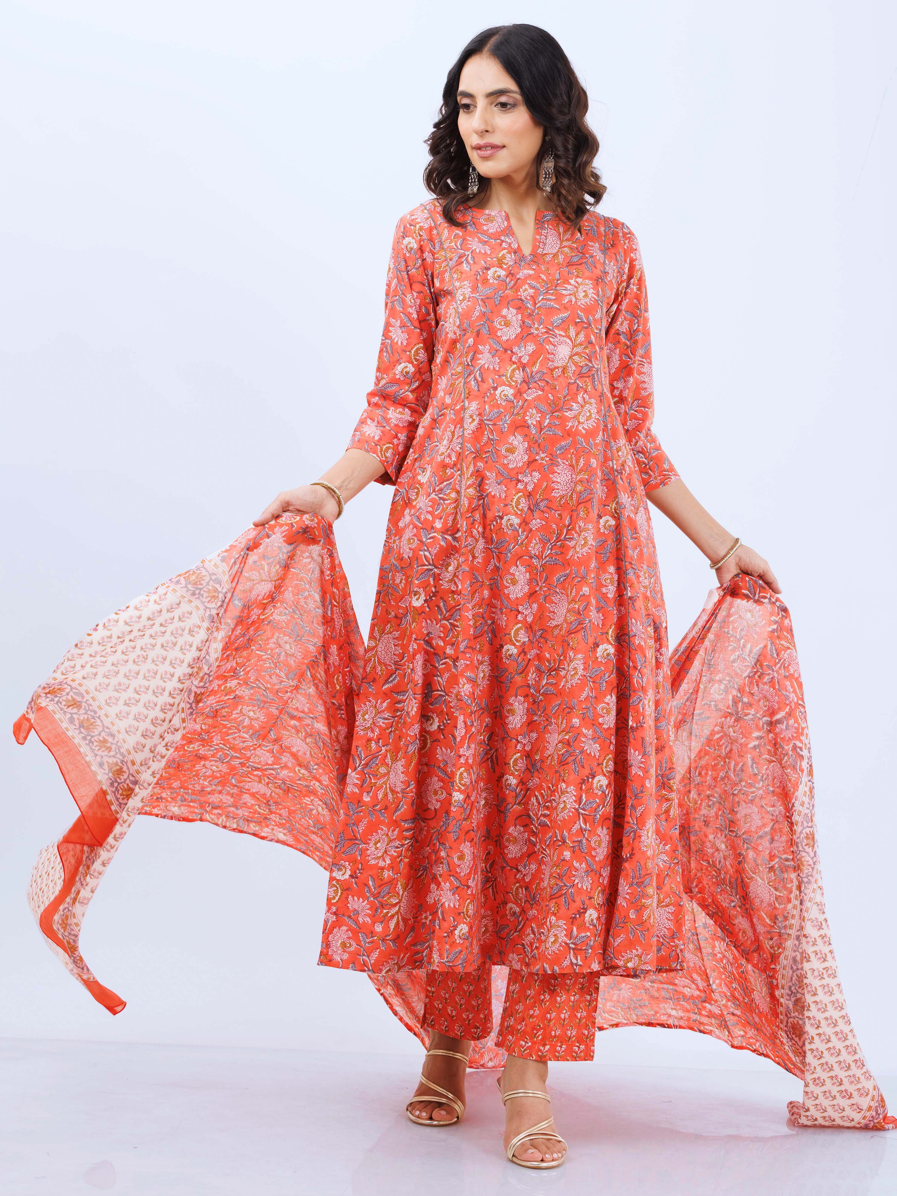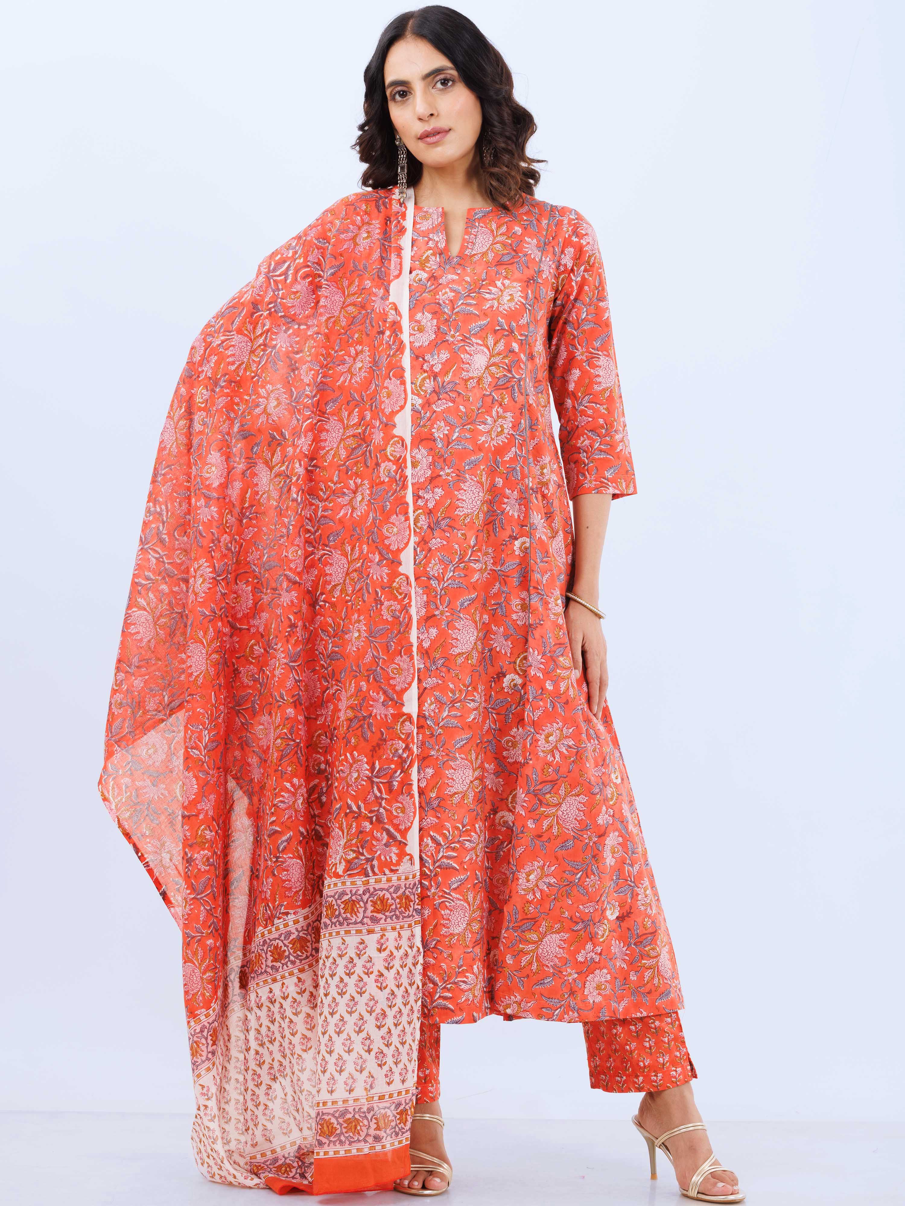 Product: This set contains Hand Block Printed Premium Cotton Kurta, 100% Cotton Pants and Cotton Dupatta.