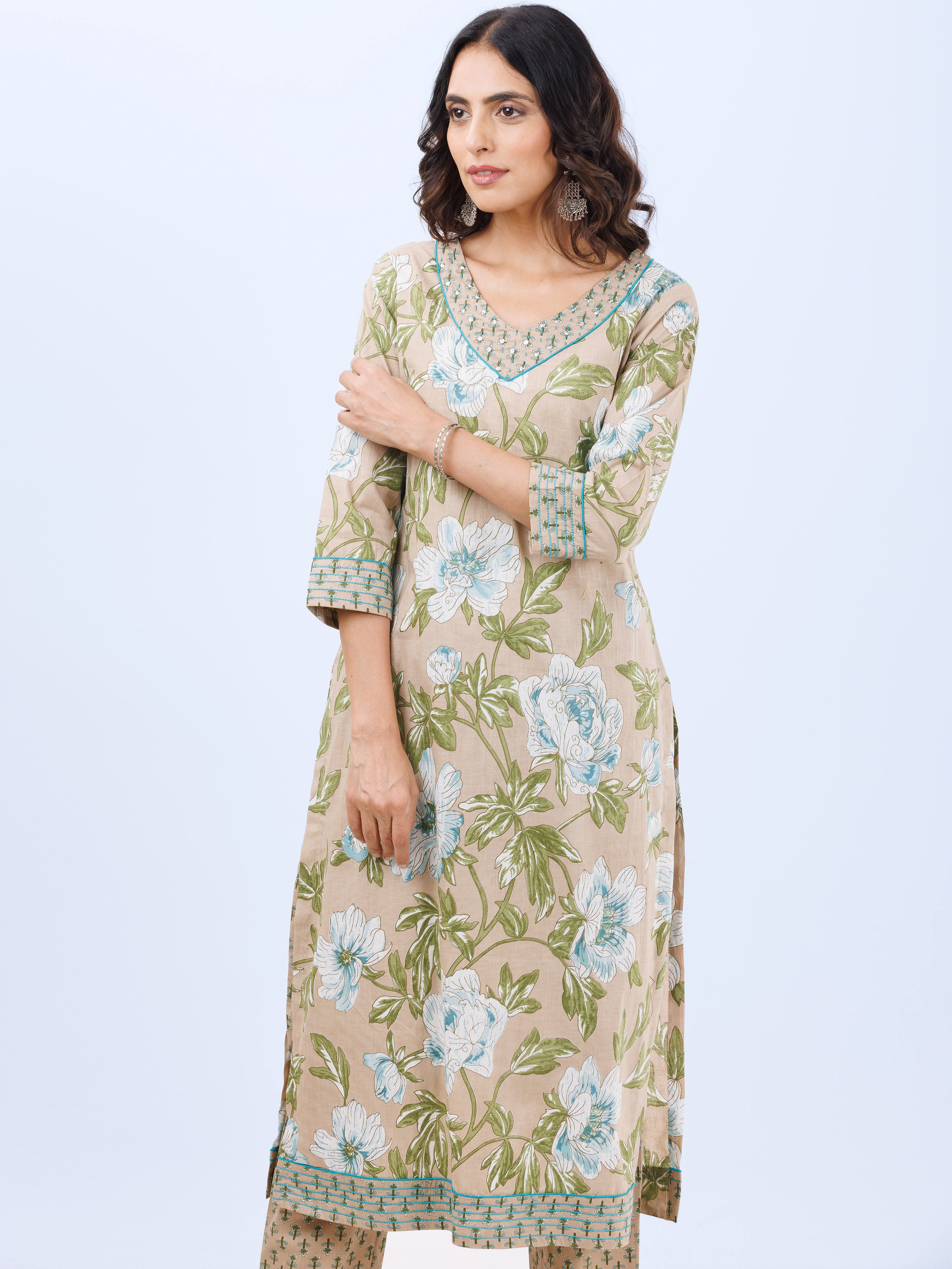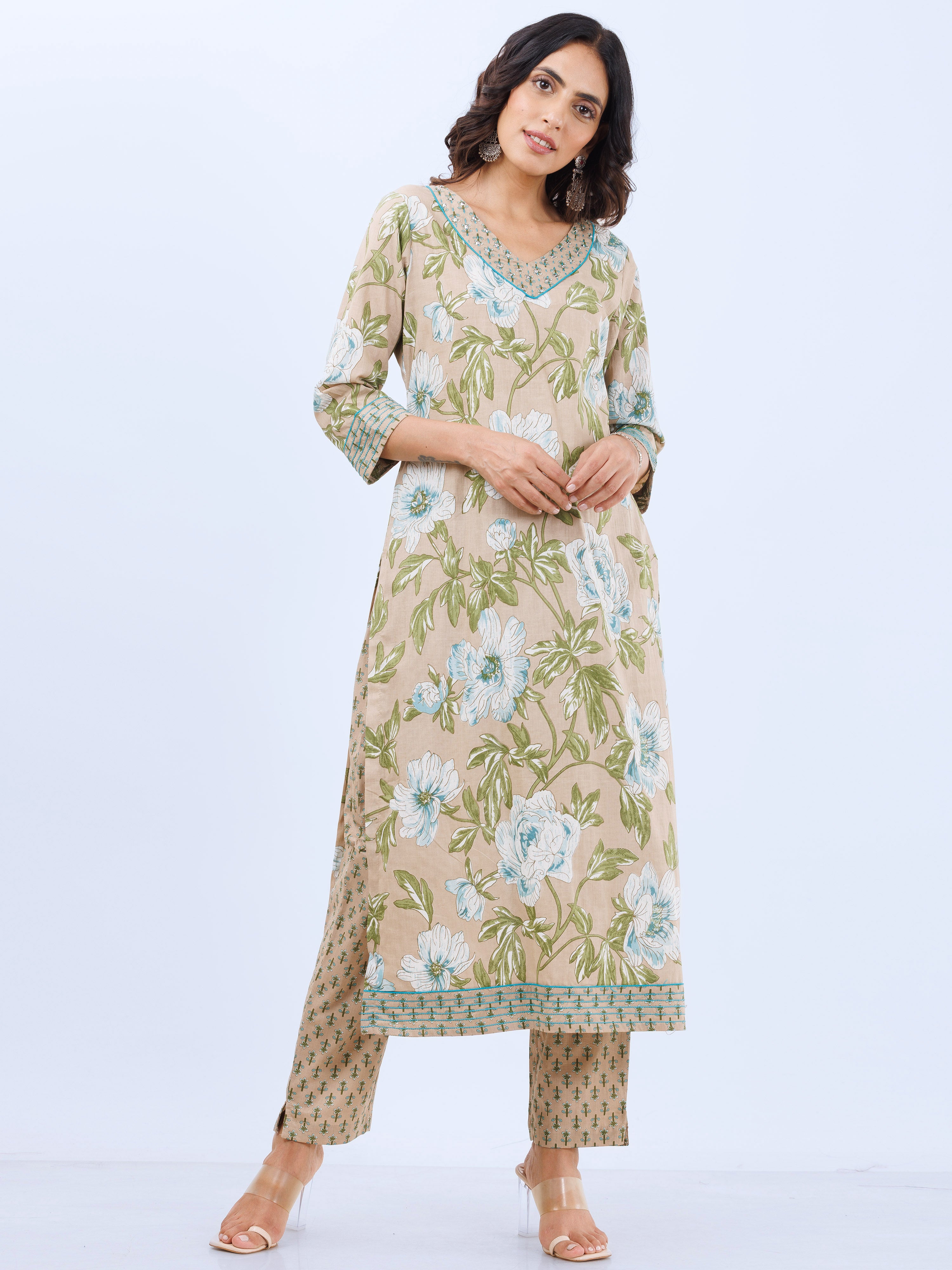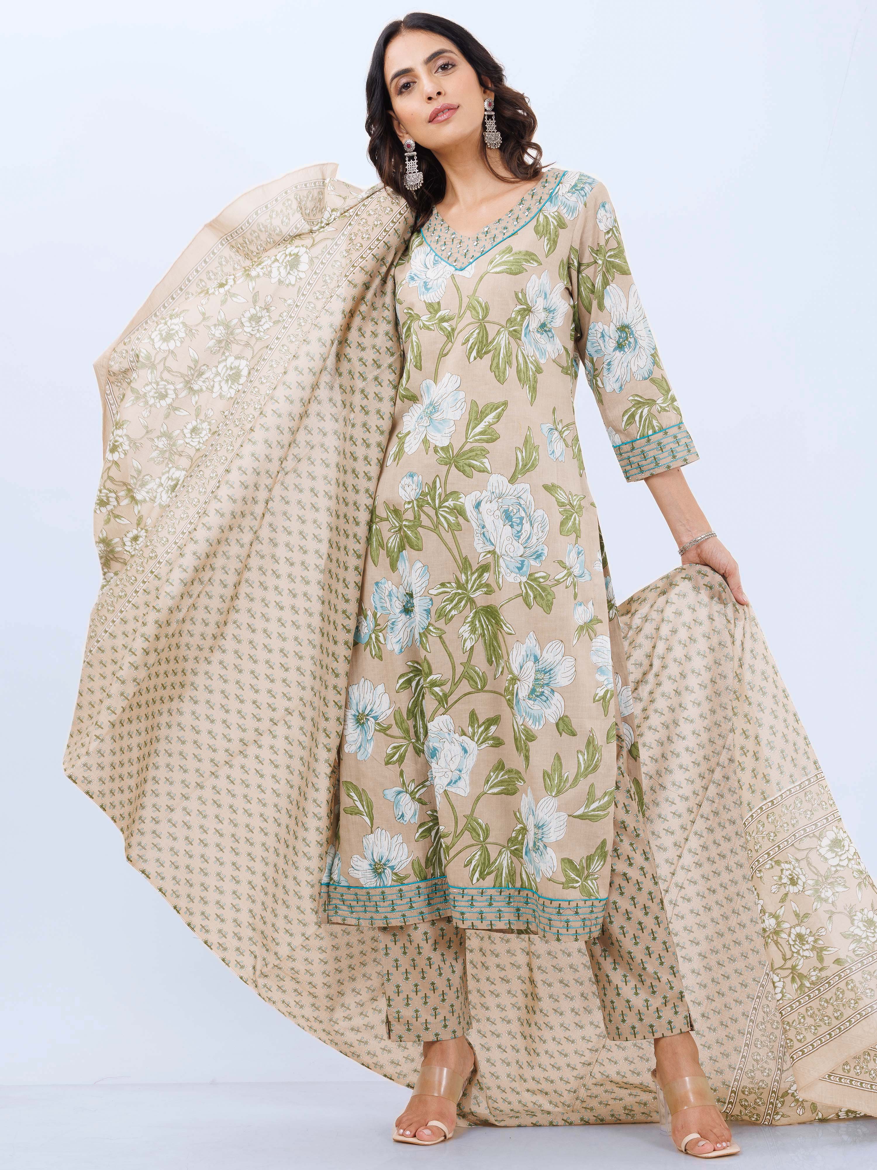 Product: This set contains Hand Block Printed Premium Cotton Kurta, 100% Cotton Pants and Cotton Dupatta.