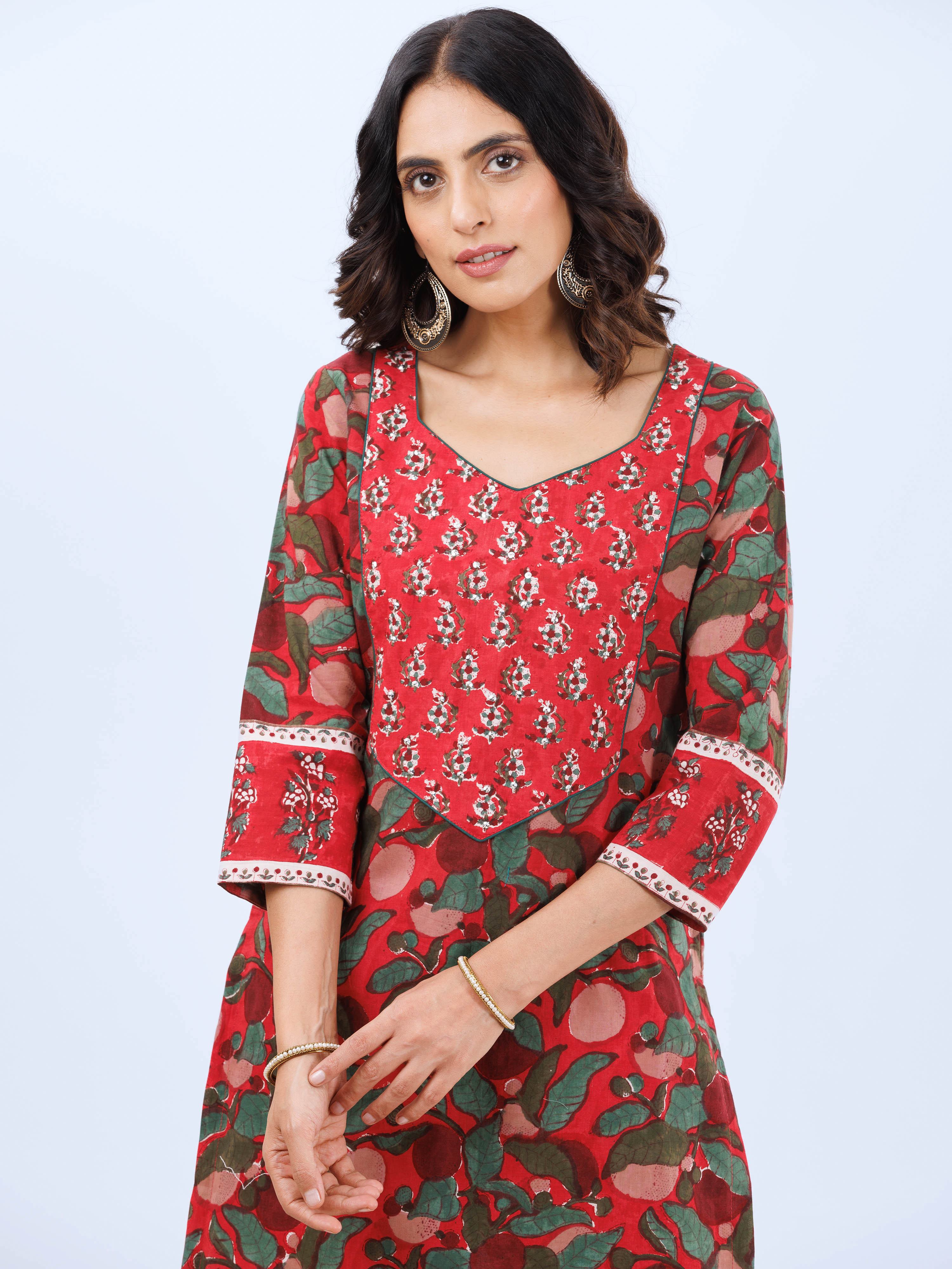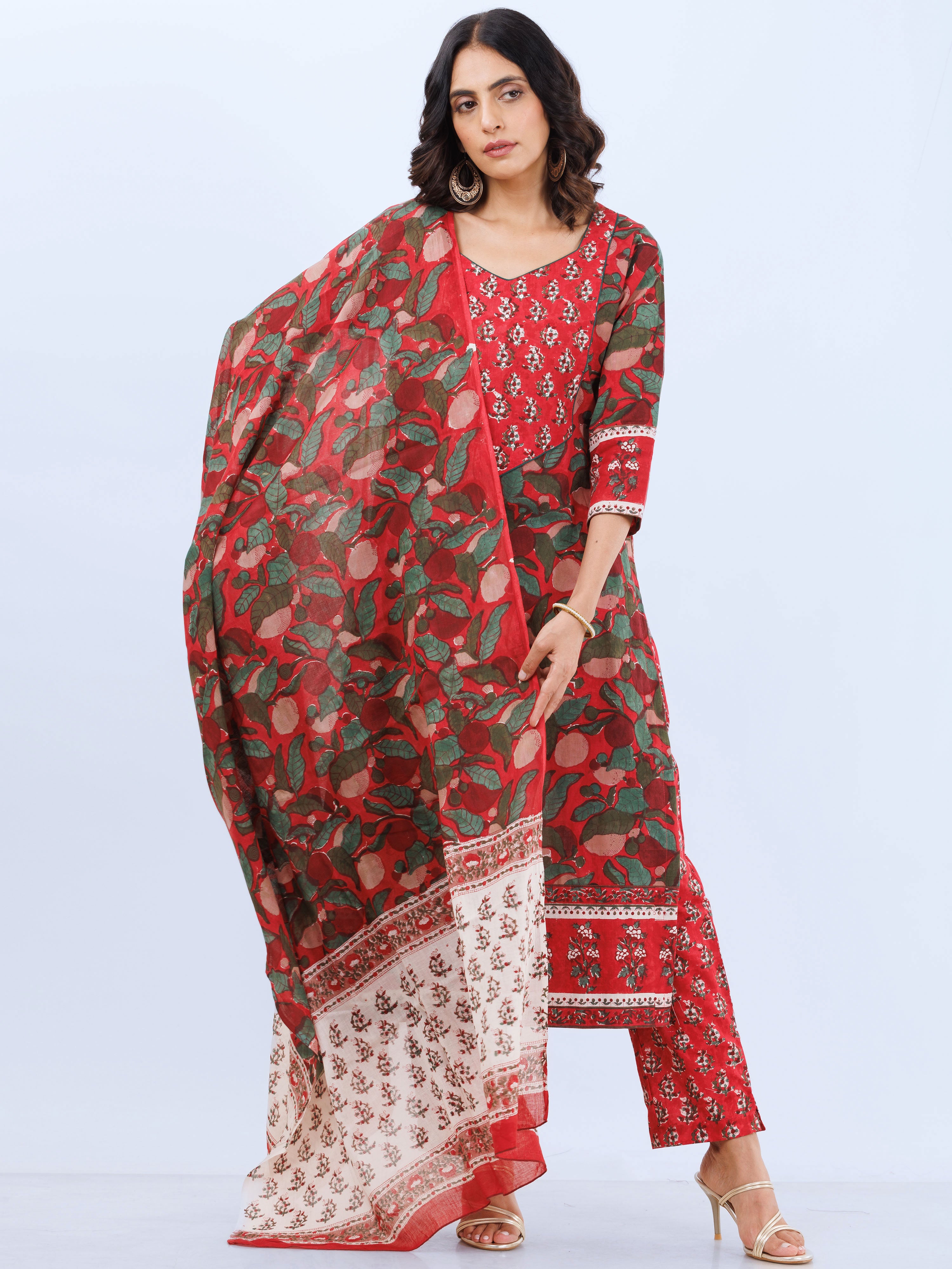 Product: This set contains Hand Block Printed Premium Cotton Kurta, 100% Cotton Pants and Cotton Dupatta.