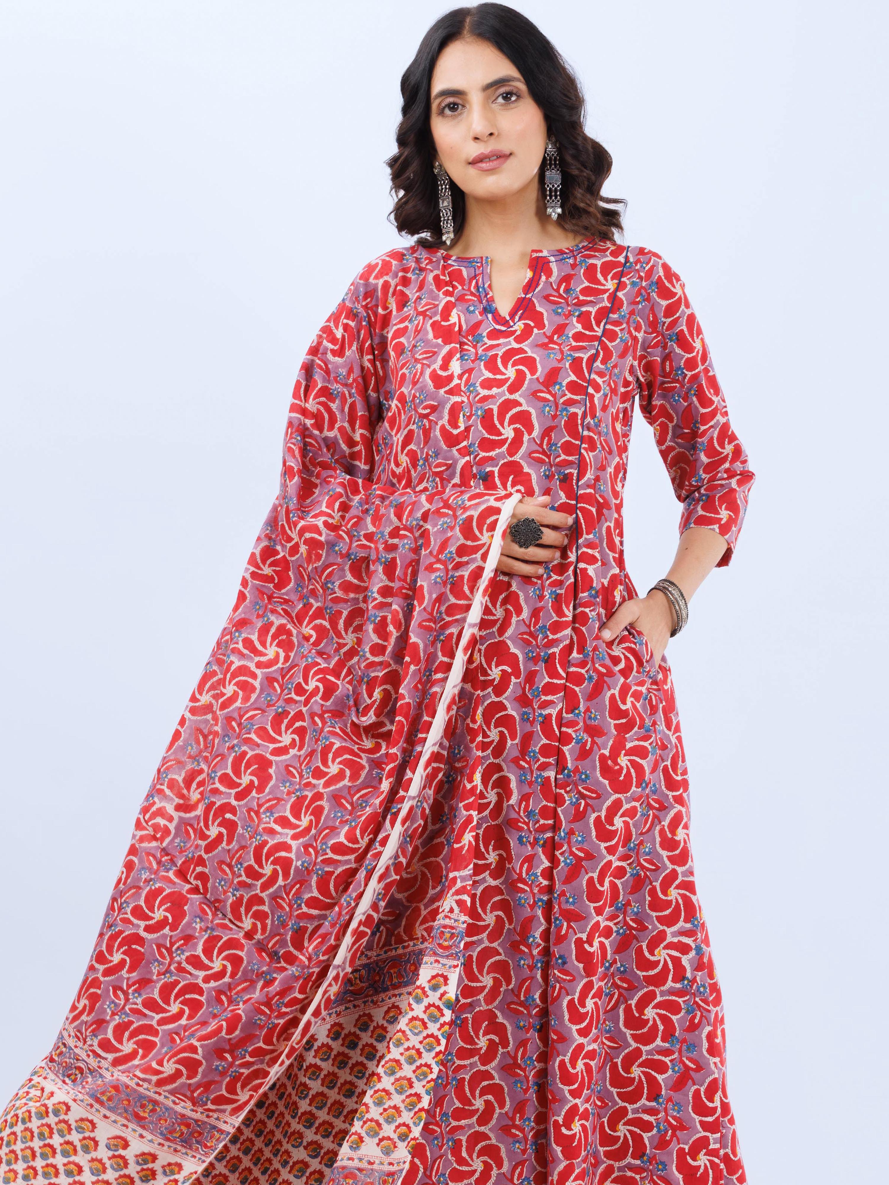 Aina Mahi Set Of Kali Kurta Pants Dupatta