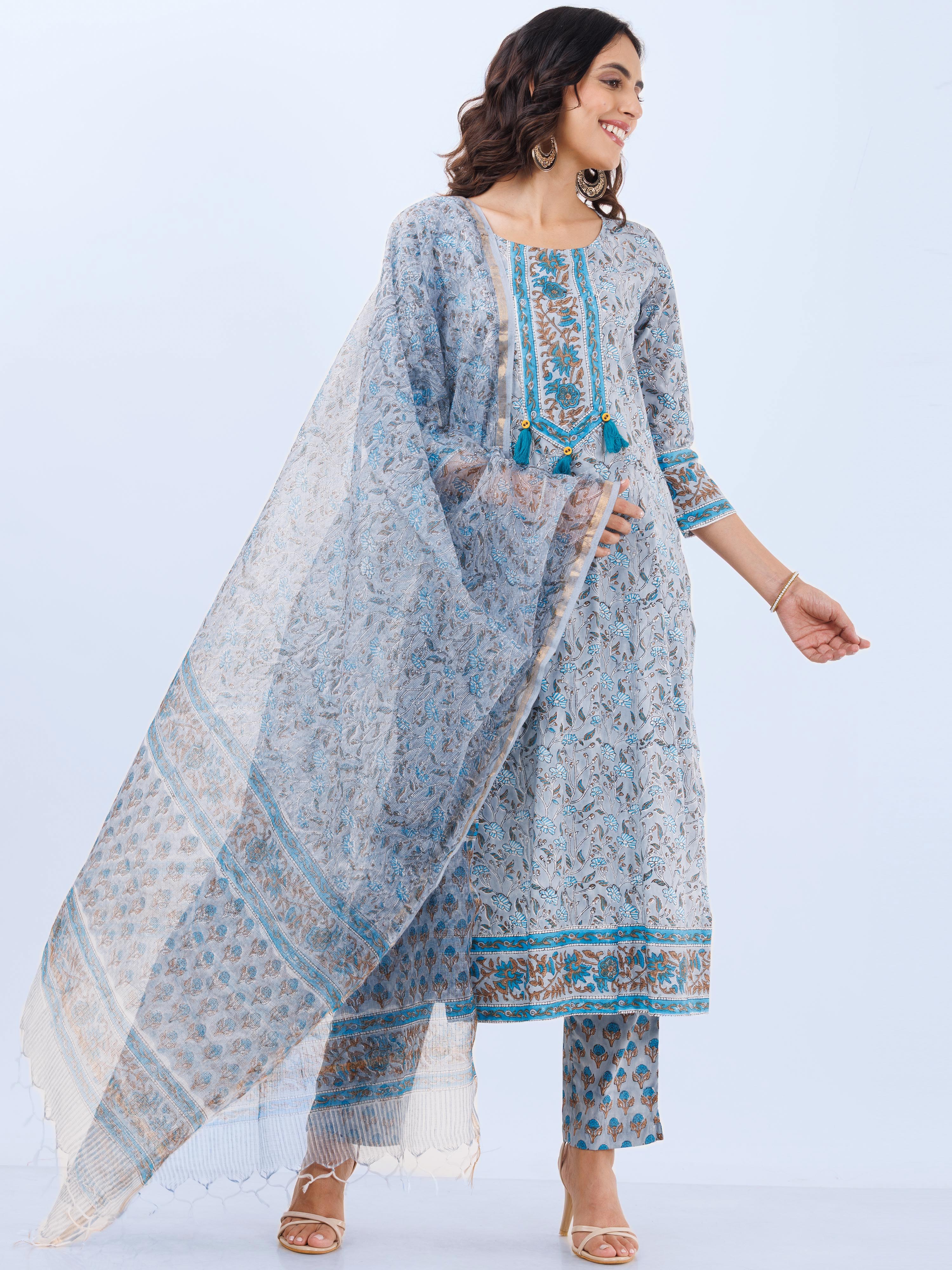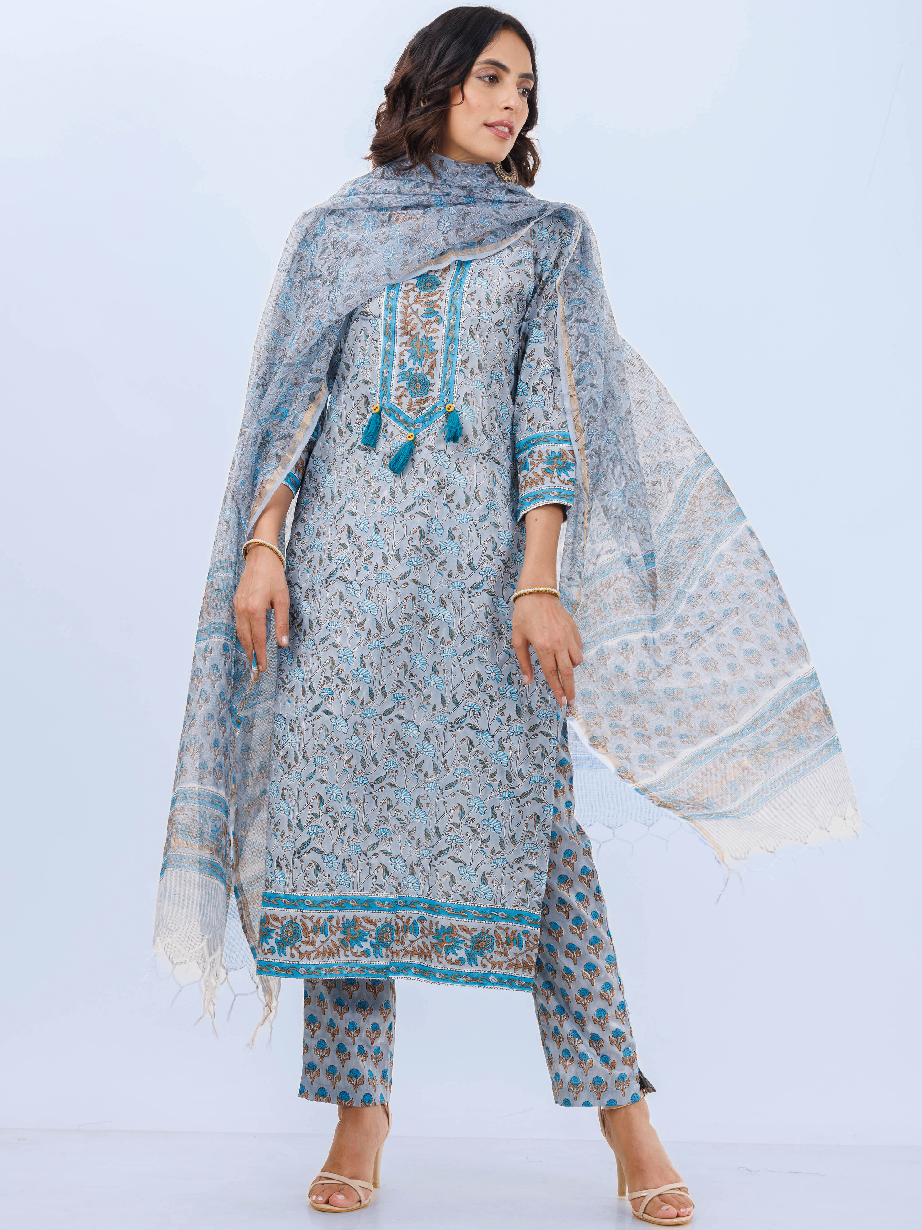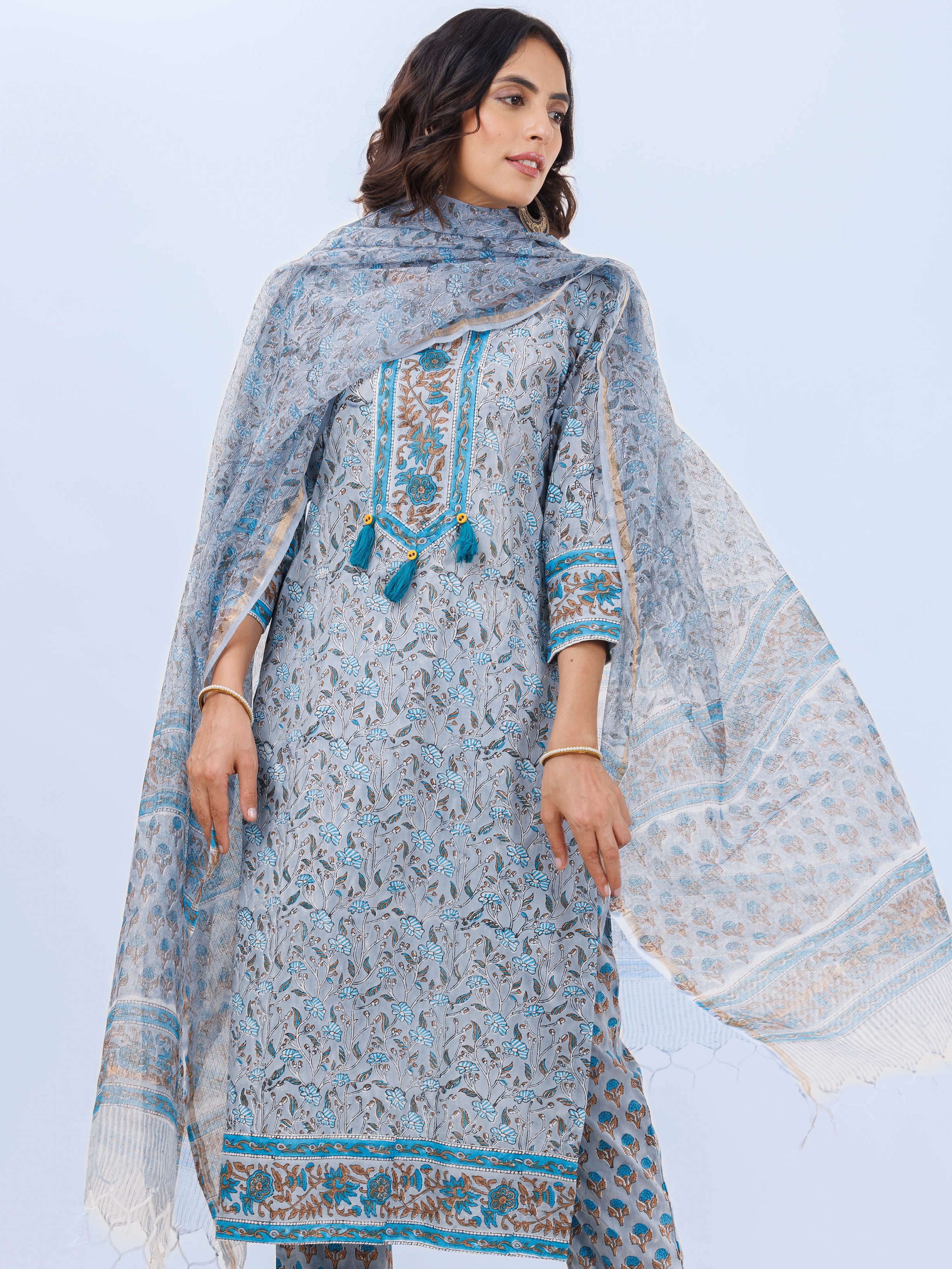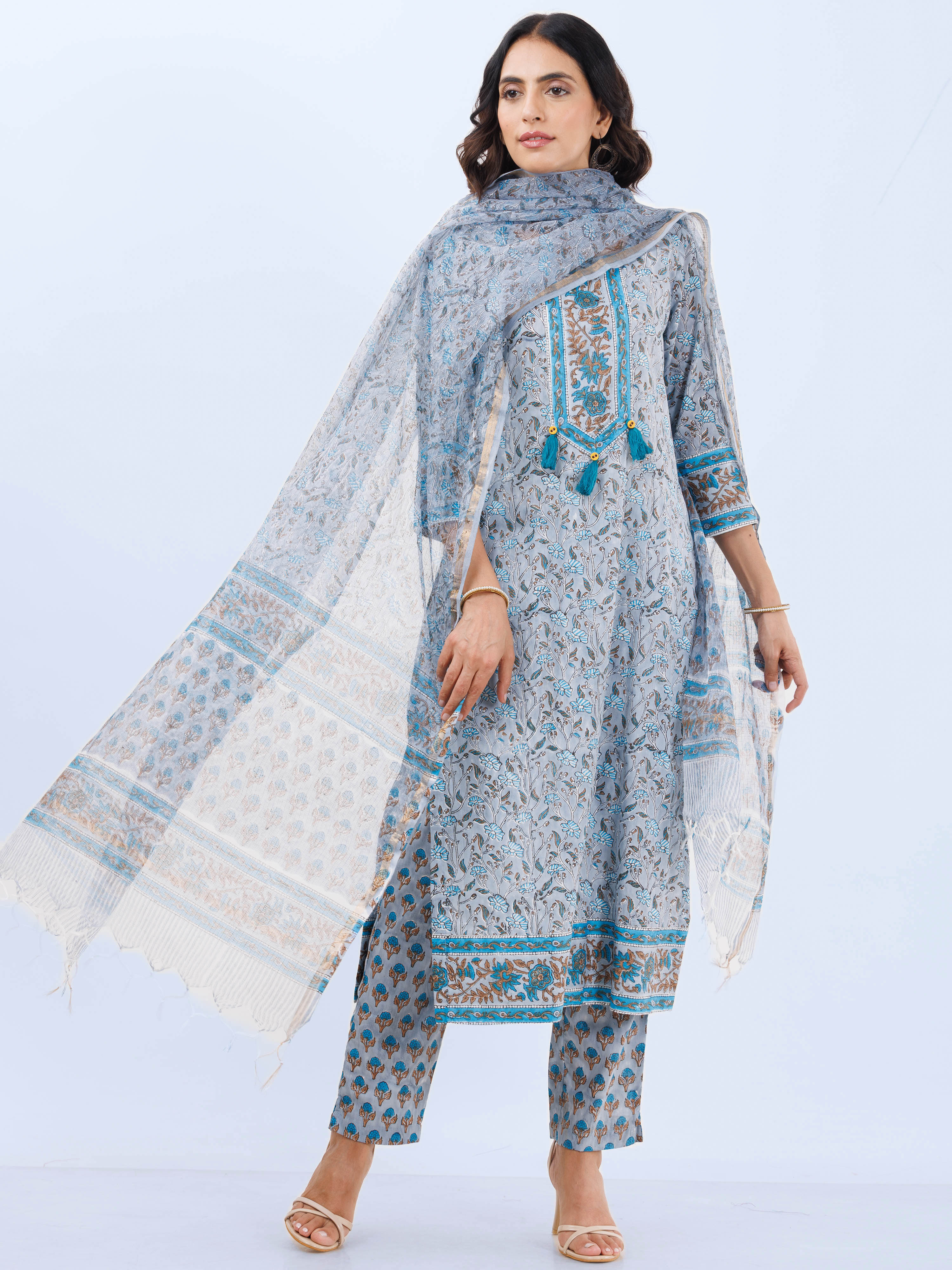Aina Mohak Set Of Kurta Pants Kota Dupatta