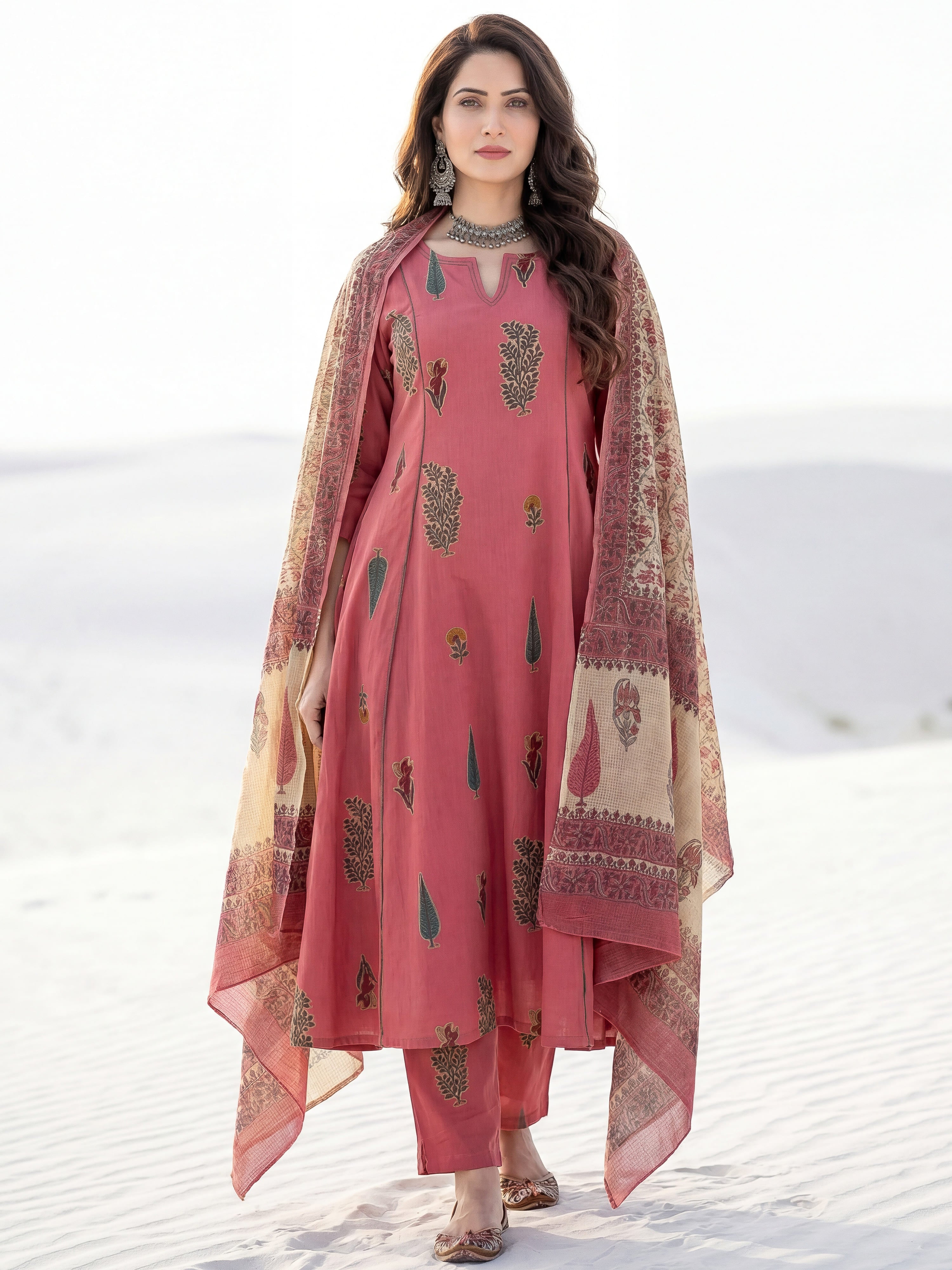 Product: This set contains Hand Block Printed Premium Cotton Kurta, 100% Cotton Pants and Cotton Dupatta.