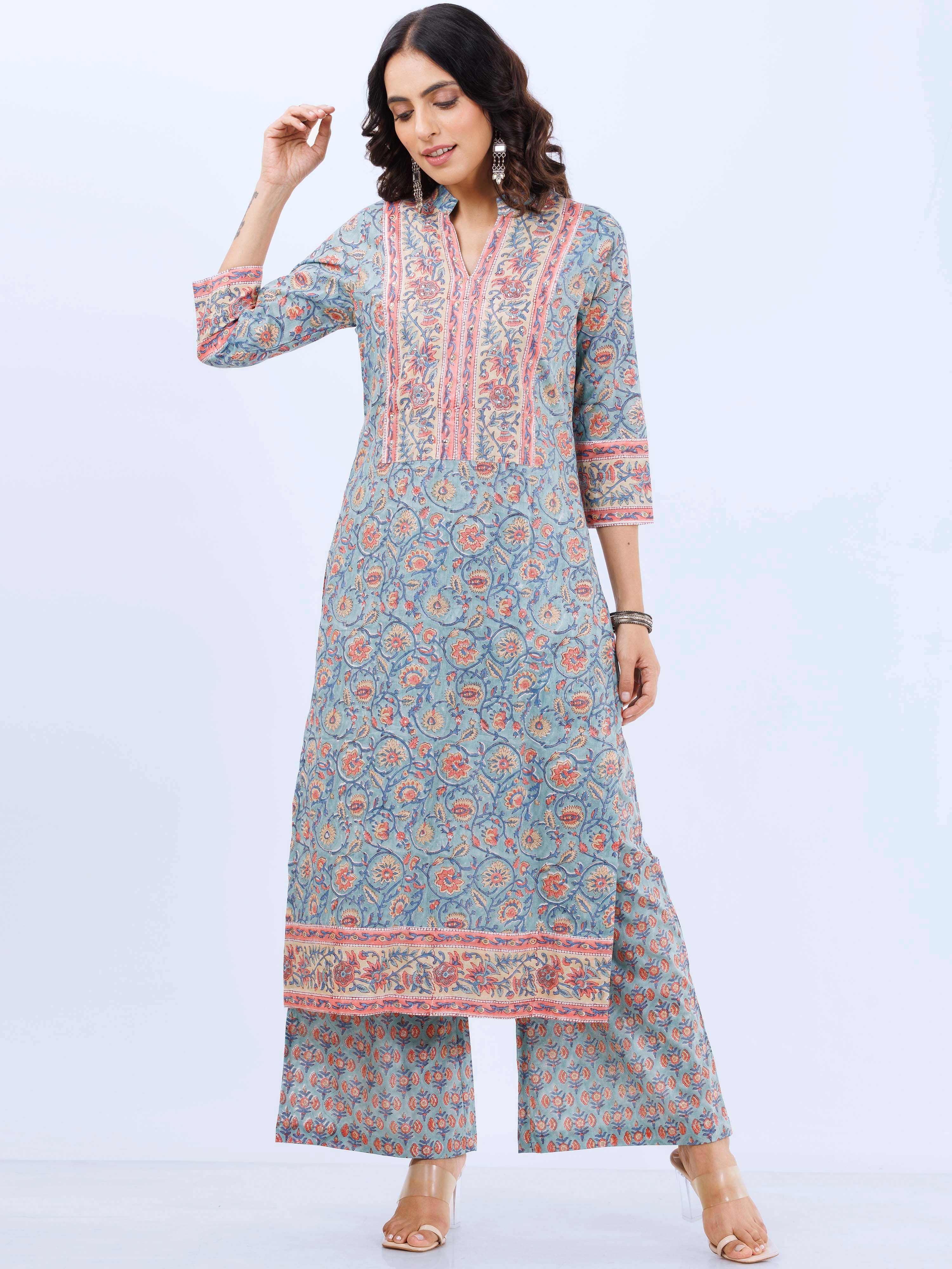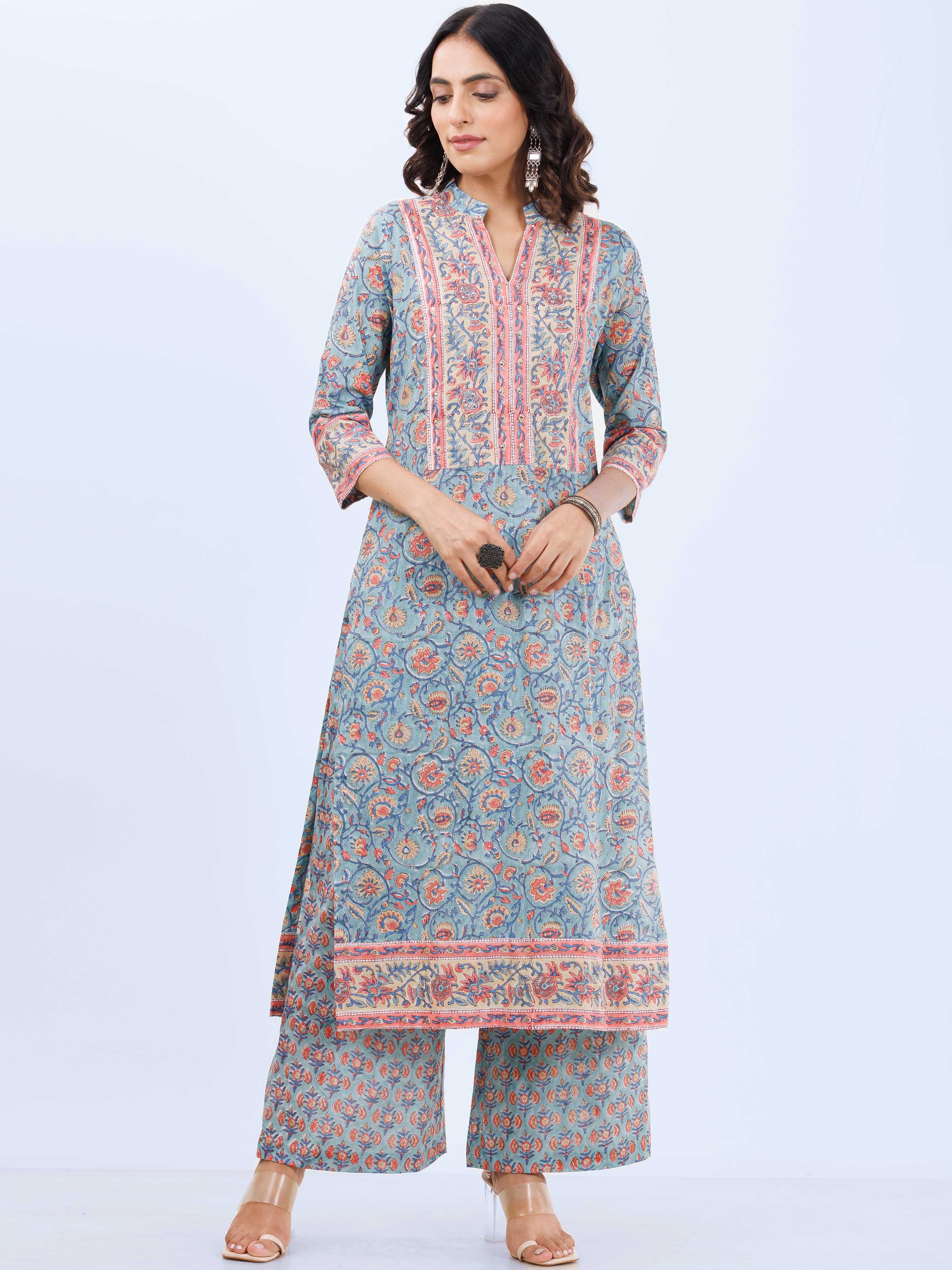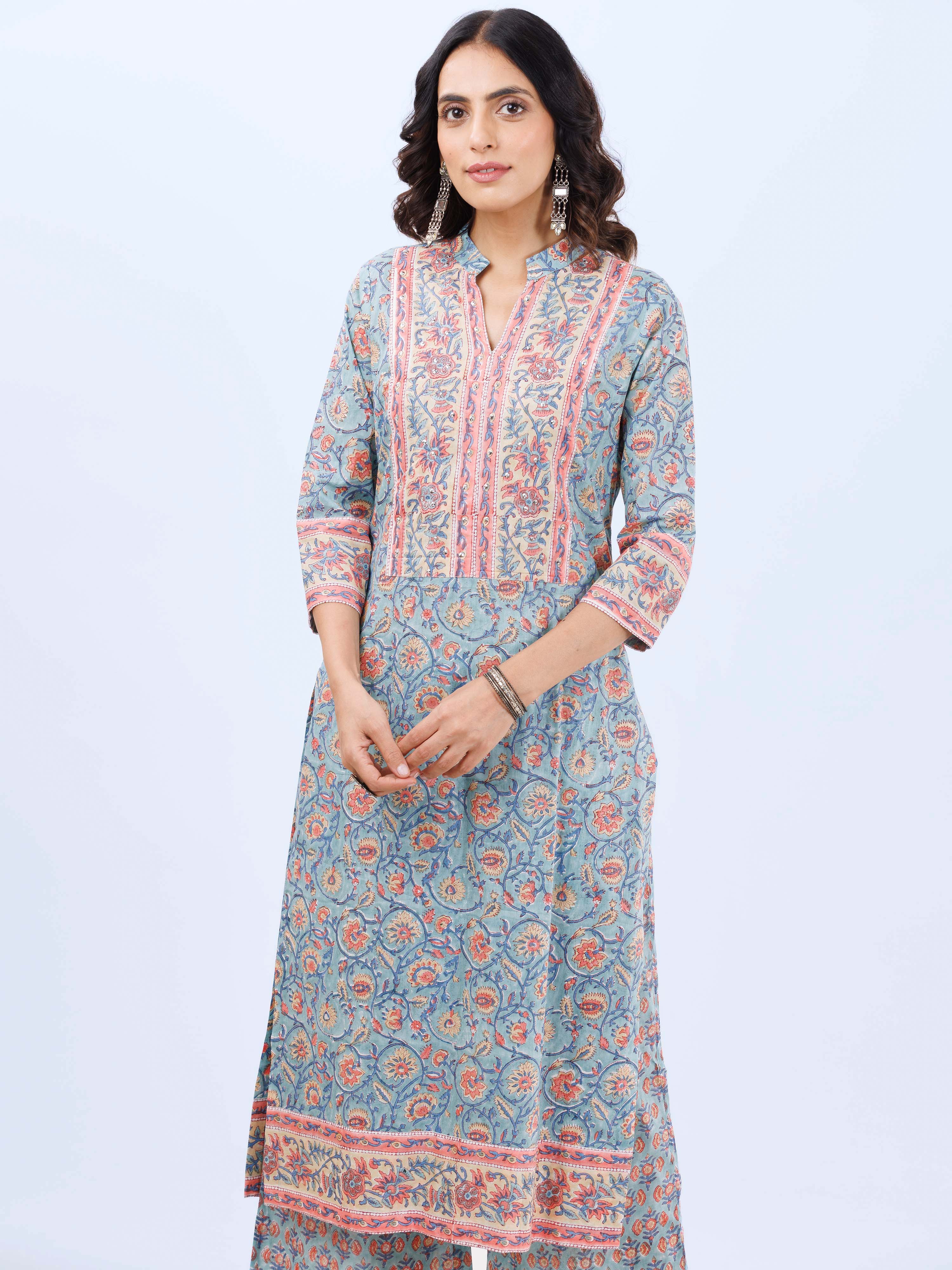 Product: This set contains Hand Block Printed Premium Cotton Kurta, 100% Cotton Pants and Kota Doria Dupatta.
