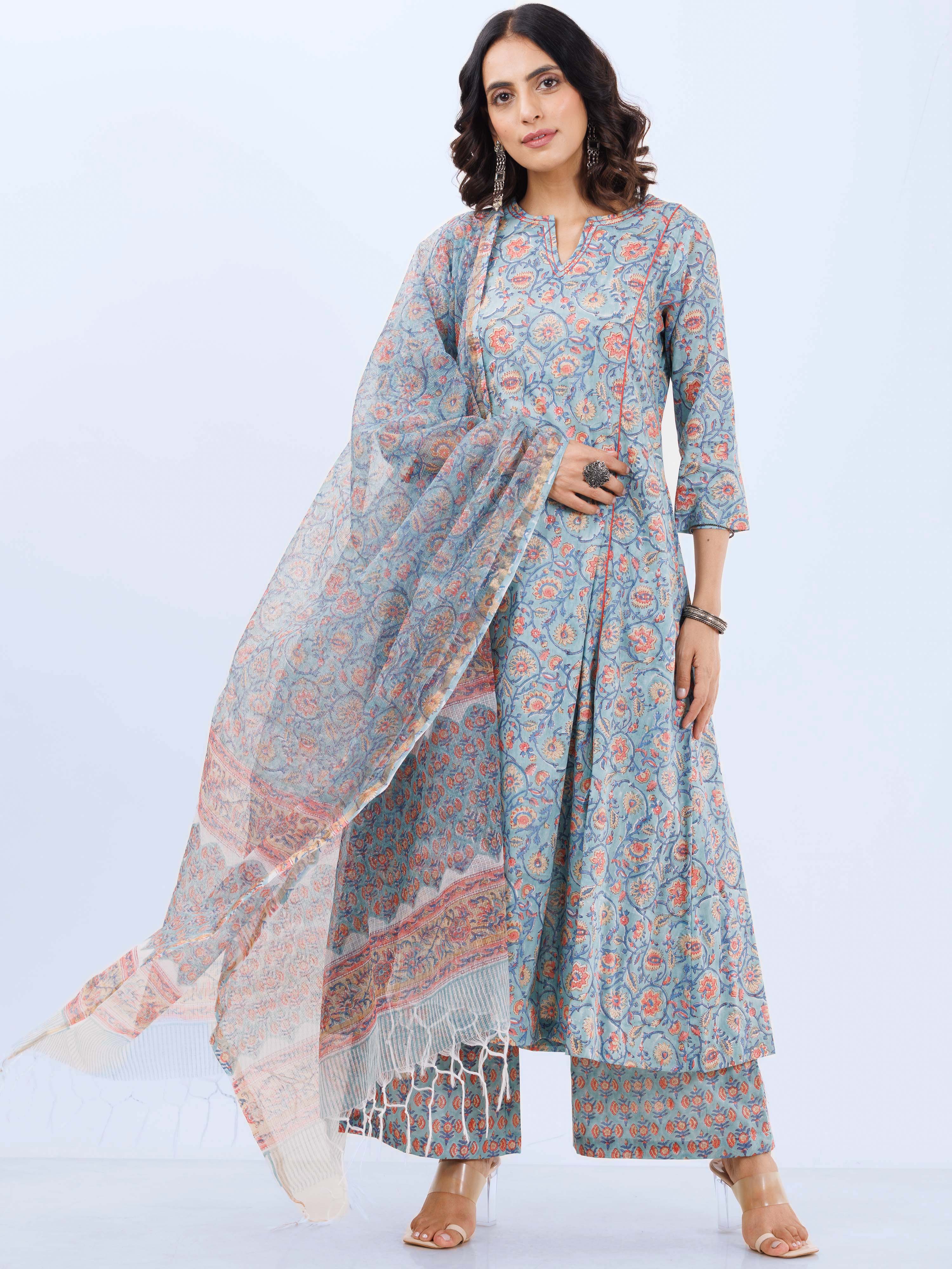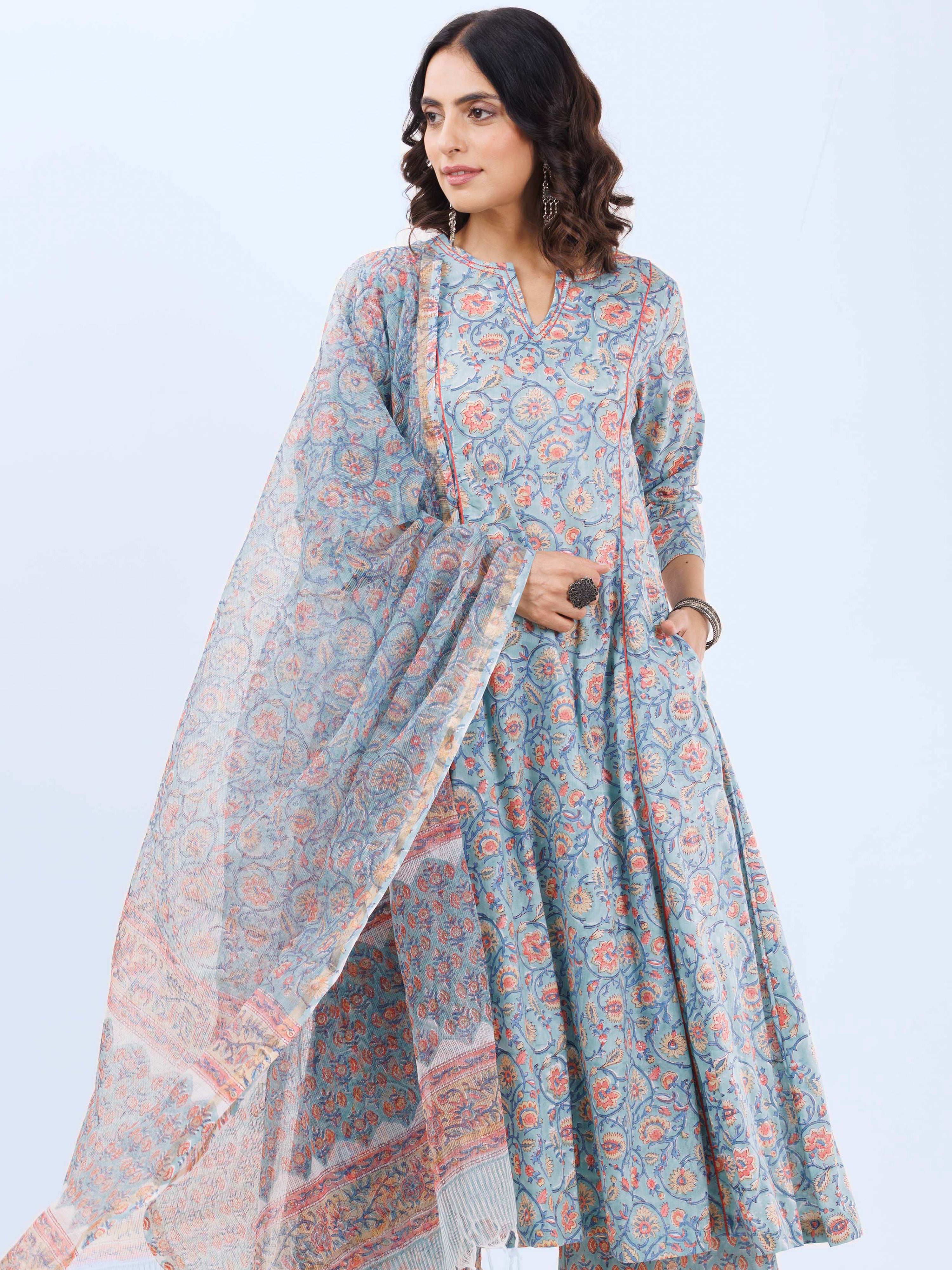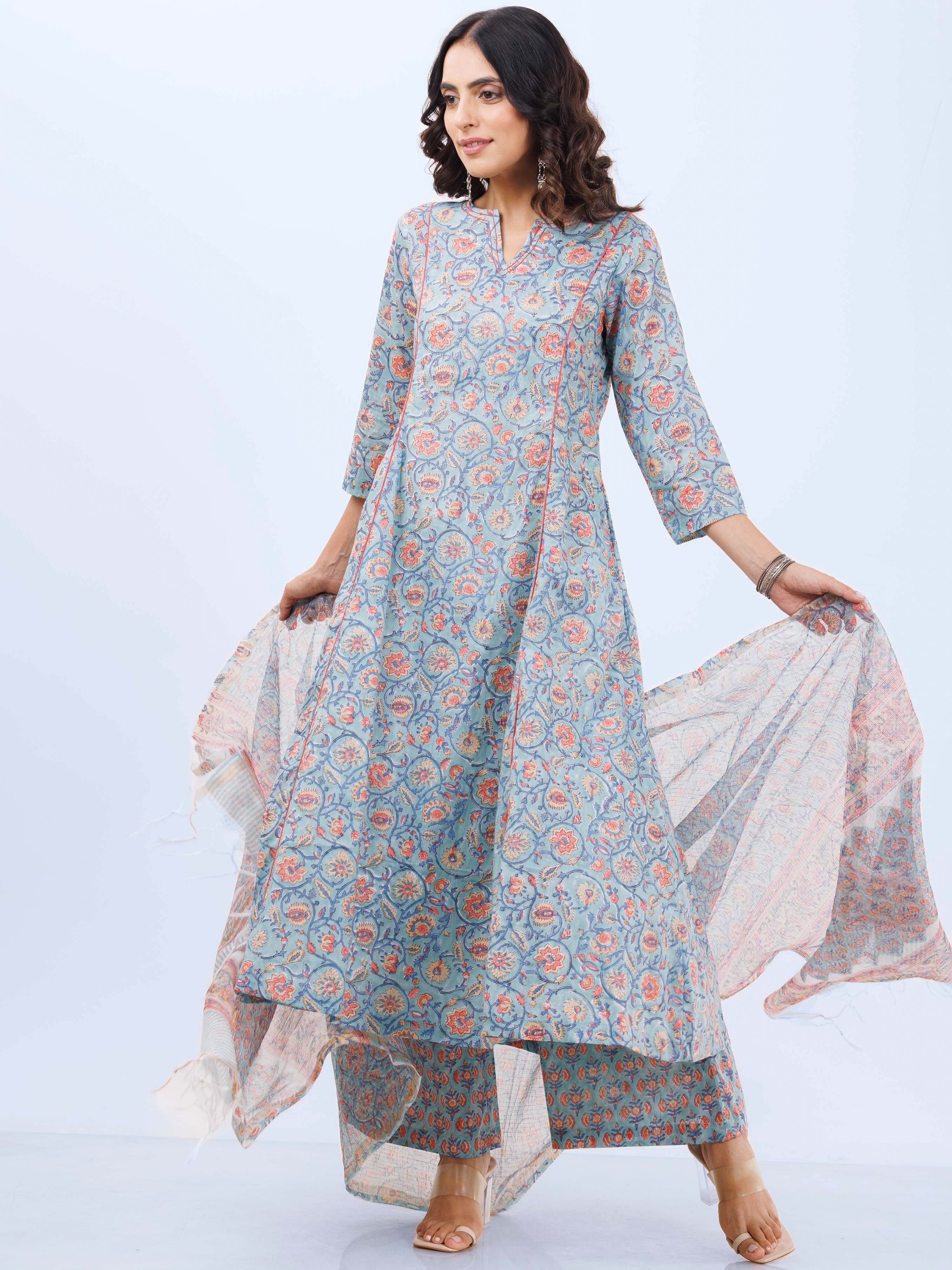 Product: This set contains Hand Block Printed Premium Cotton Kurta, 100% Cotton Pants and Kota Doria Dupatta.