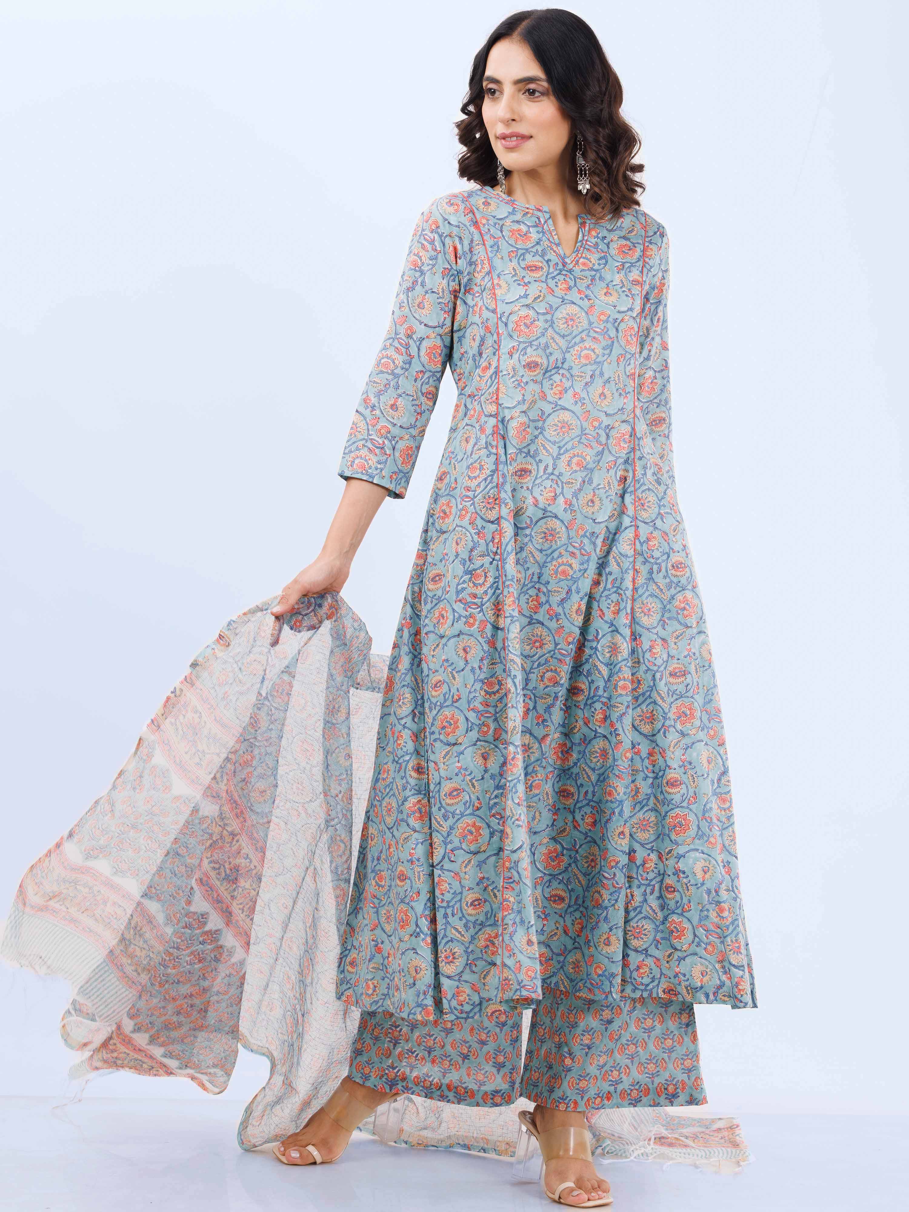 Fabric : Hand Block Printed. Kurta - Cotton . Pants - Cotton, Dupatta - Kota Doria