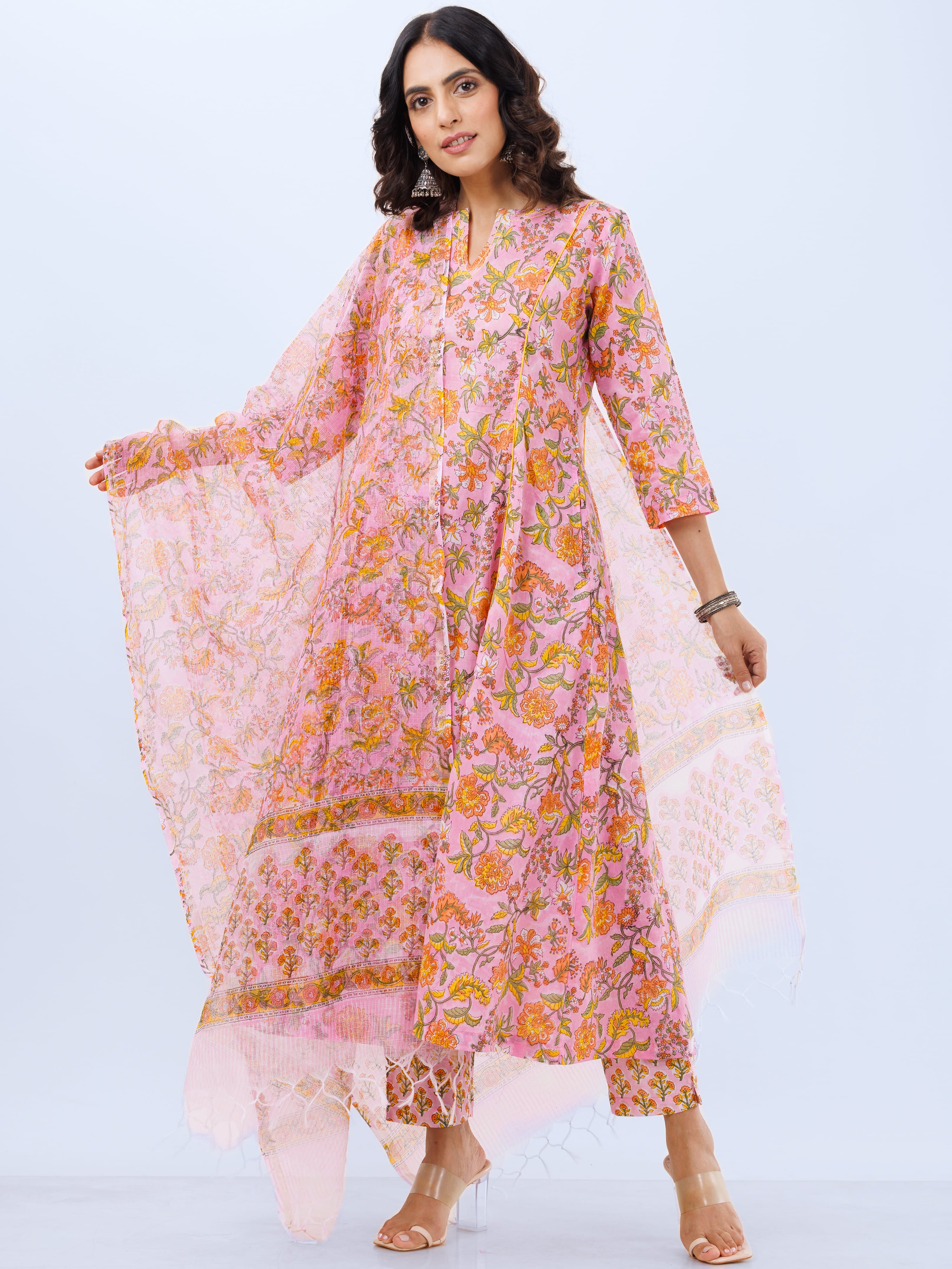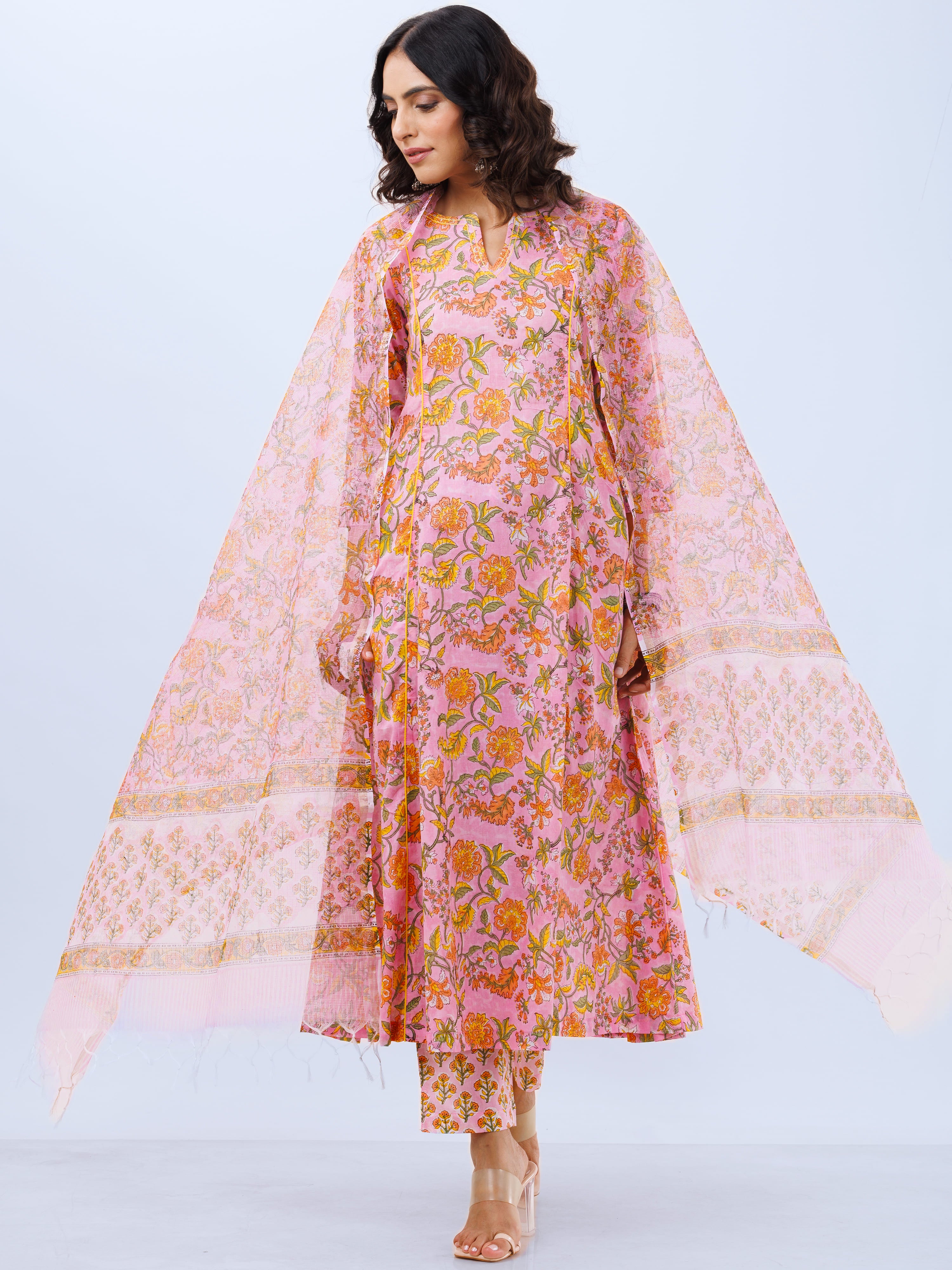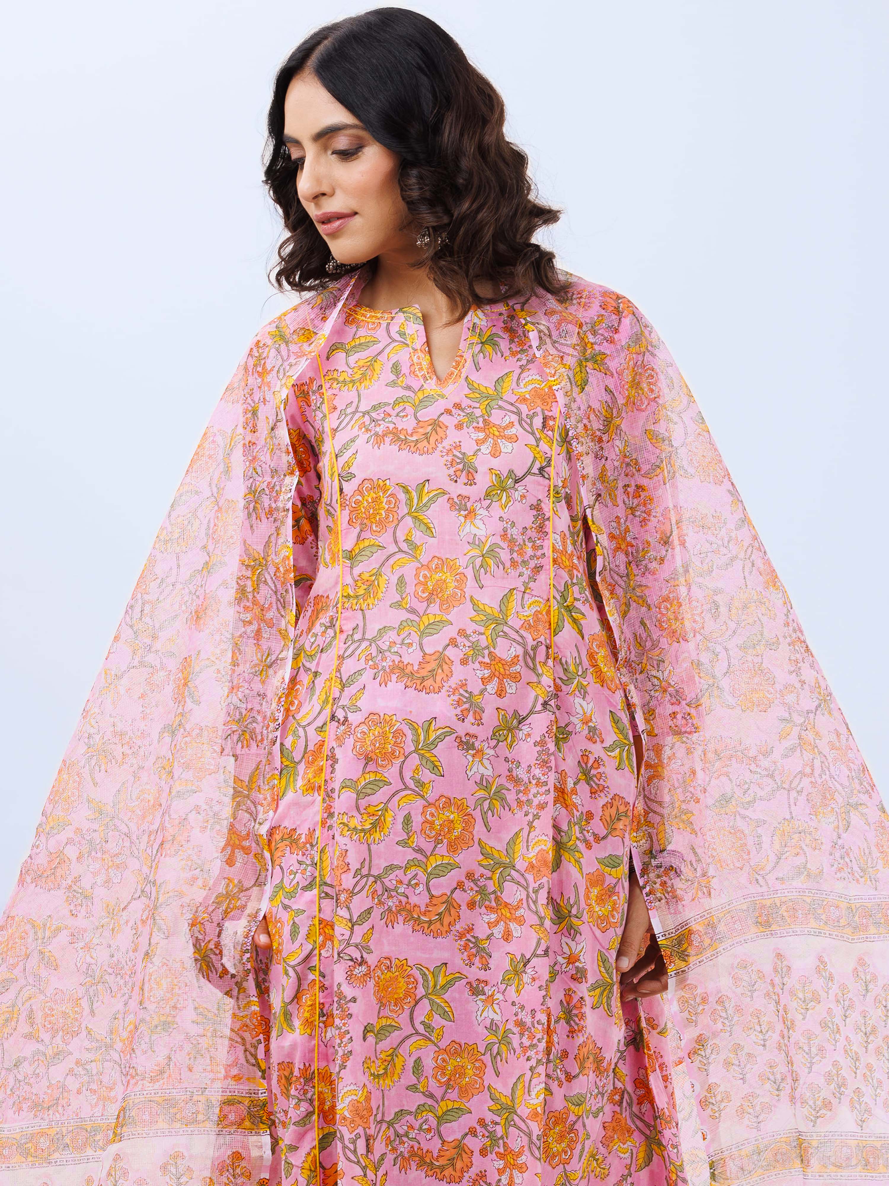 Product: This set contains Hand Block Printed Premium Cotton Kurta, 100% Cotton Pants and Kota Doria Dupatta.