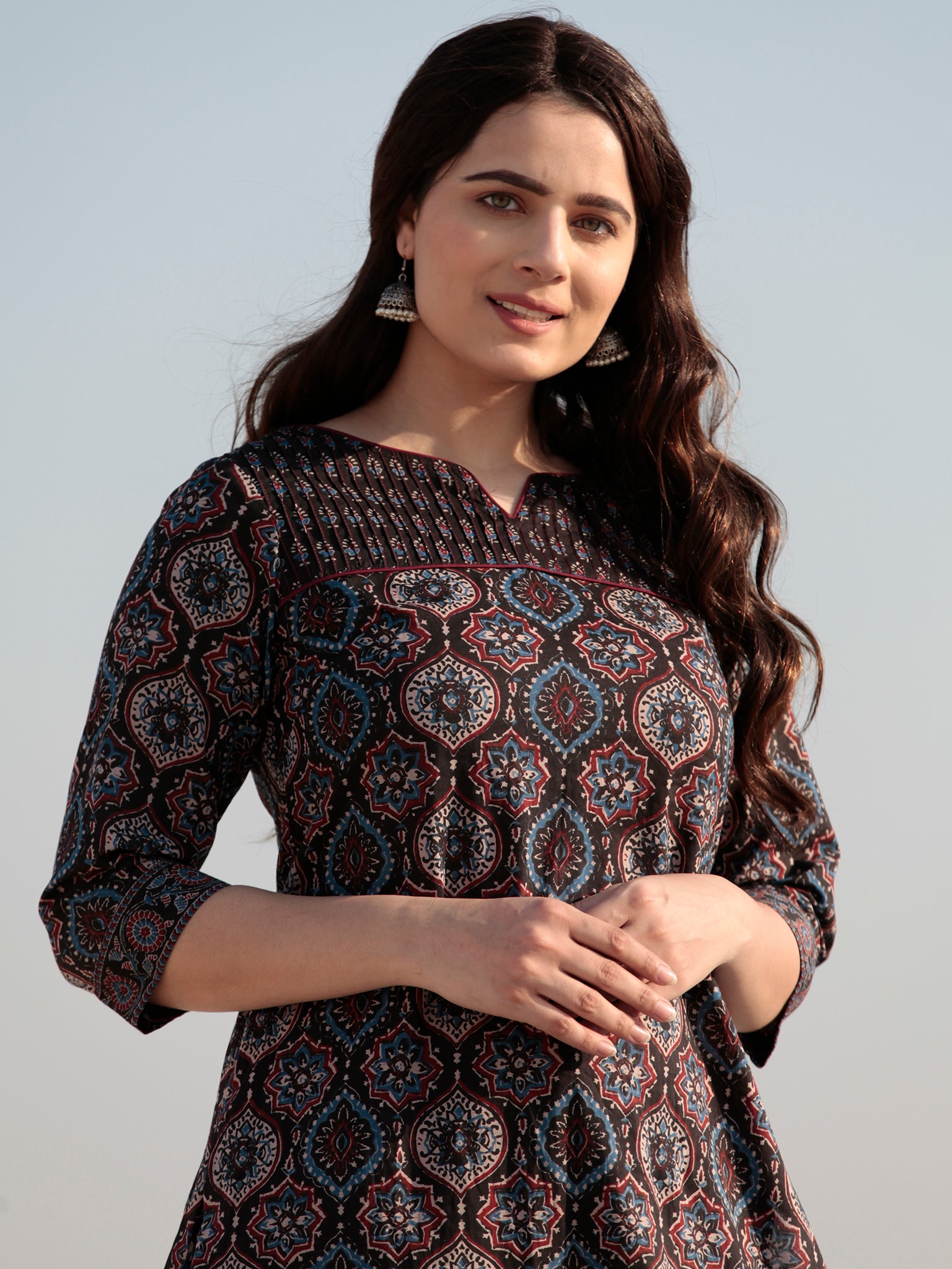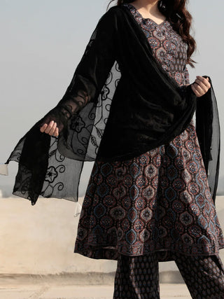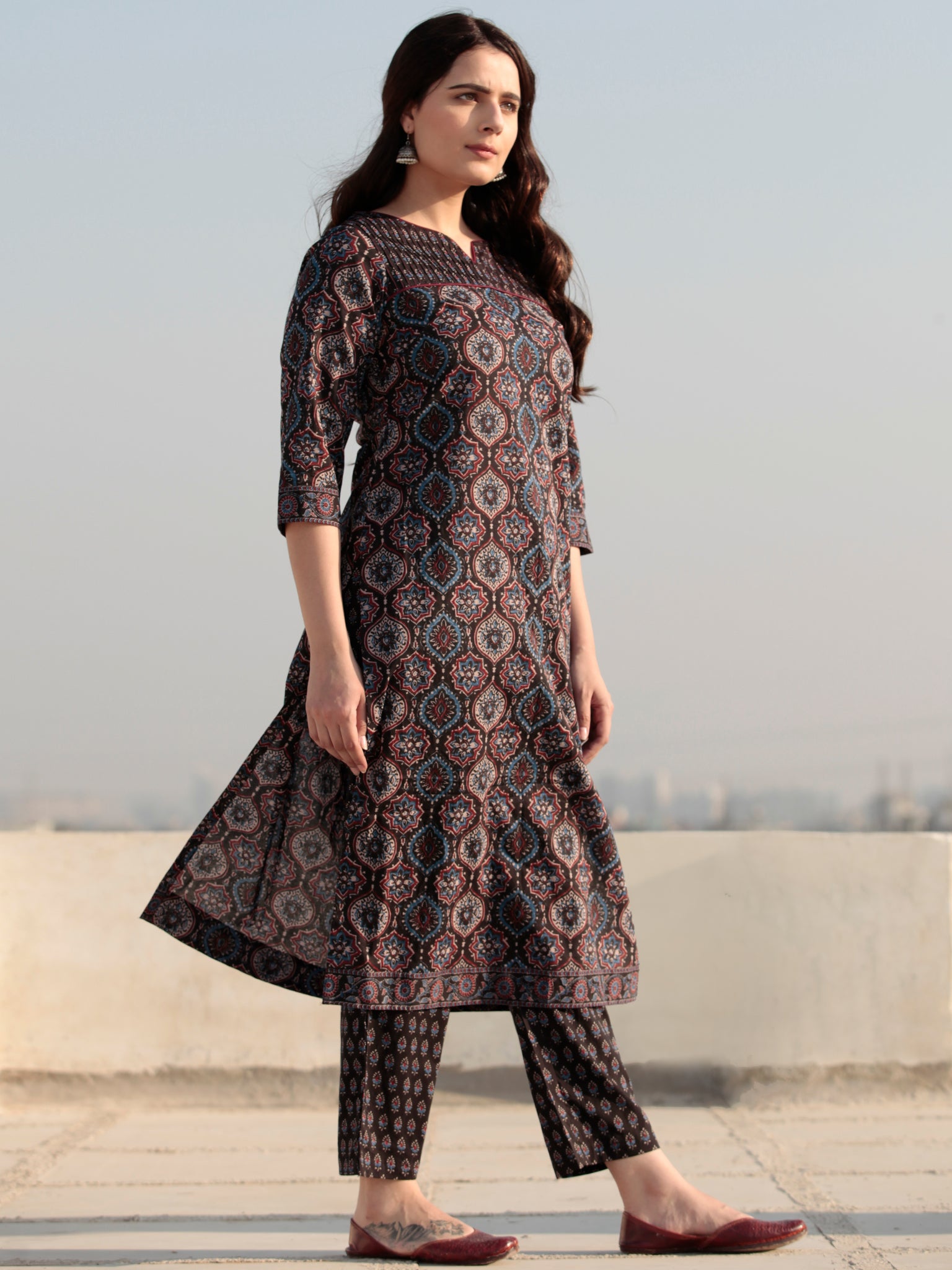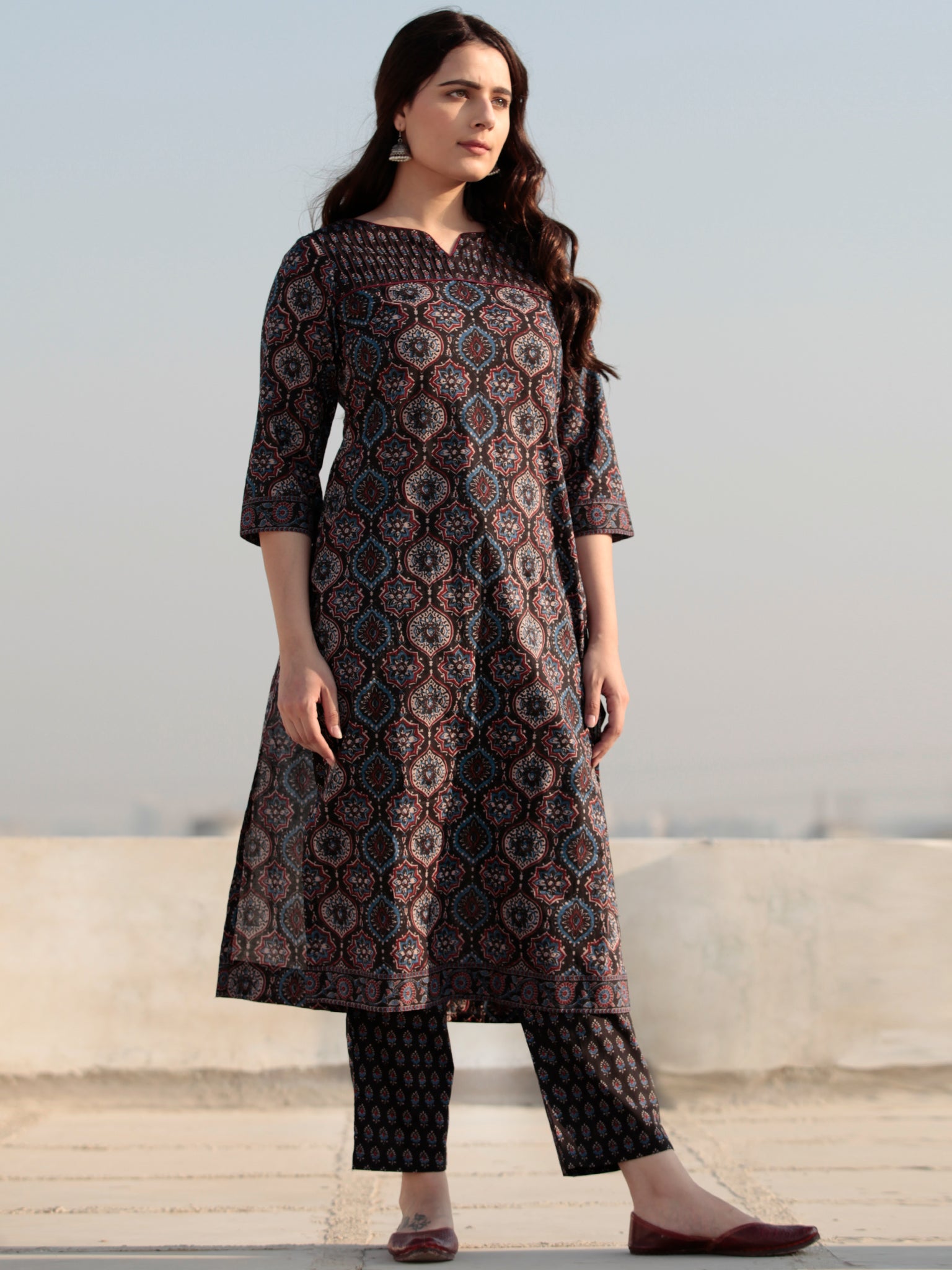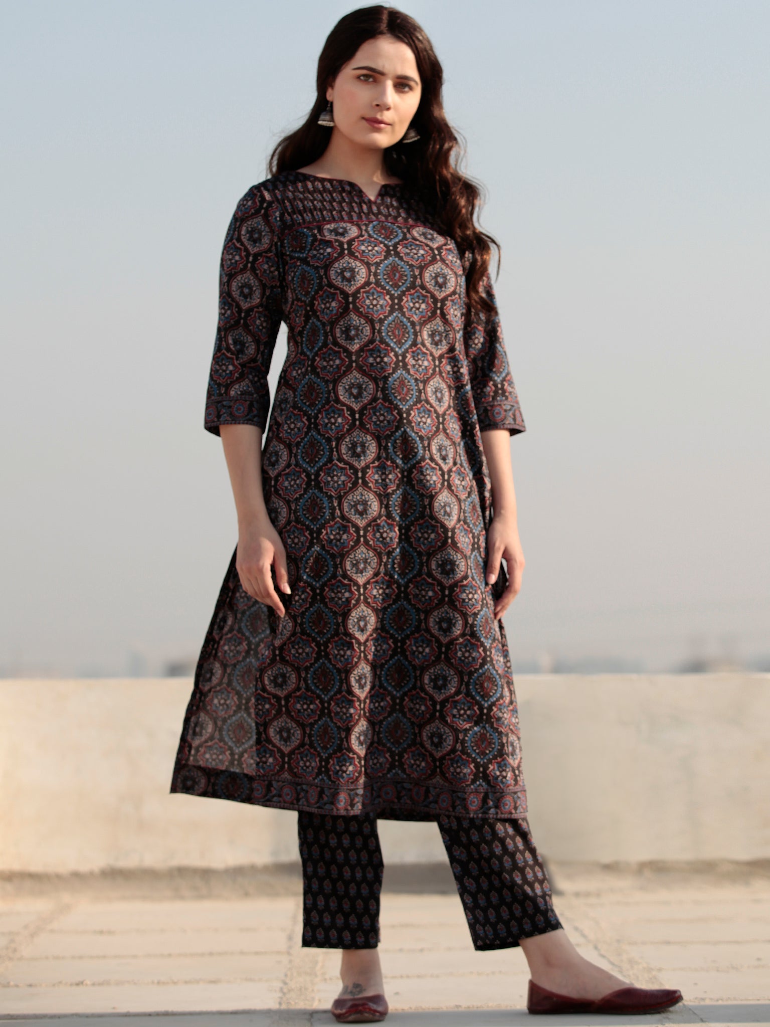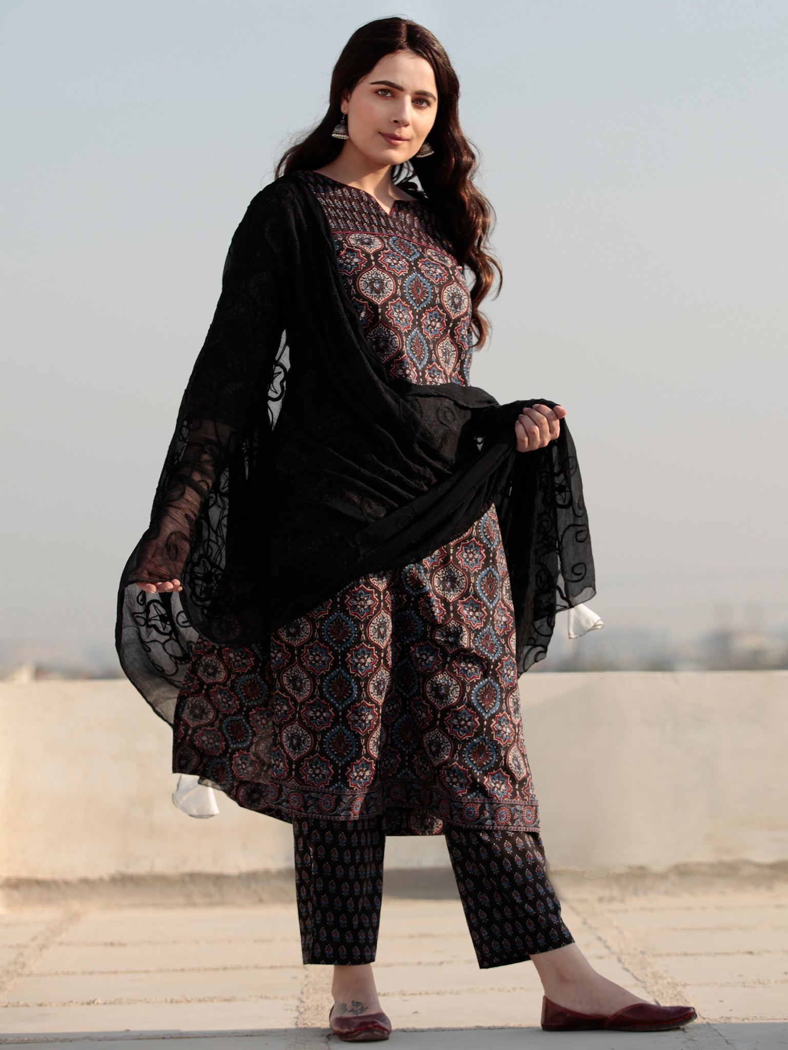 Ajrakh Shifat - Set of Straight Kurta Pants & Dupatta - KS47N2513D