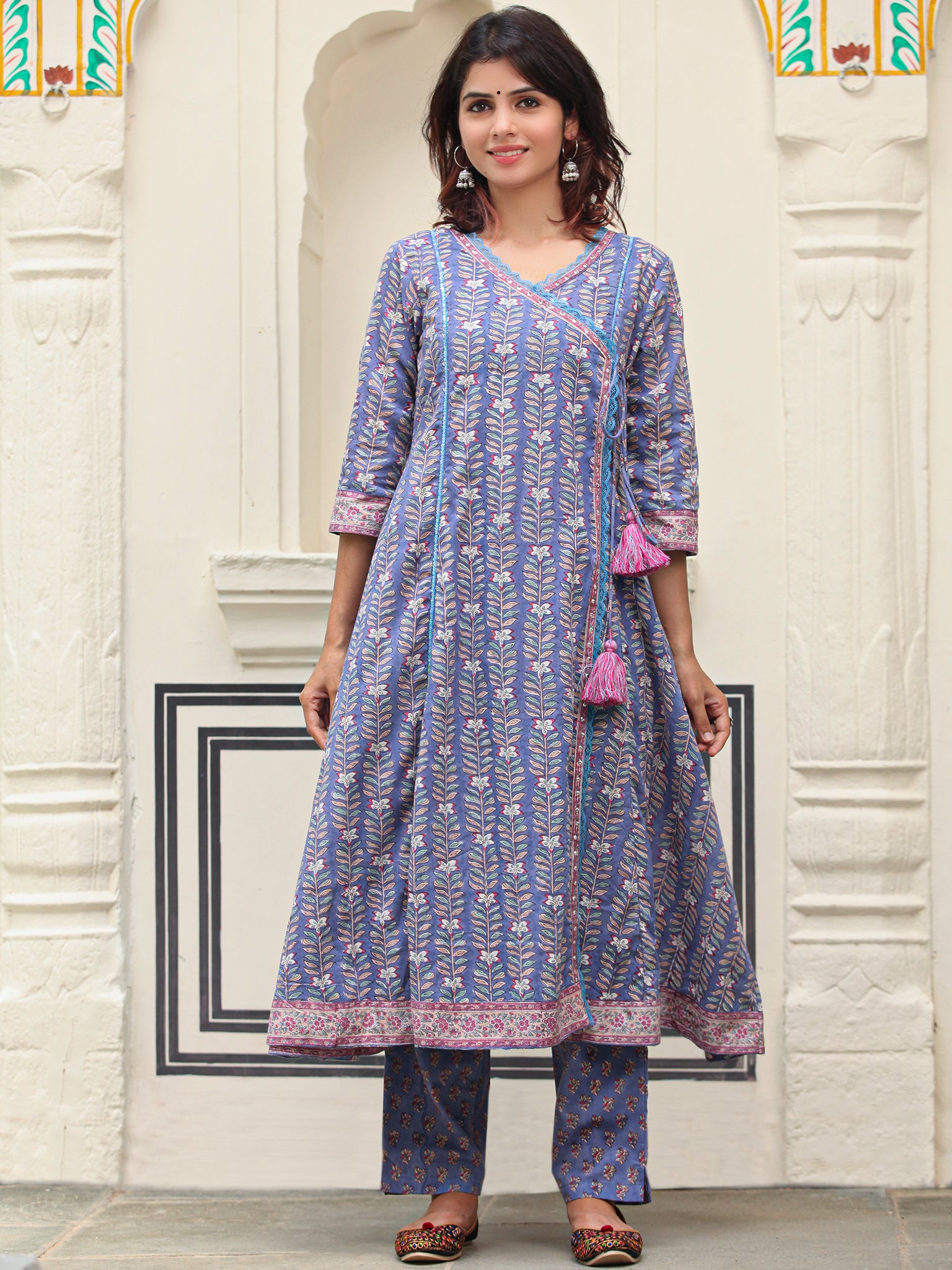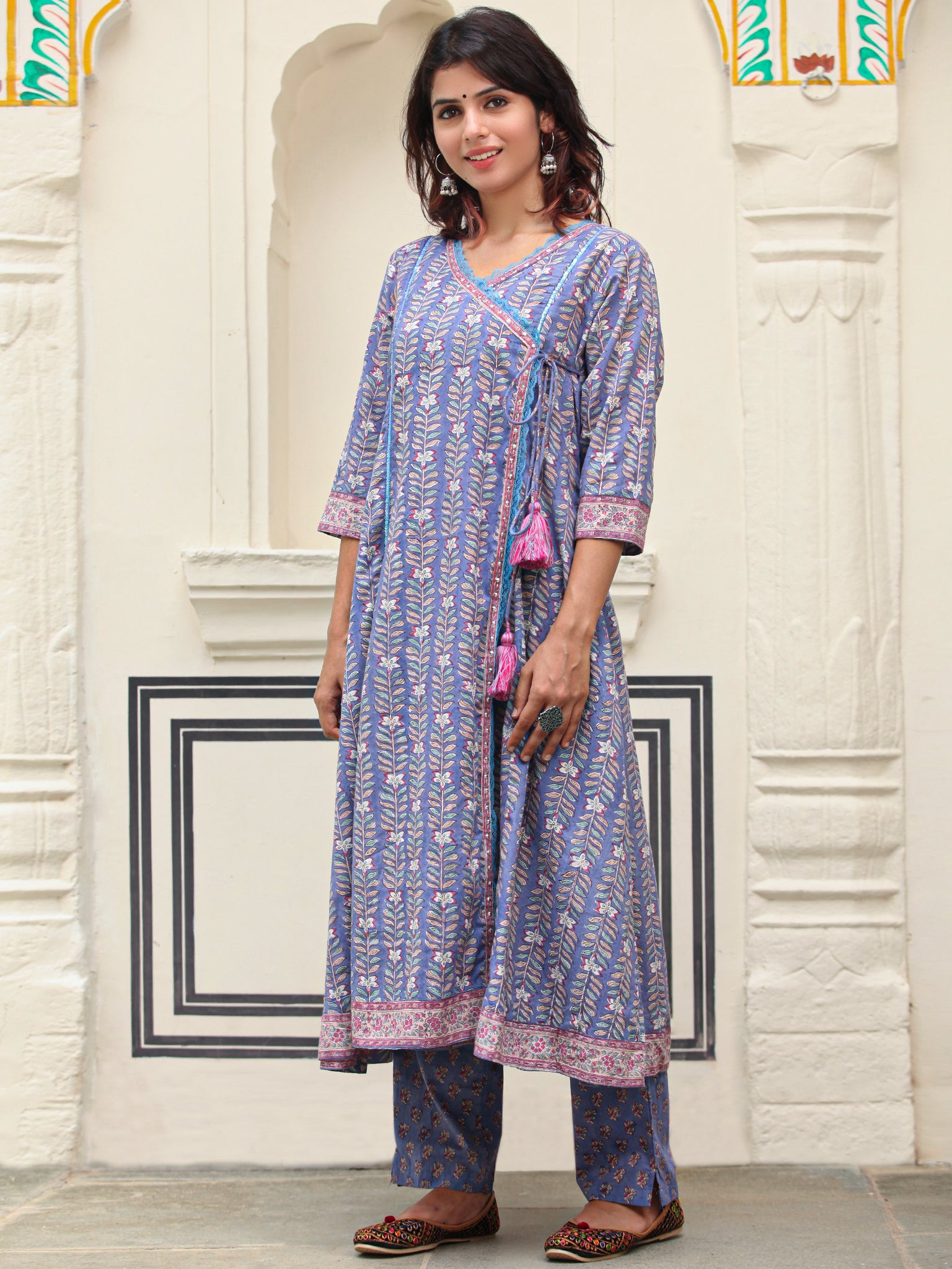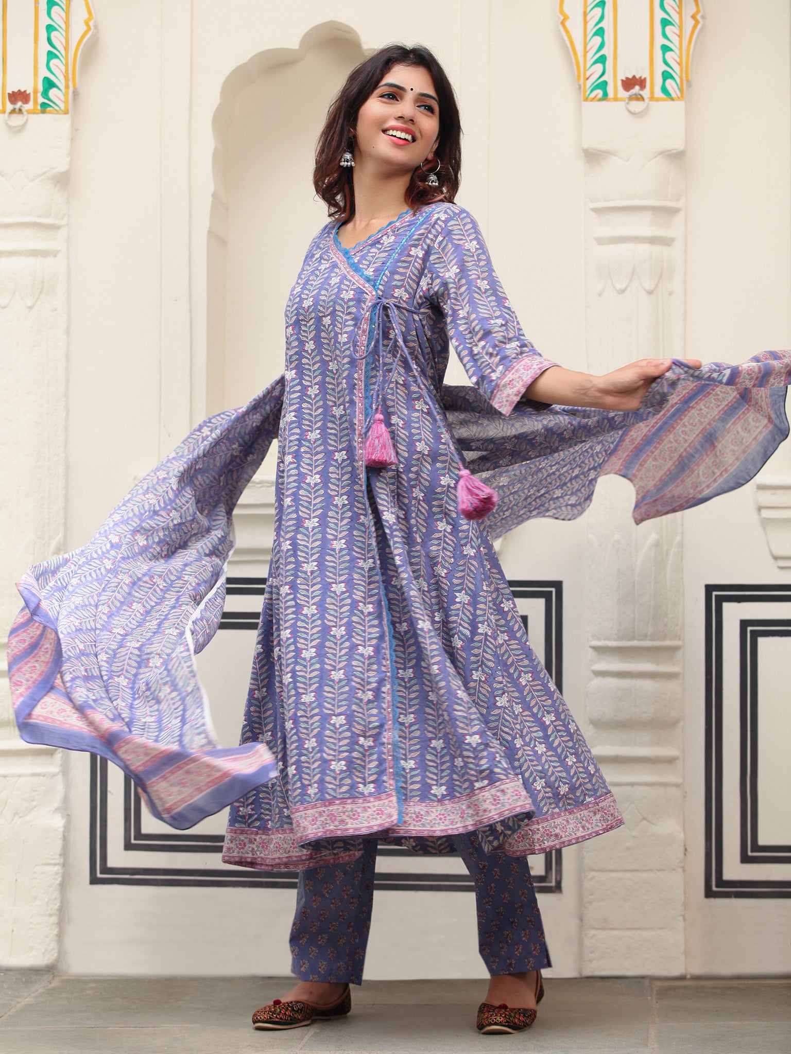 Product: This set contains Handcrafted Sanganeri Premium Cotton Kurta, 100% Cotton Palazzo Pants and Kota Doria Dupatta.