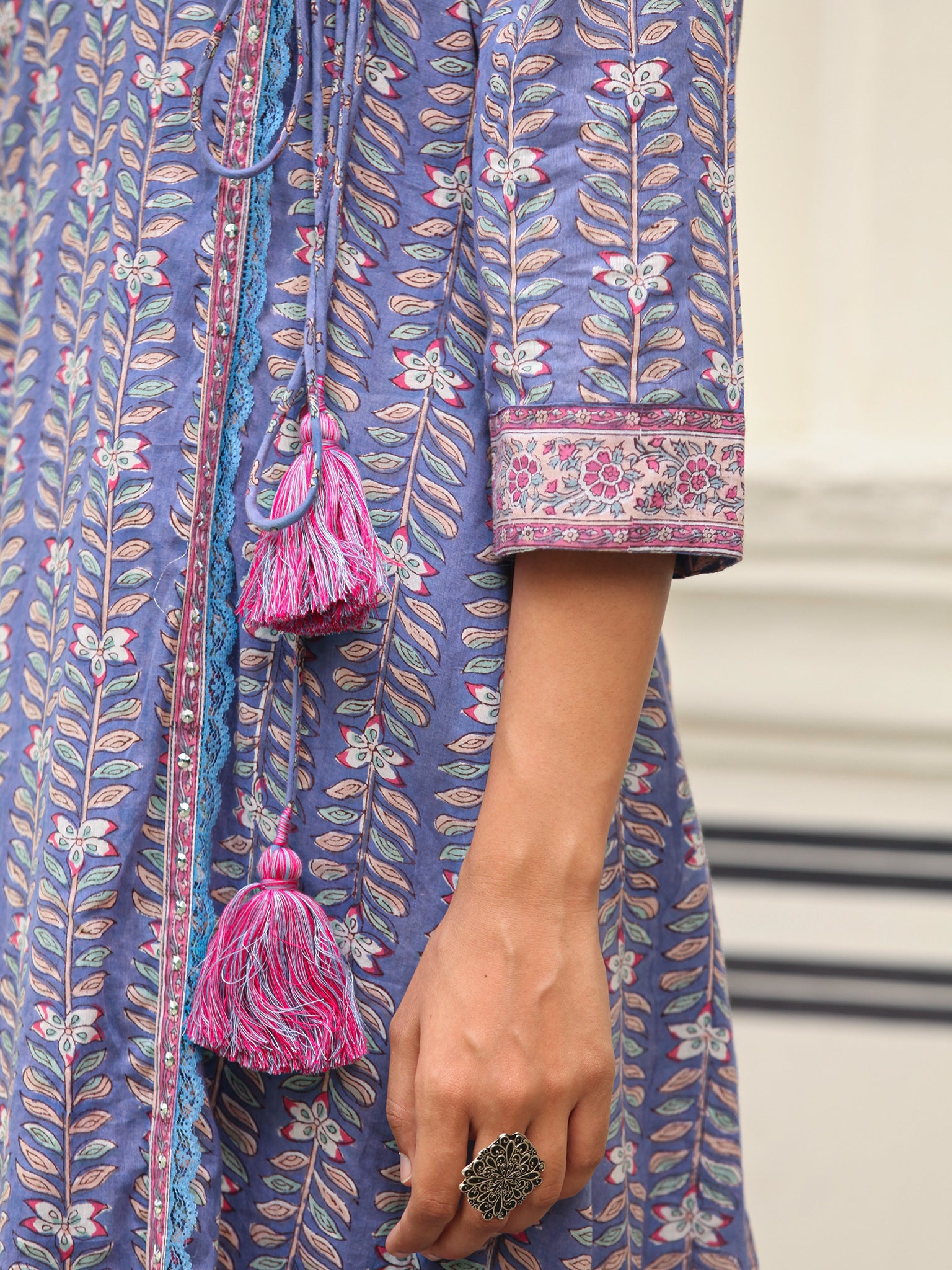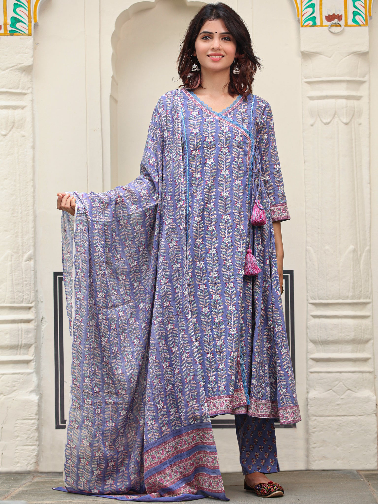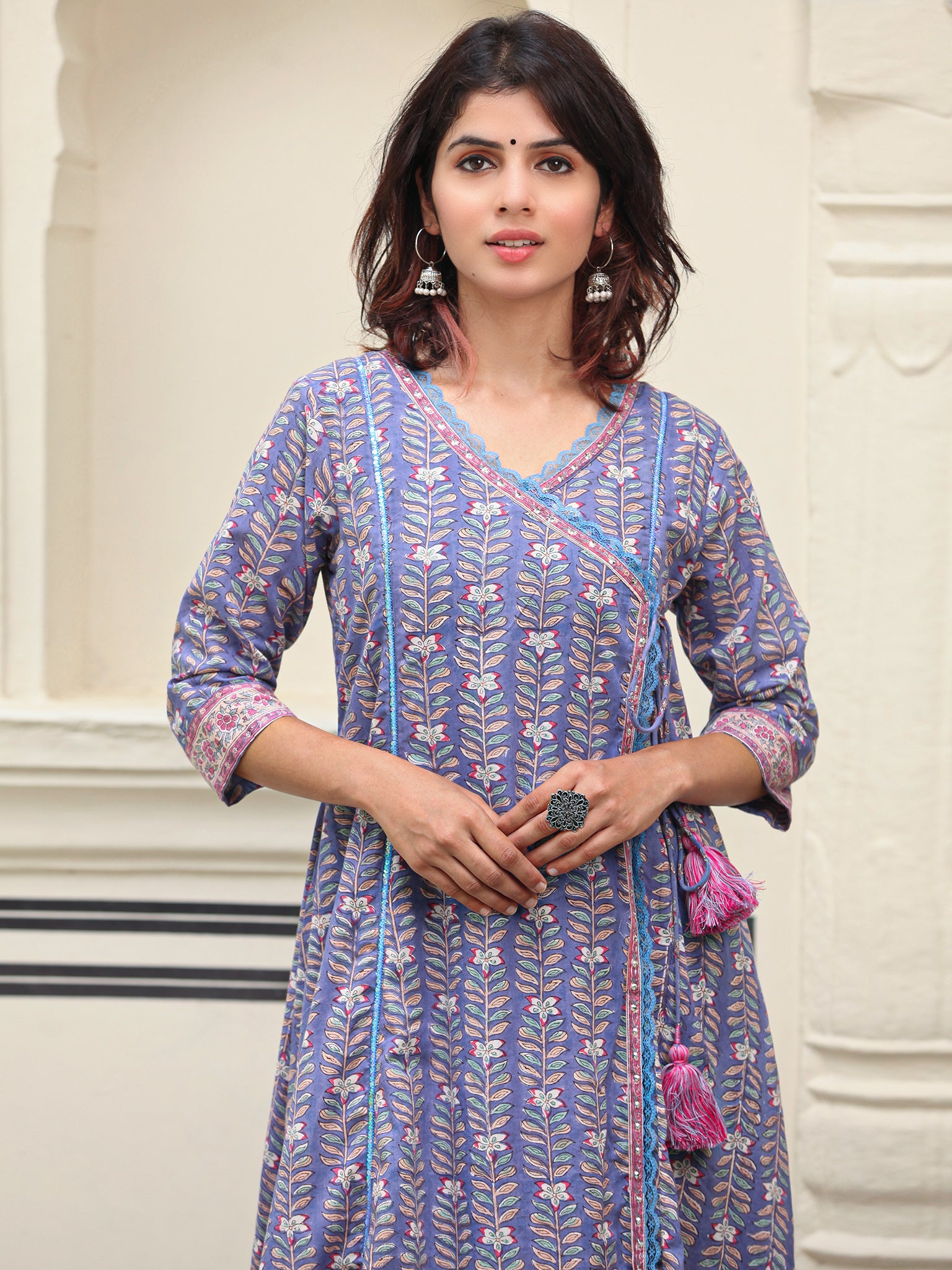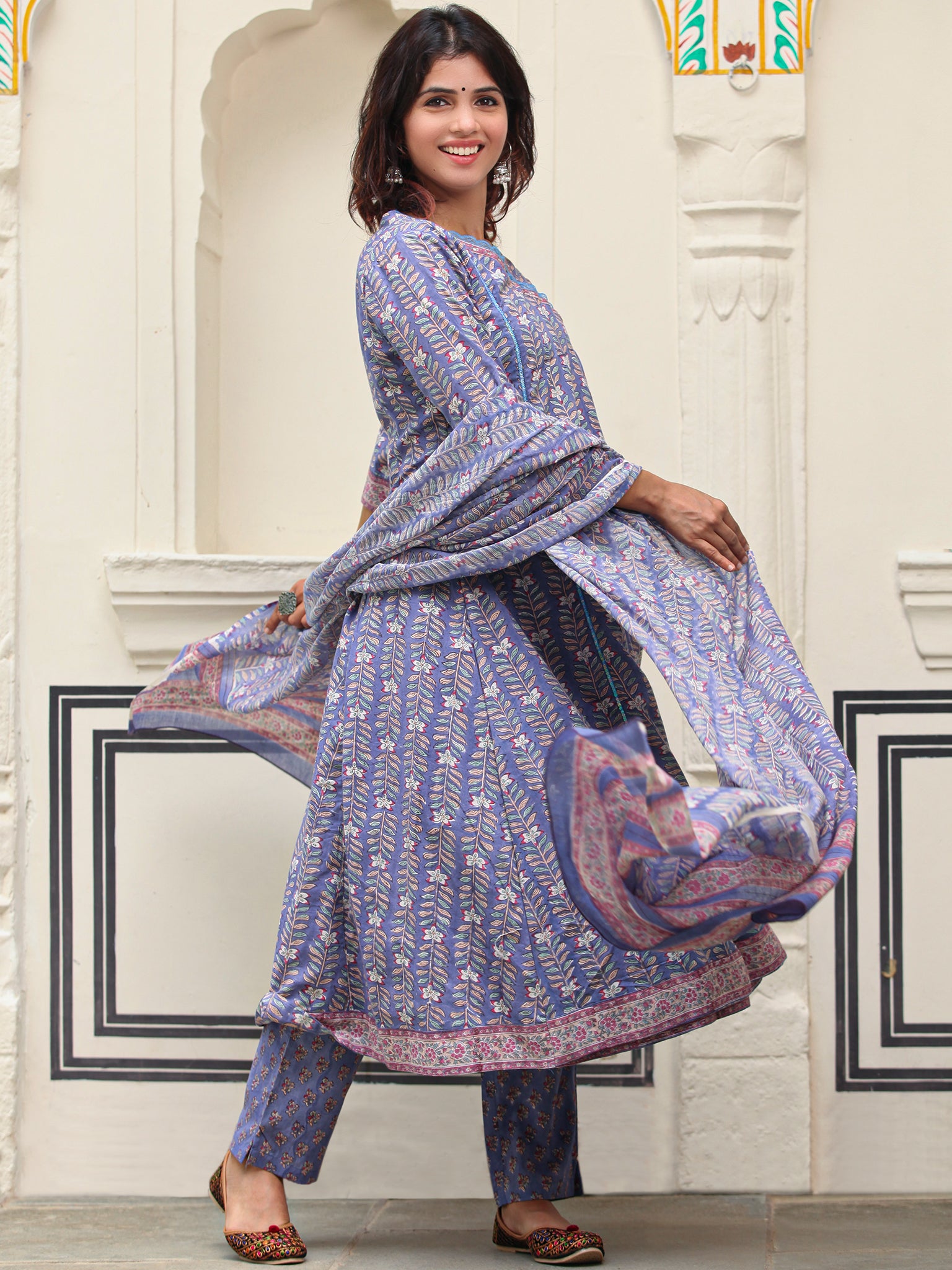 Product: This set contains Handcrafted Sanganeri Premium Cotton Kurta, 100% Cotton Palazzo Pants and Kota Doria Dupatta.