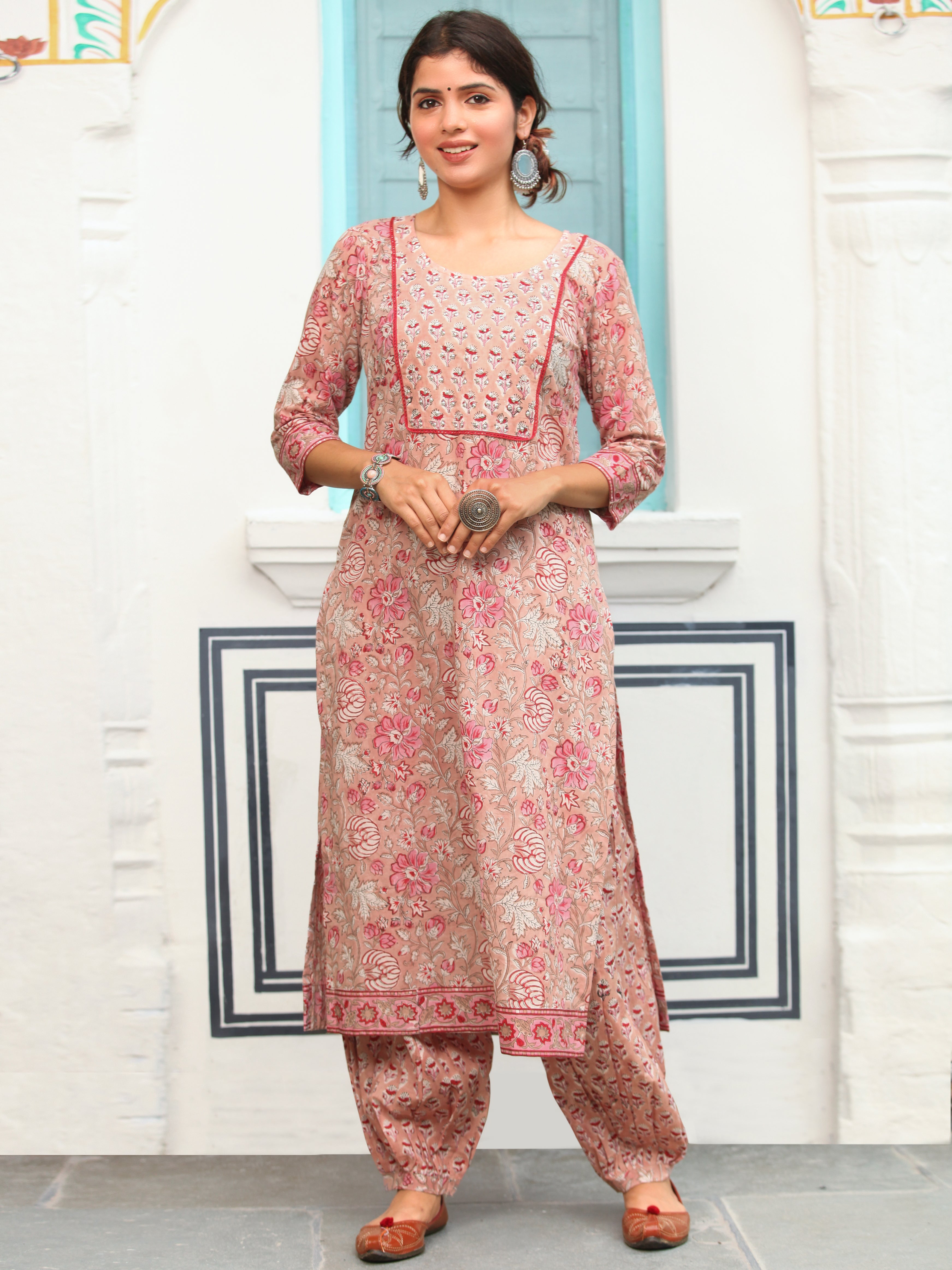Product: This set contains Handcrafted Sanganeri Premium Cotton Kurta, 100% Cotton Pants and Kota Doria Dupatta.