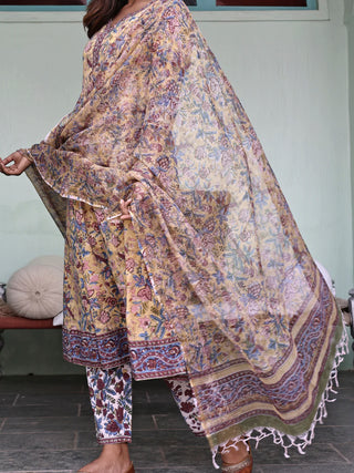 Fabric : Hand Block Printed. Kurta - Cotton. Pants - Cotton, Dupatta - Kota Doria