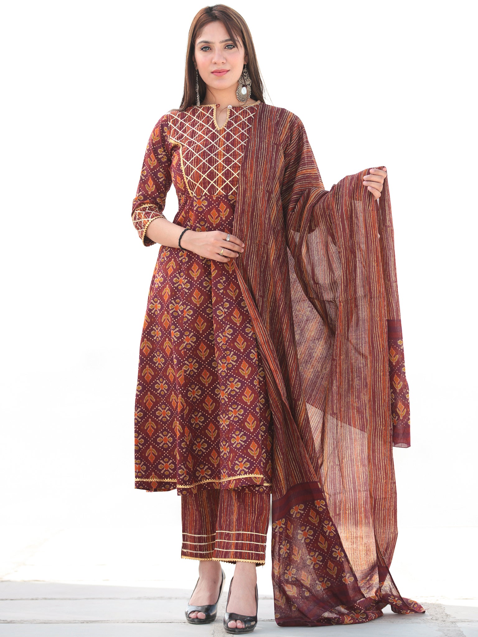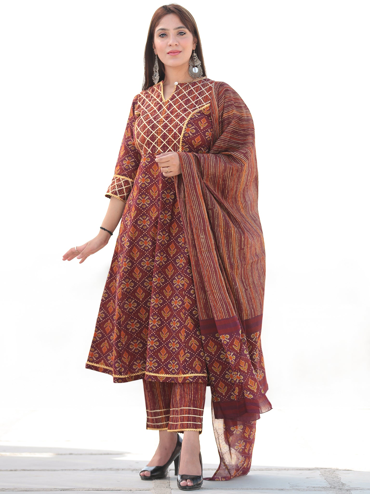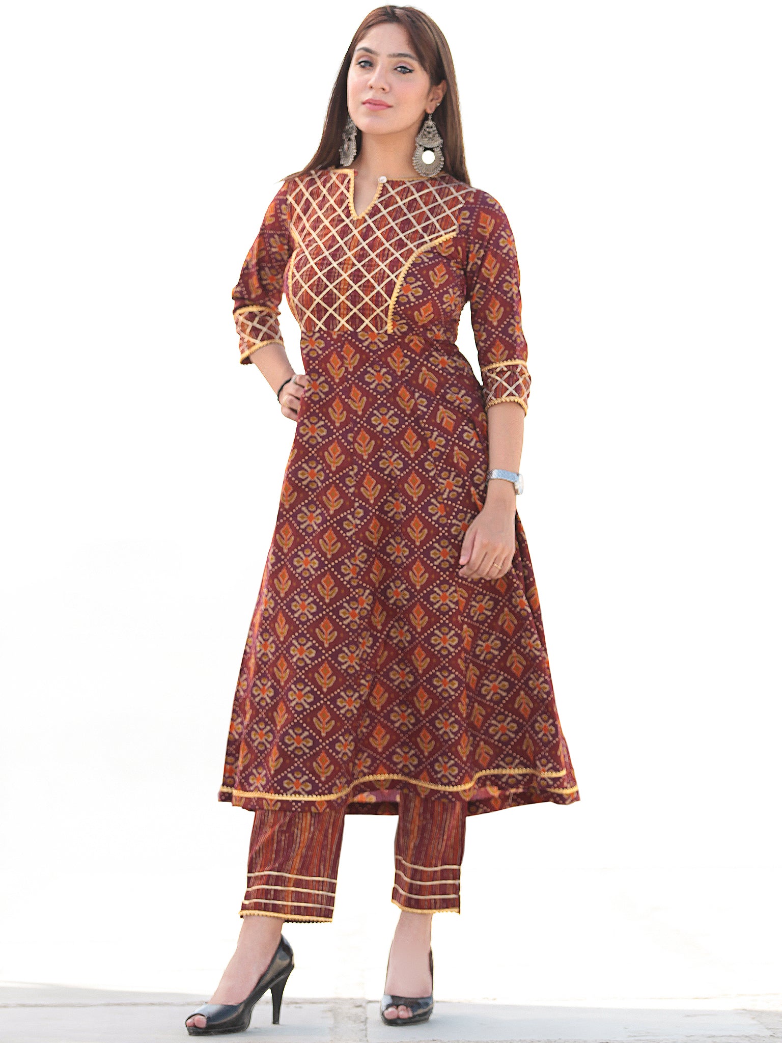 Product: This set contains Handcrafted Sanganeri Premium Cotton Kurta, 100% Cotton Pants and Cotton Dupatta.