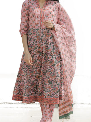 Product: This set contains Handcrafted Sanganeri Premium Cotton Kurta, 100% Cotton Pants and Cotton Dupatta.