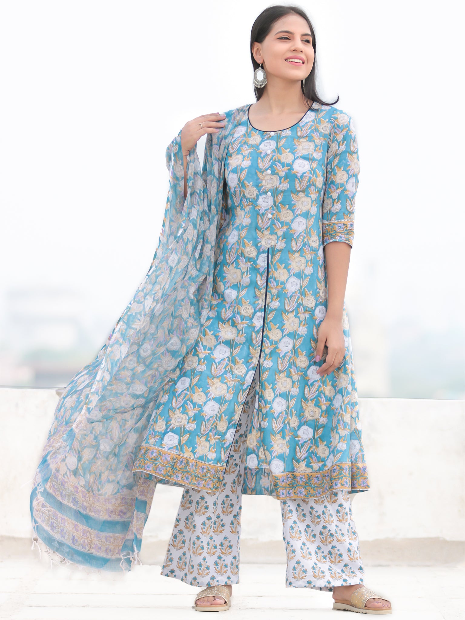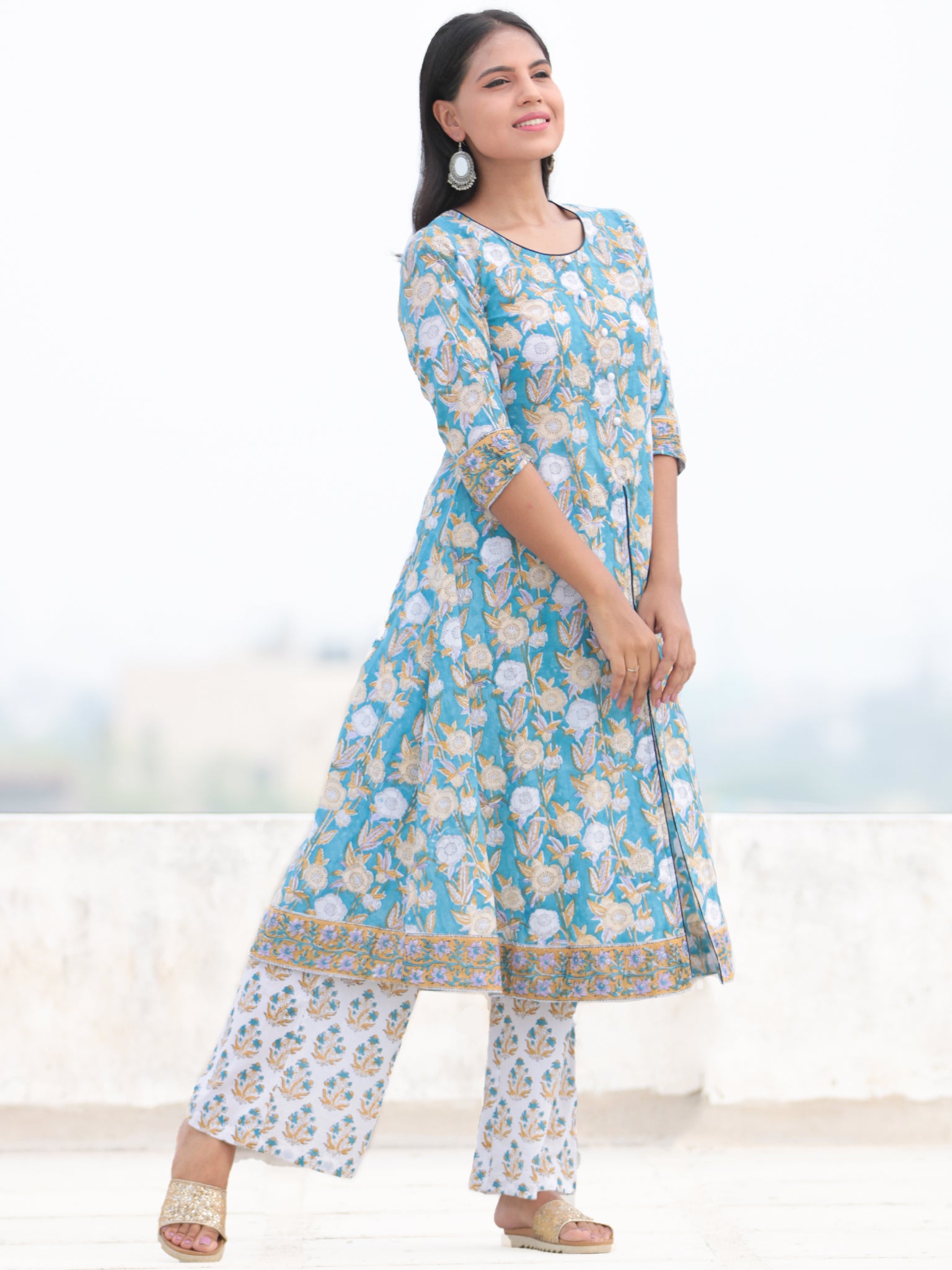 Product: This set contains Handcrafted Sanganeri Premium Cotton Kurta, 100% Cotton Pants and Cotton Dupatta.