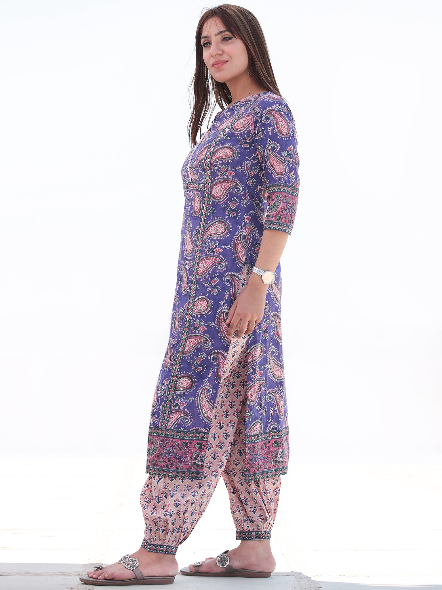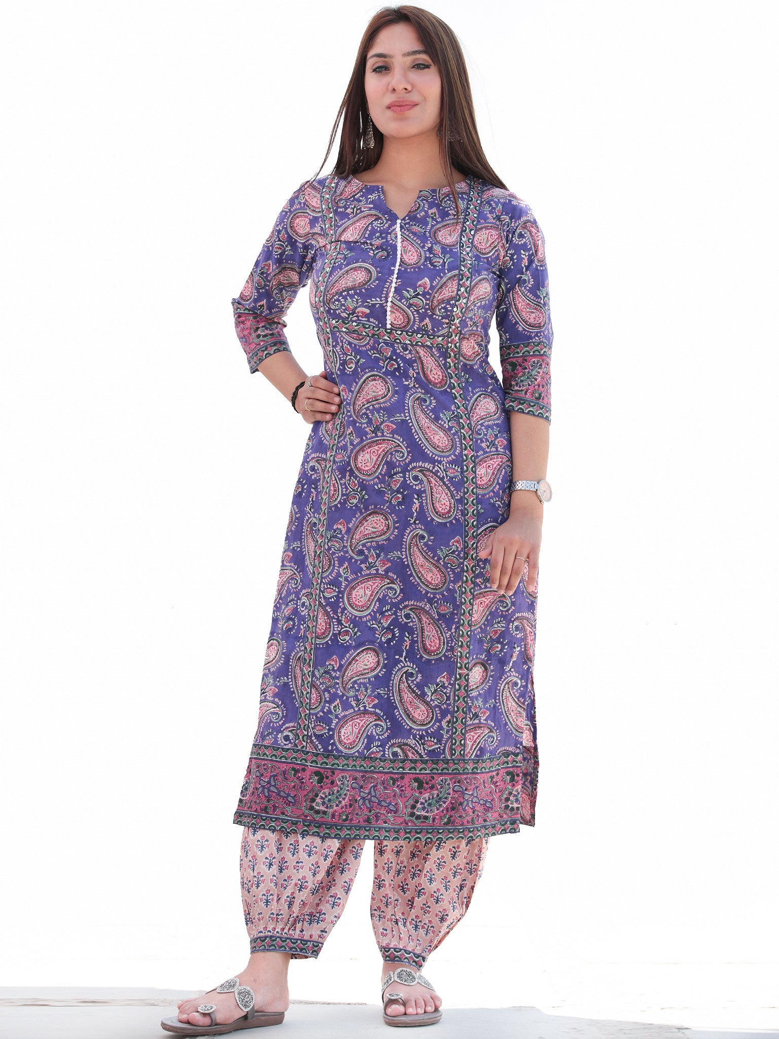 Product: This set contains Handcrafted Sanganeri Premium Cotton Kurta, 100% Cotton Pants and Cotton Dupatta.