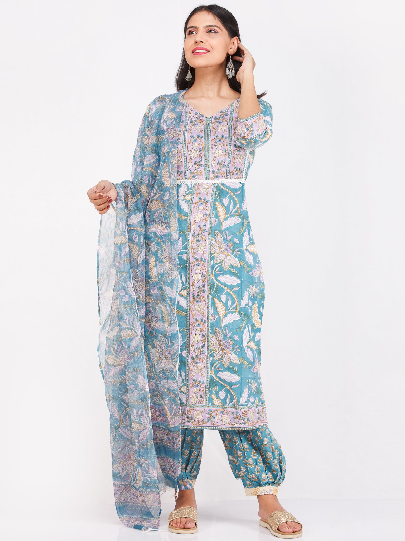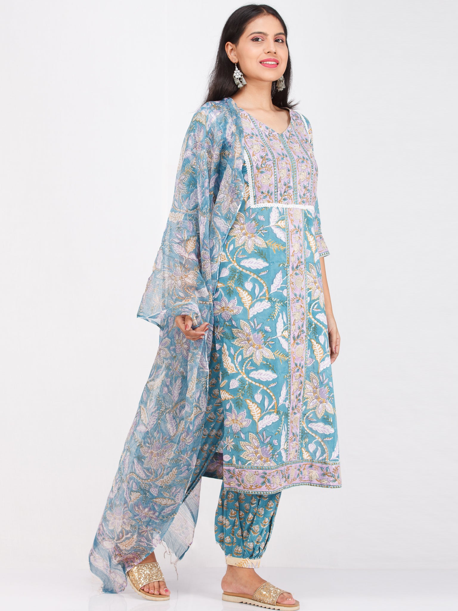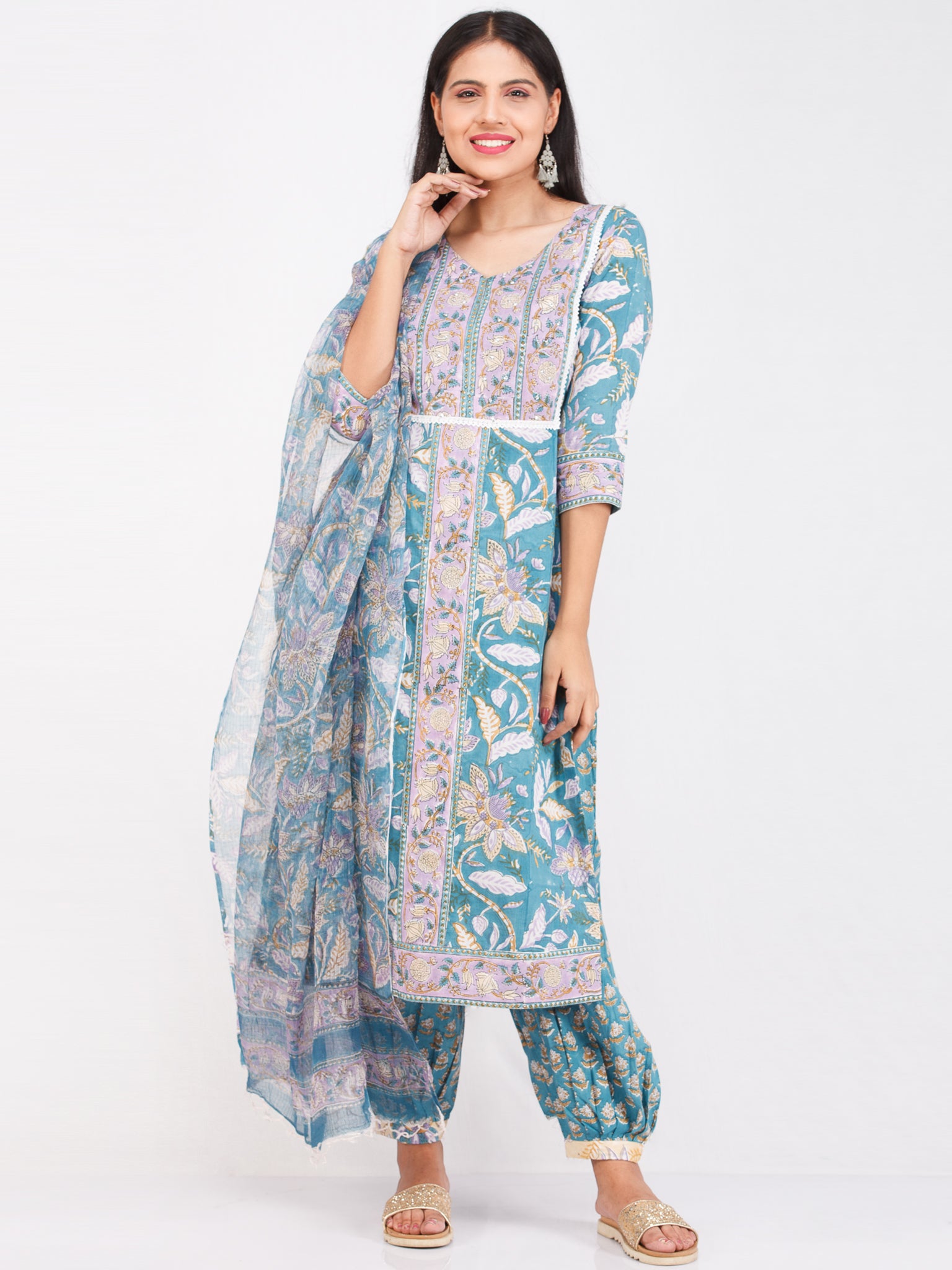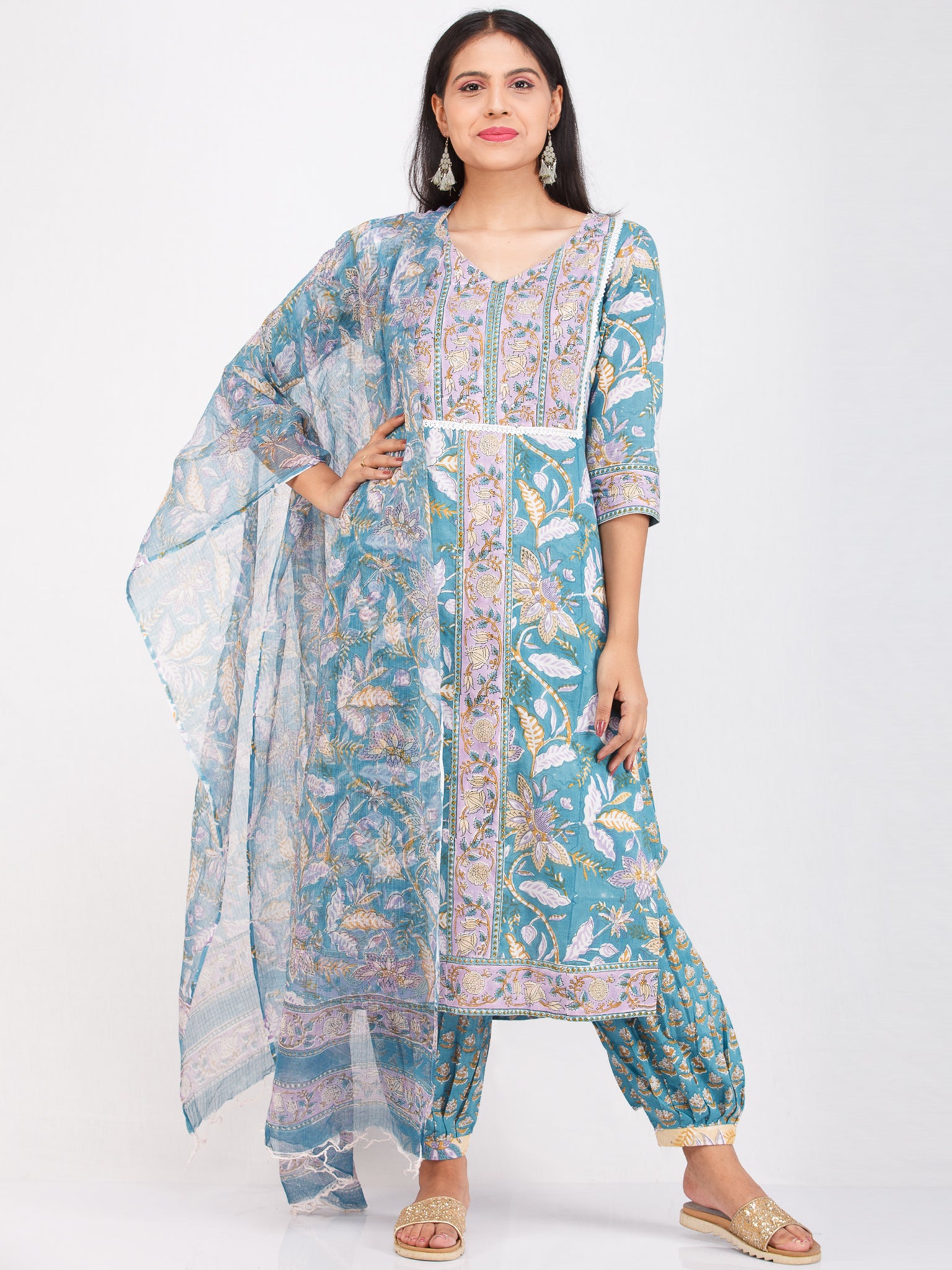 Fabric : Hand Block Printed. Kurta - Cotton. Pants - Cotton, Dupatta - Kota Doria