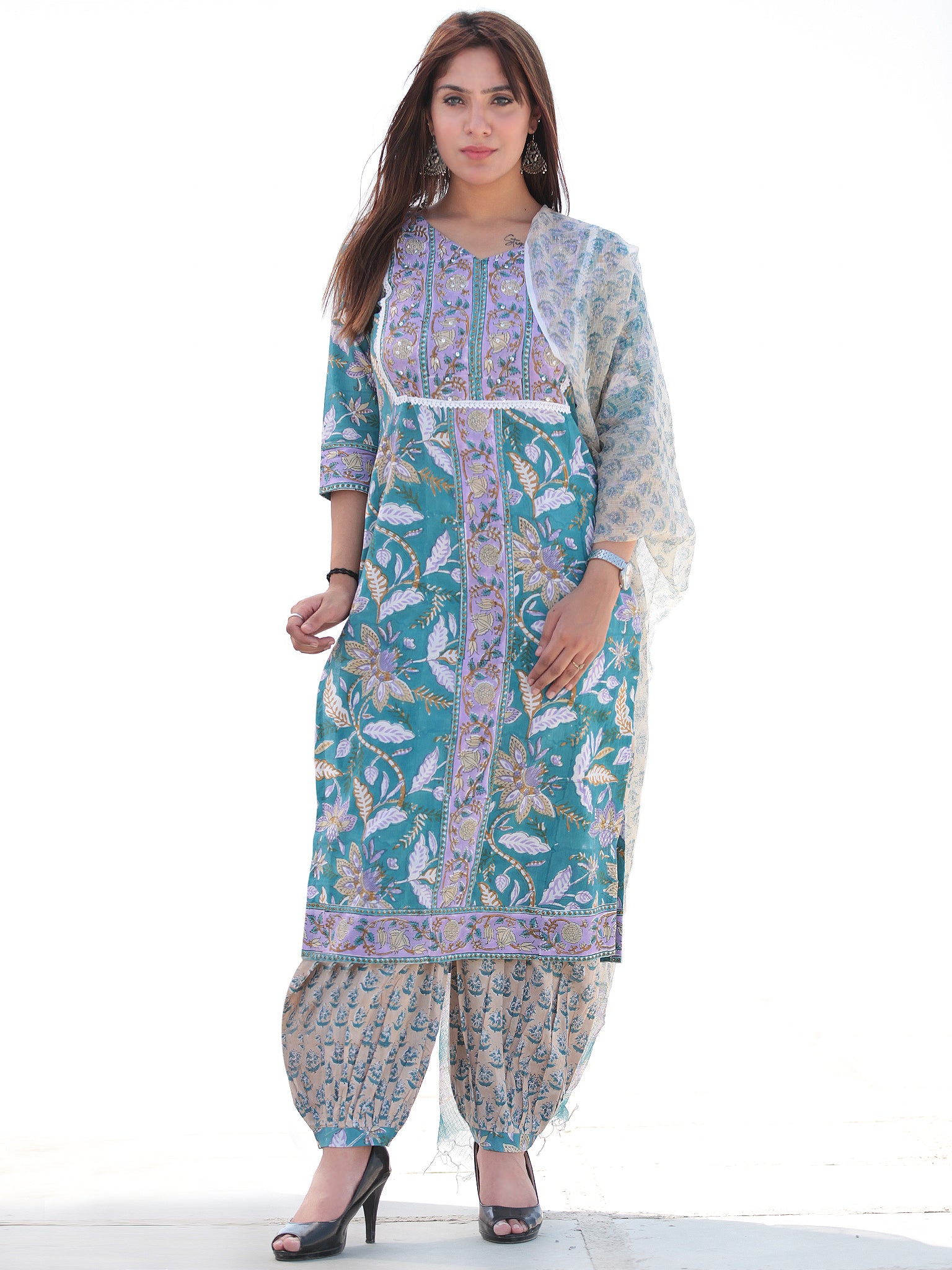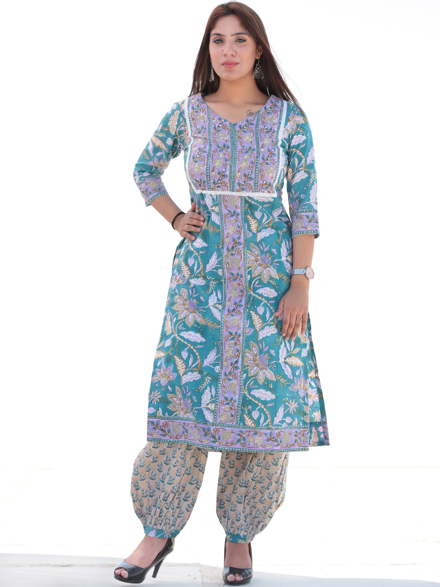 Fabric : Hand Block Printed. Kurta - Cotton. Pants - Cotton, Dupatta - Kota Doria