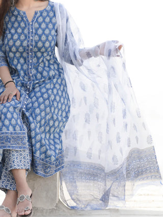 Fabric : Hand Block Printed. Kurta - Cotton. Pants - Cotton, Dupatta - Kota Doria