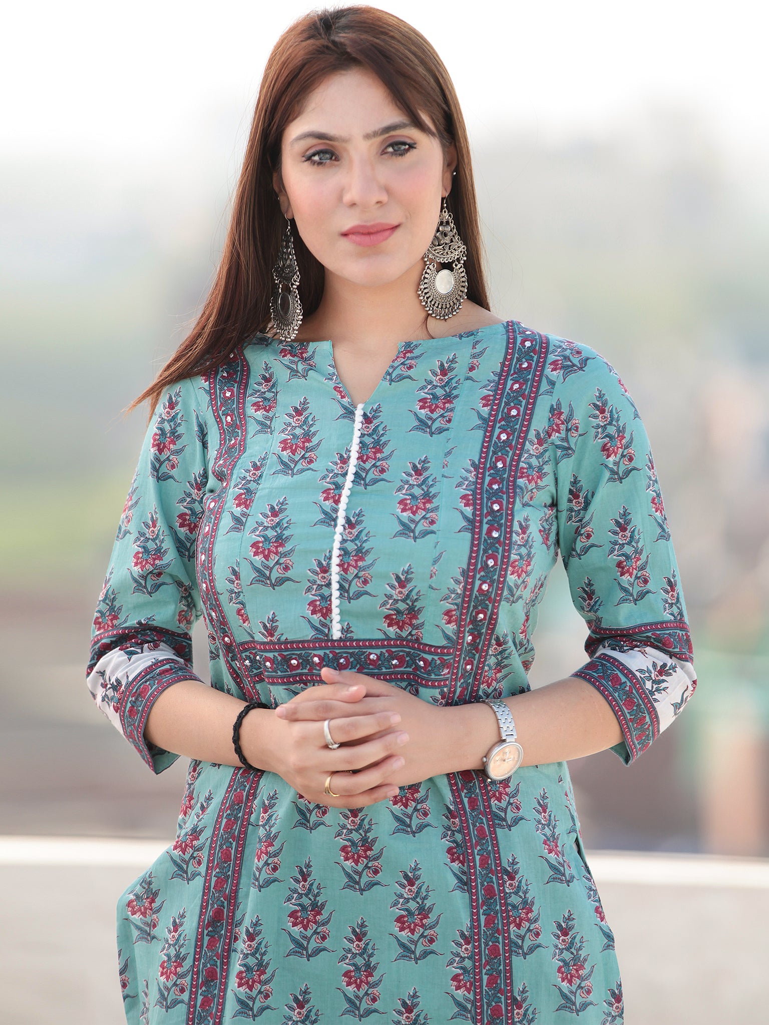 Product: This set contains Handcrafted Sanganeri Premium Cotton Kurta, 100% Cotton Pants and Kota Doria Dupatta.