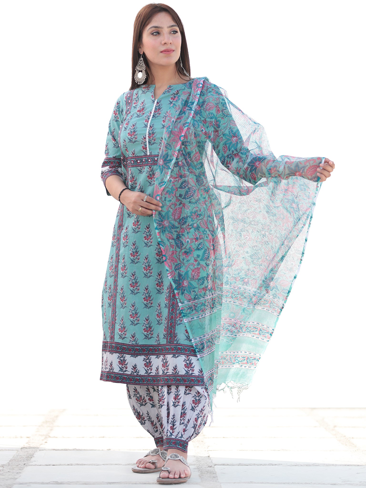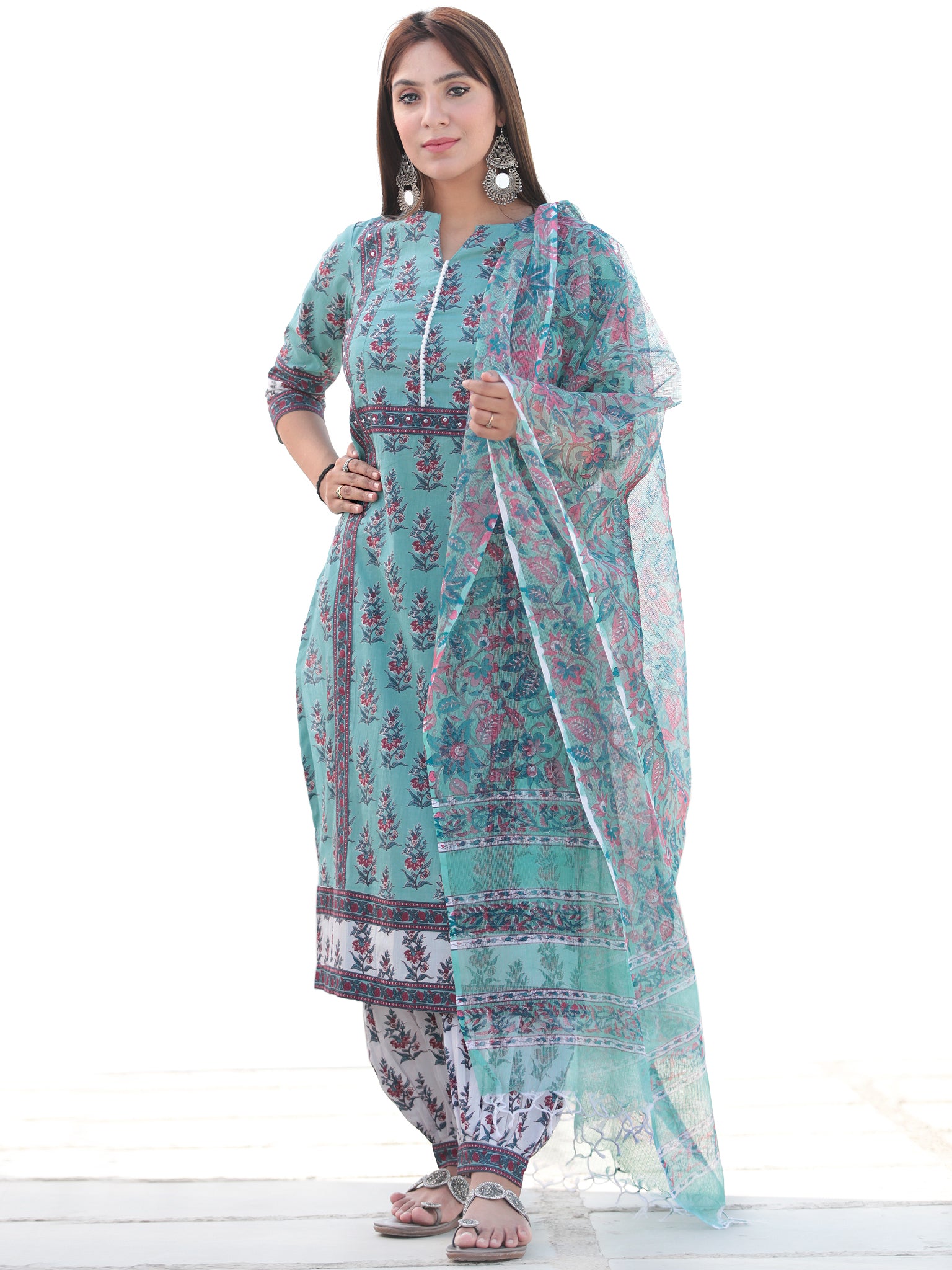 Fabric : Hand Block Printed. Kurta - Cotton. Pants - Cotton, Dupatta - Kota Doria