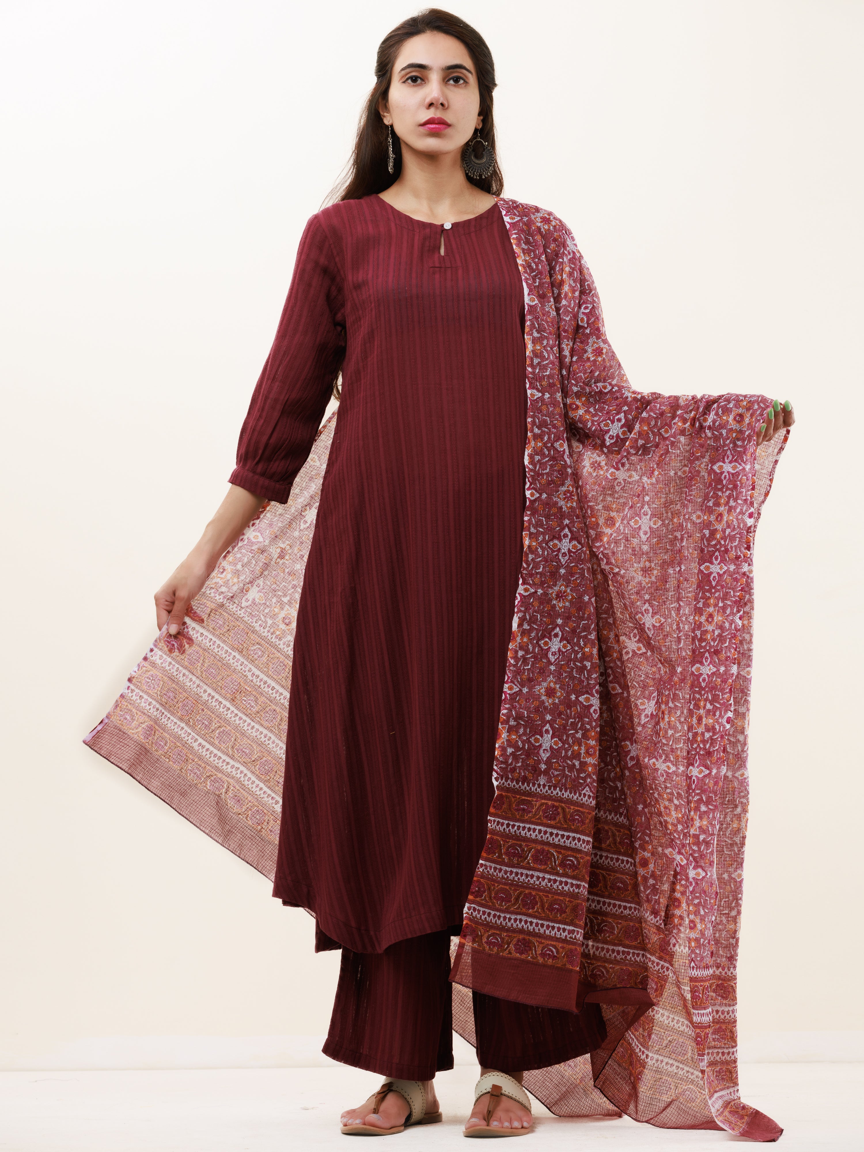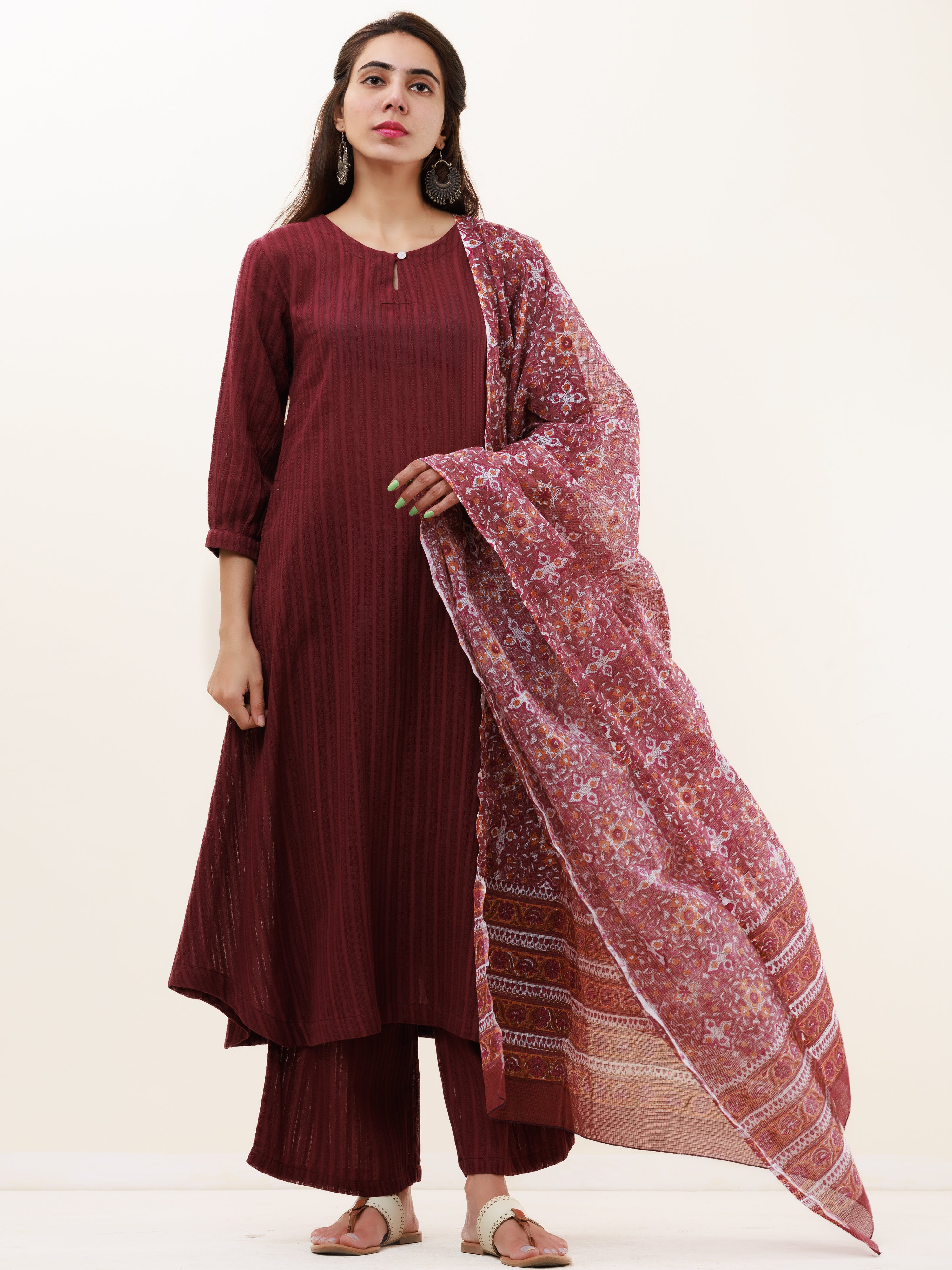 Roz Aaina Set Of Kurta Pants Kota Dupatta