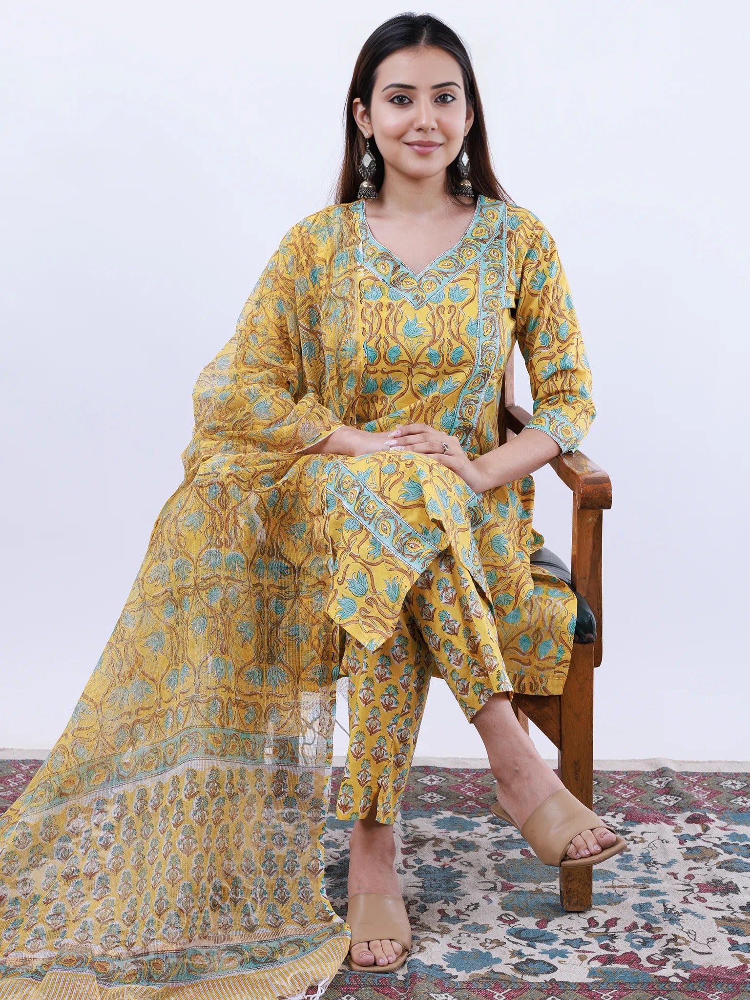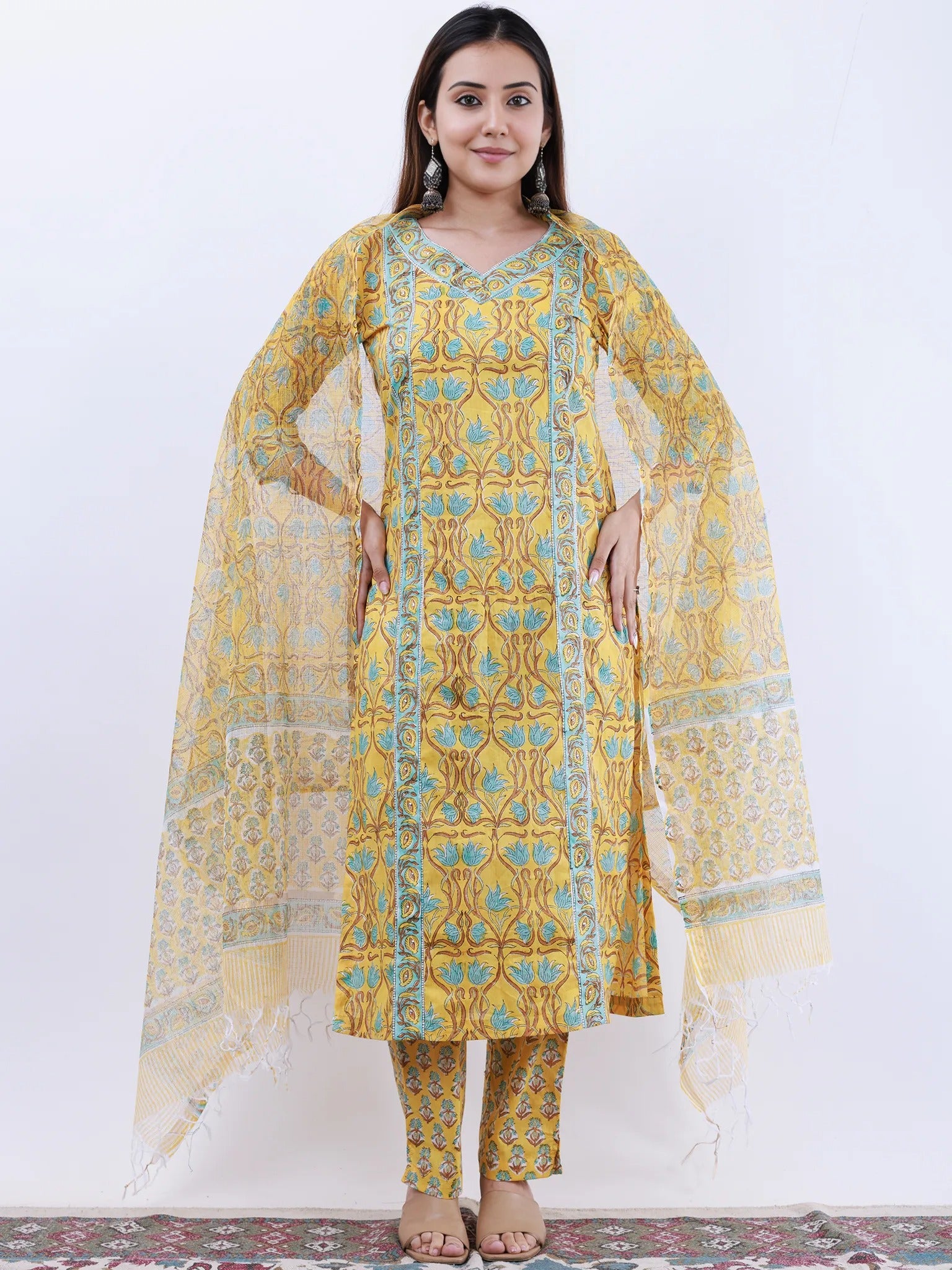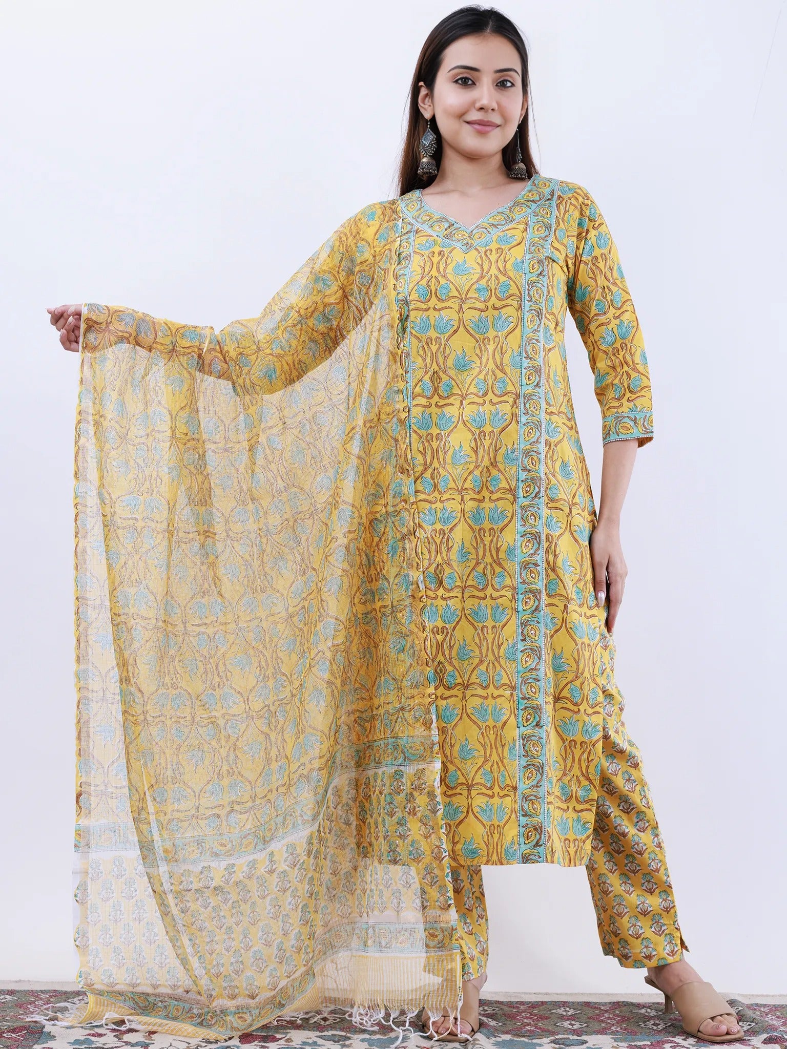 Fabric : Hand Block Printed. Kurta - Cotton . Pants - Cotton, Dupatta - Kota Doria