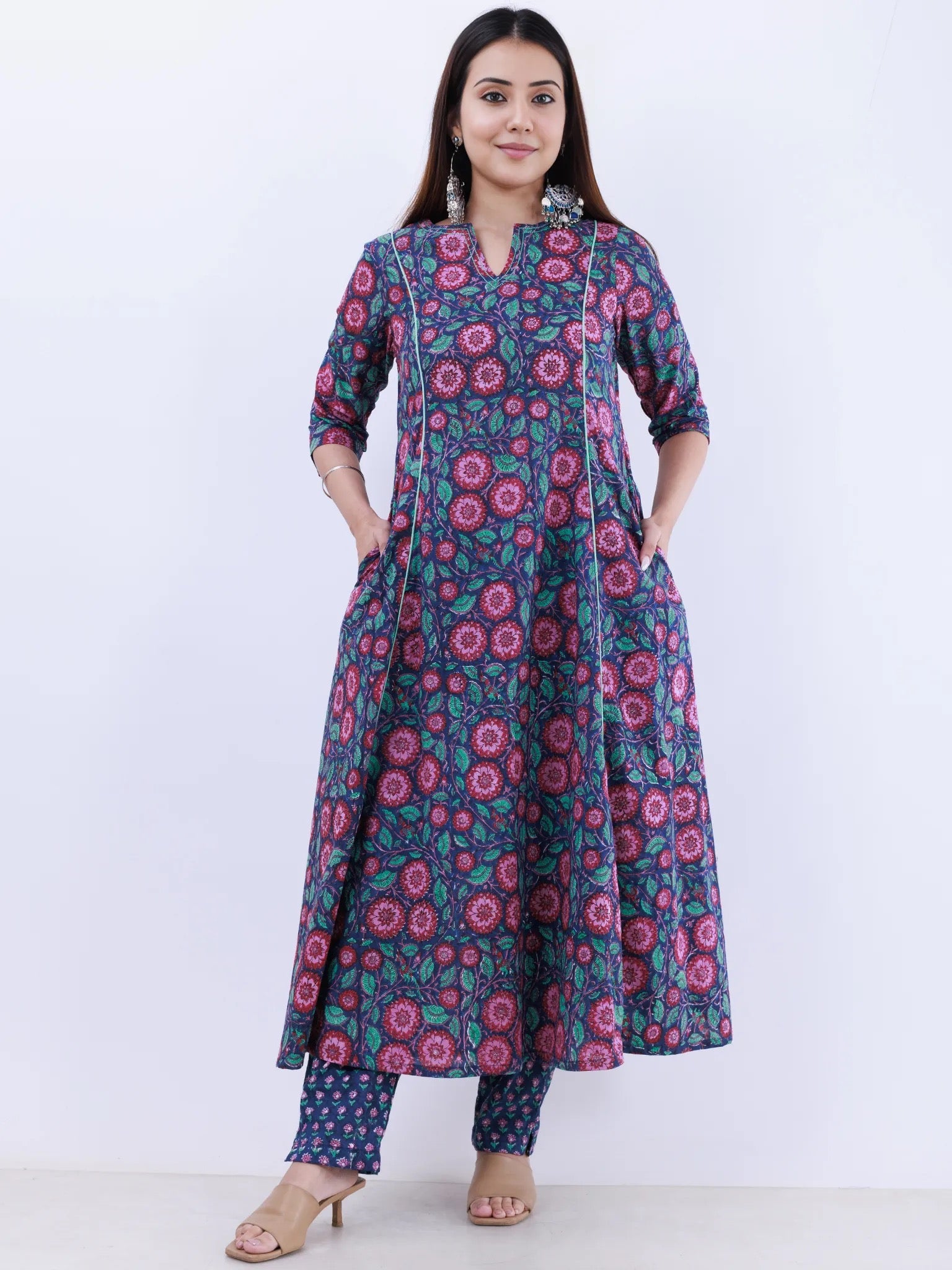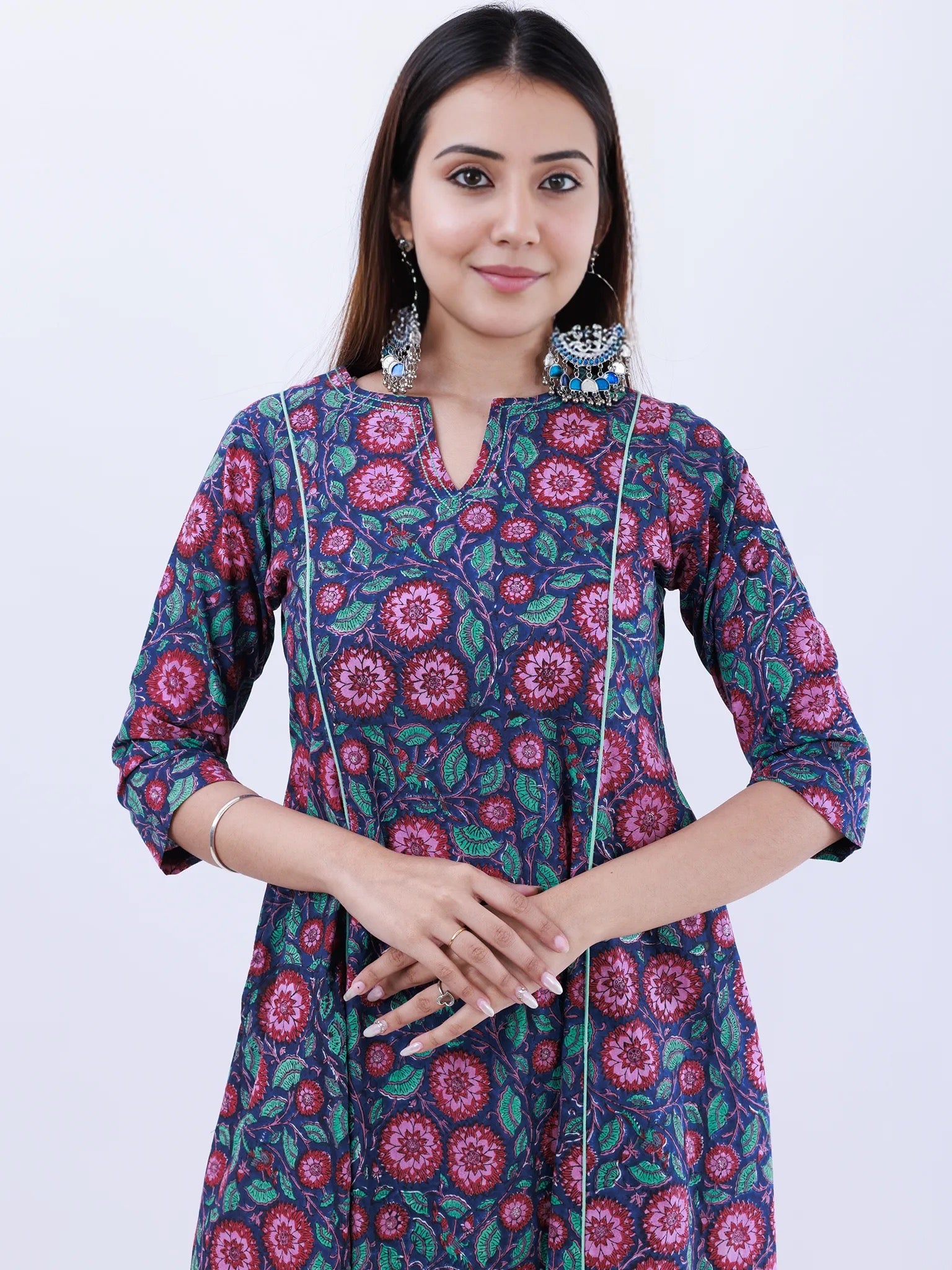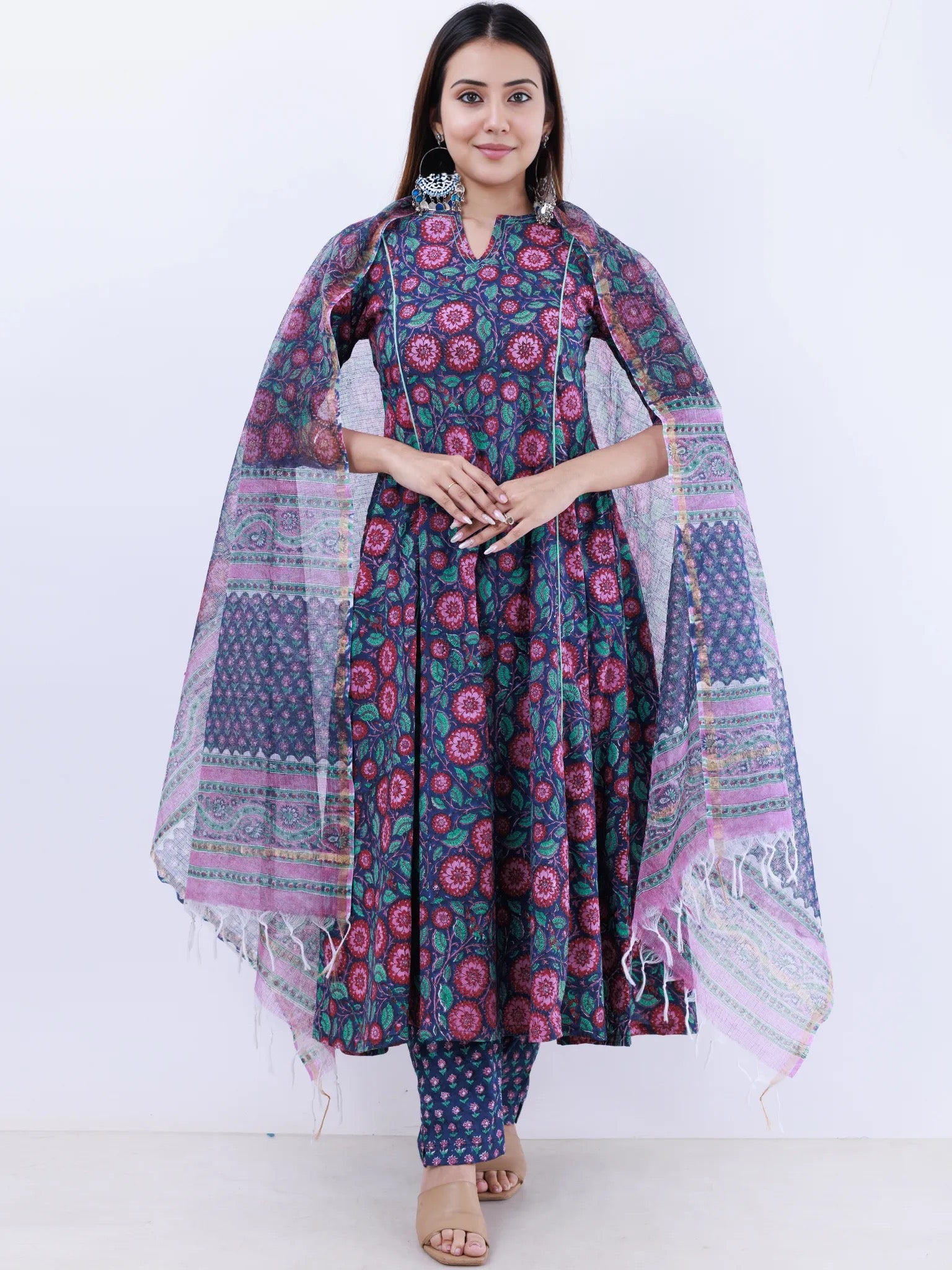 Product: This set contains Hand Block Printed Premium Cotton Kurta, 100% Cotton Pants and Kota Doria Dupatta.