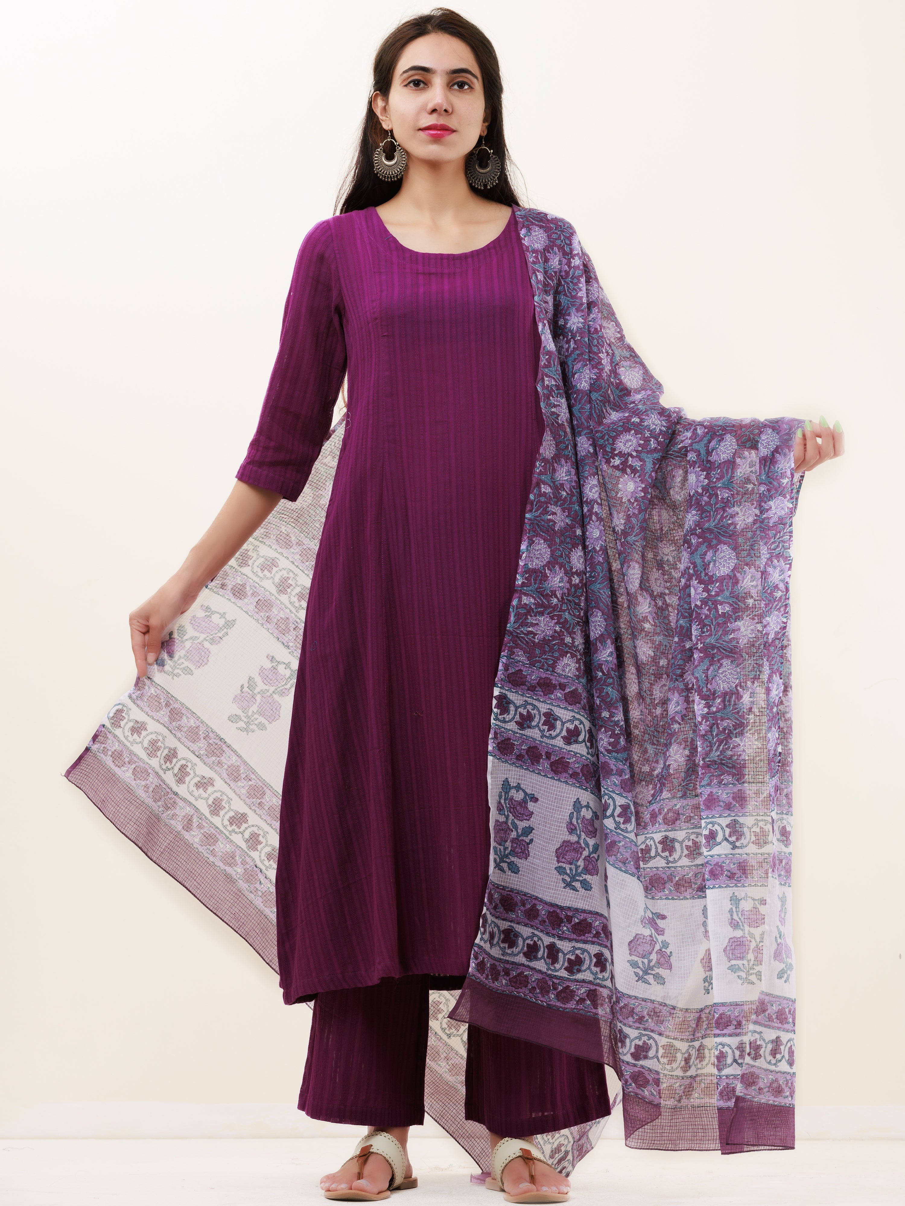Roz Paro Set Of Kurta Pants Kota Dupatta