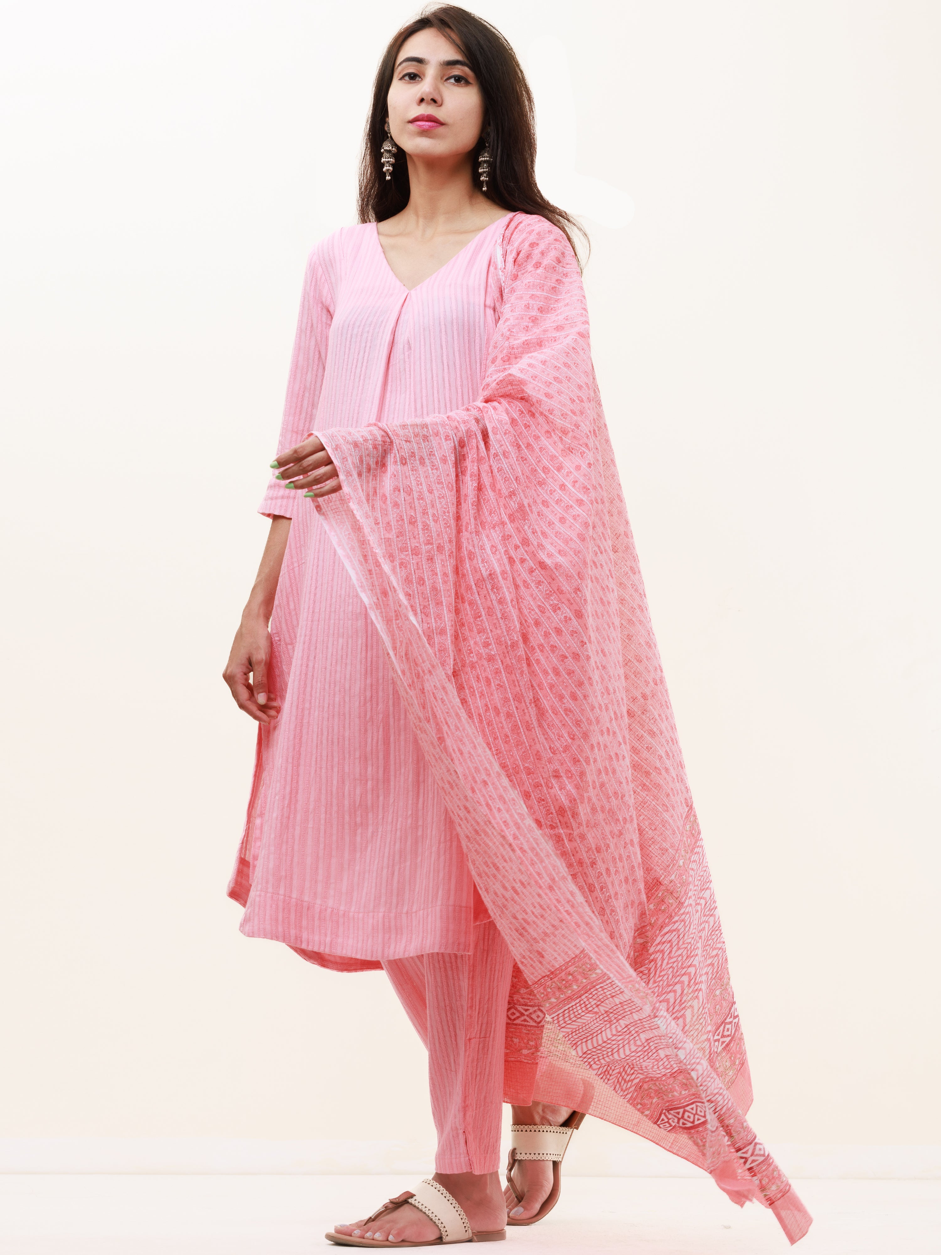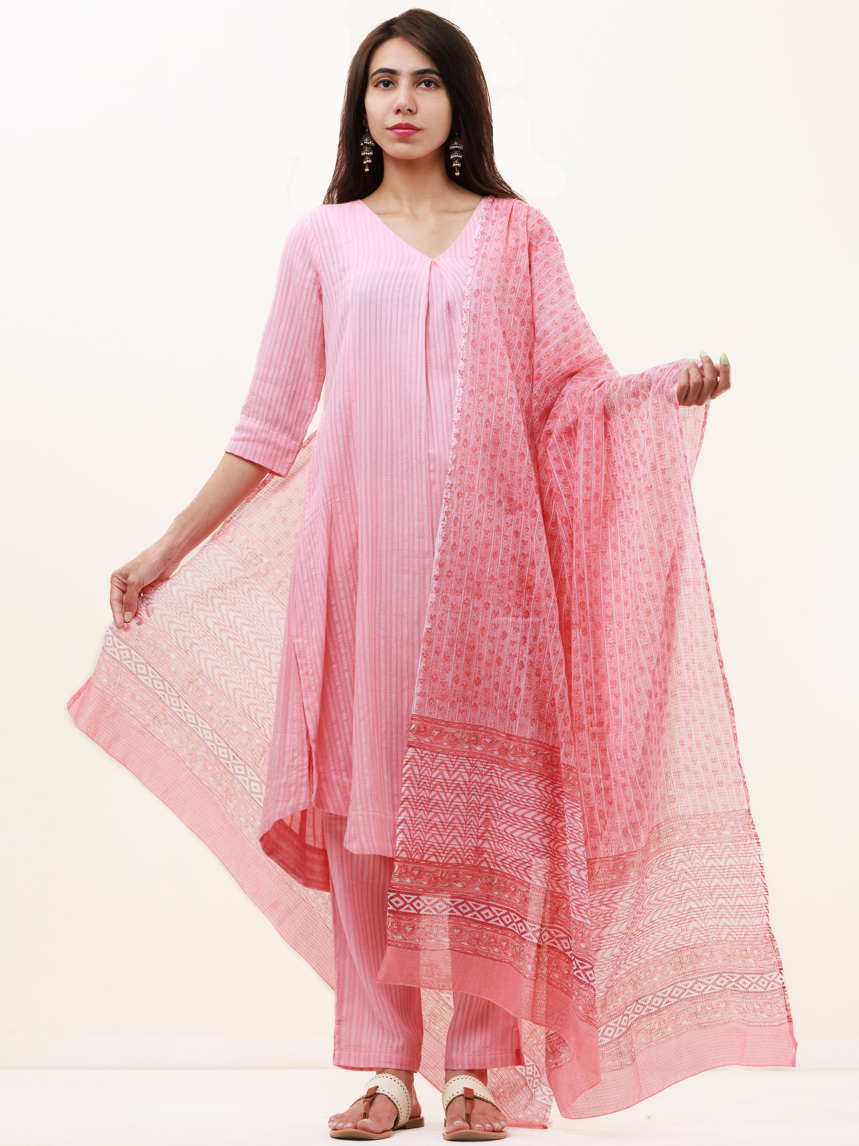 Roz Sonam Set Of Kurta Pants Kota Dupatta