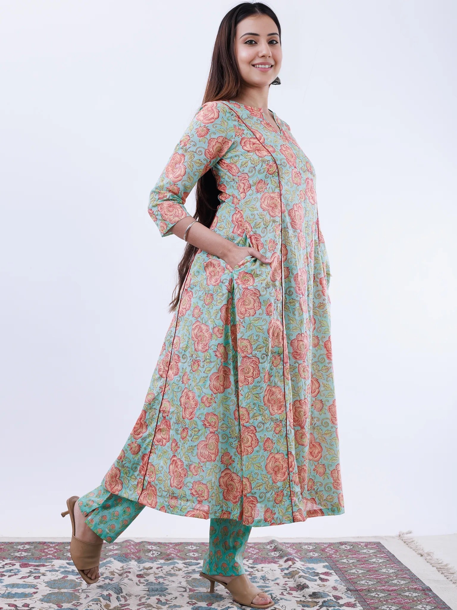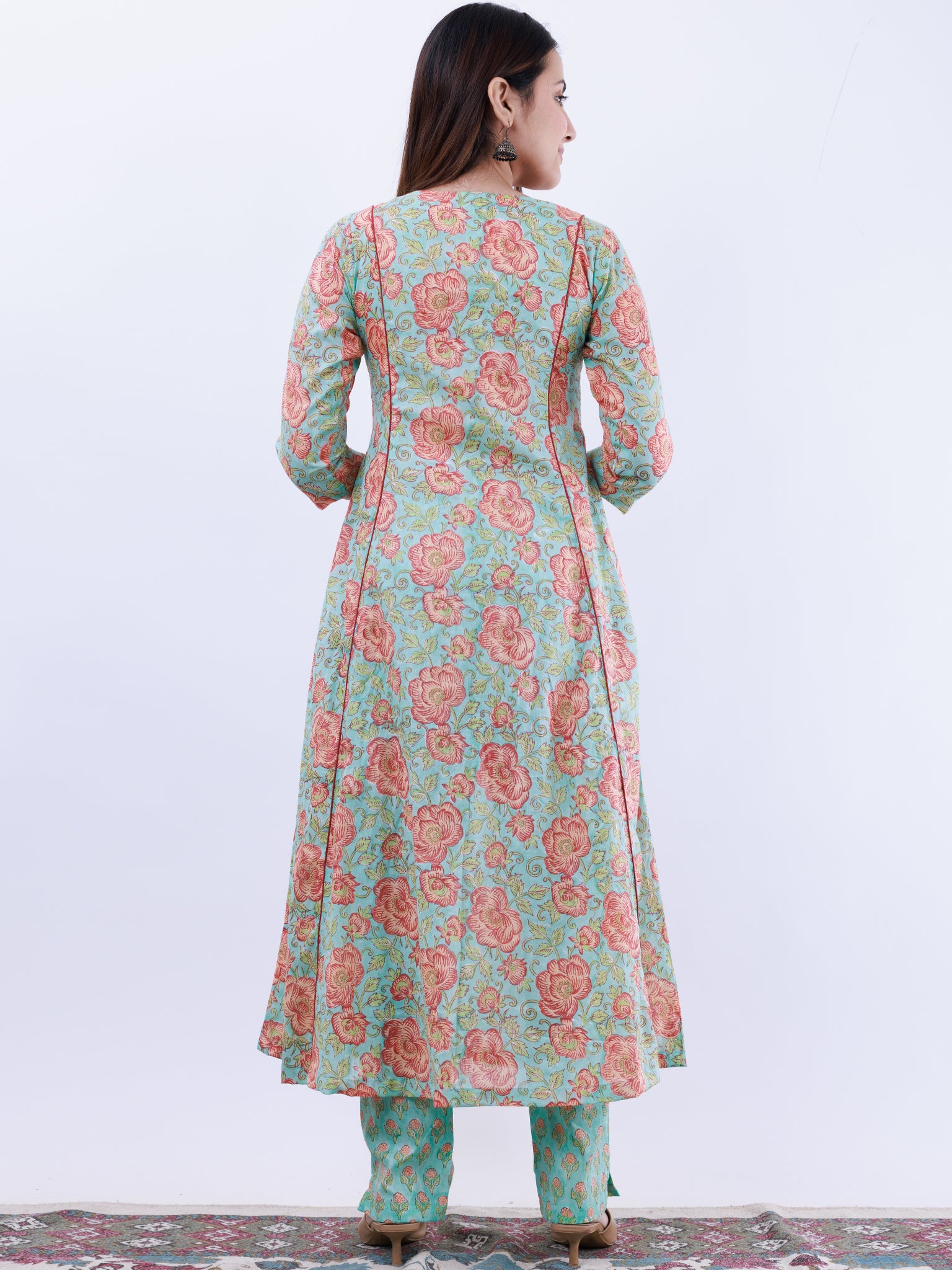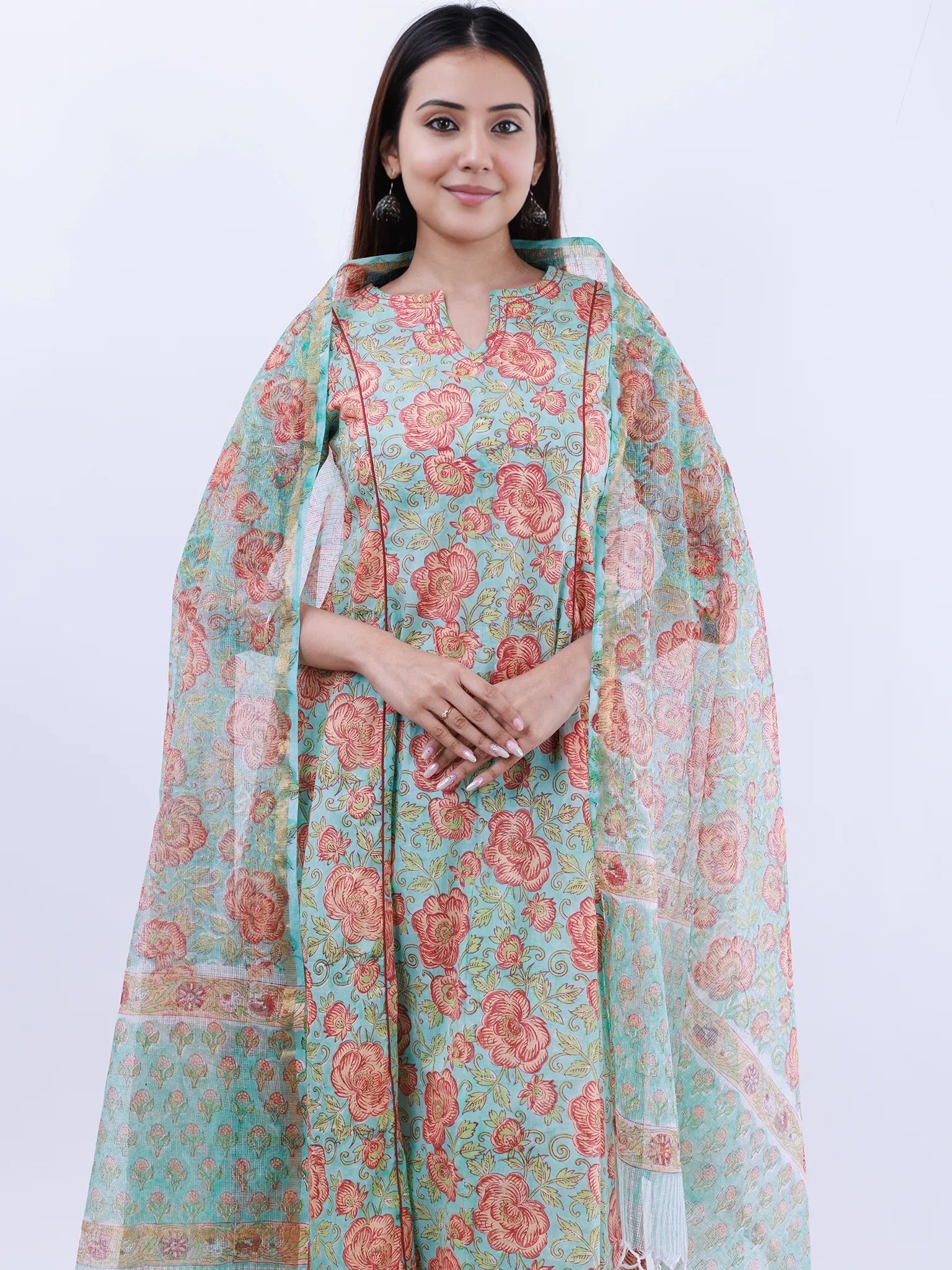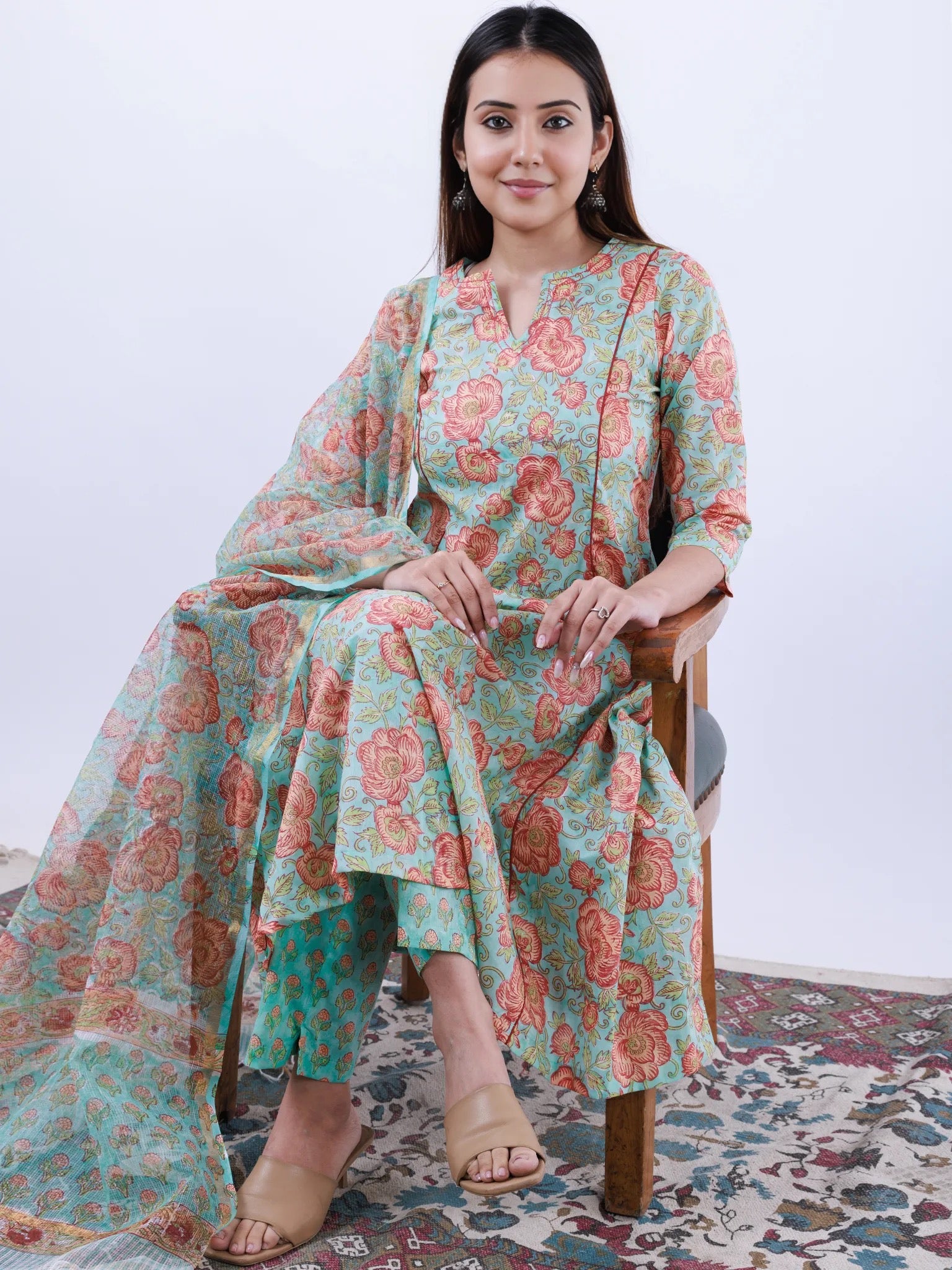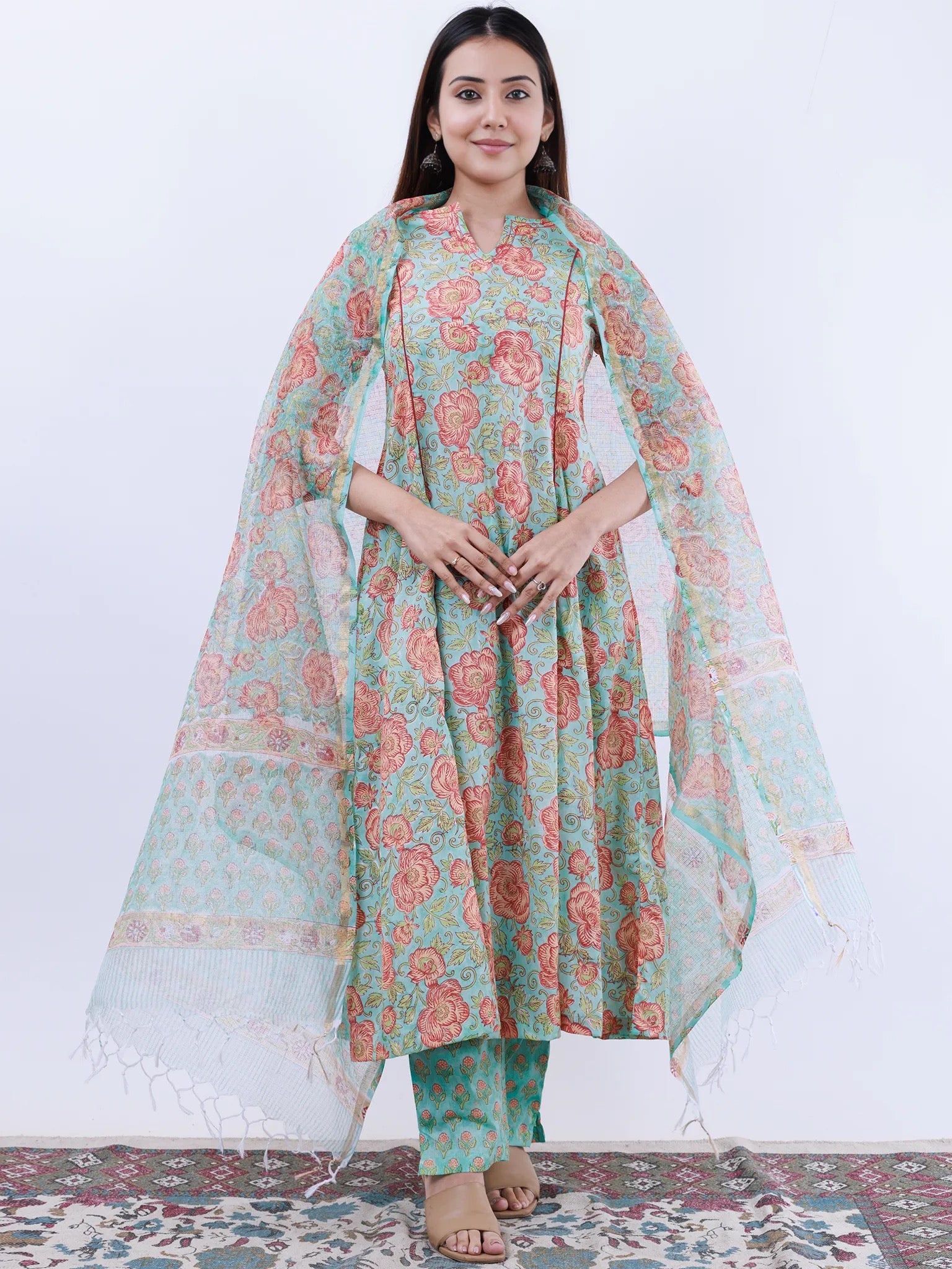 Product: This set contains Hand Block Printed Premium Cotton Kurta, 100% Cotton Pants and Kota Doria Dupatta.