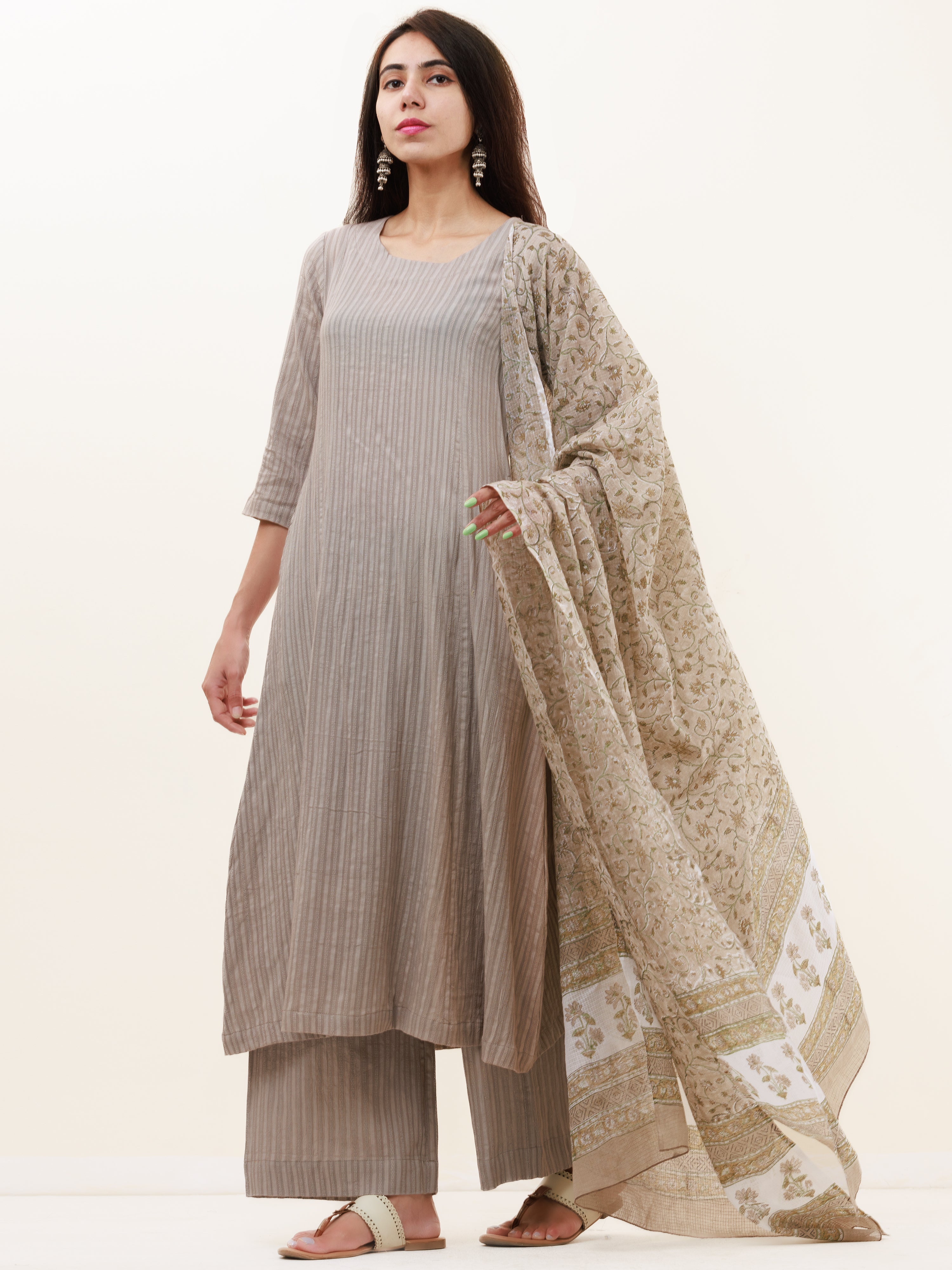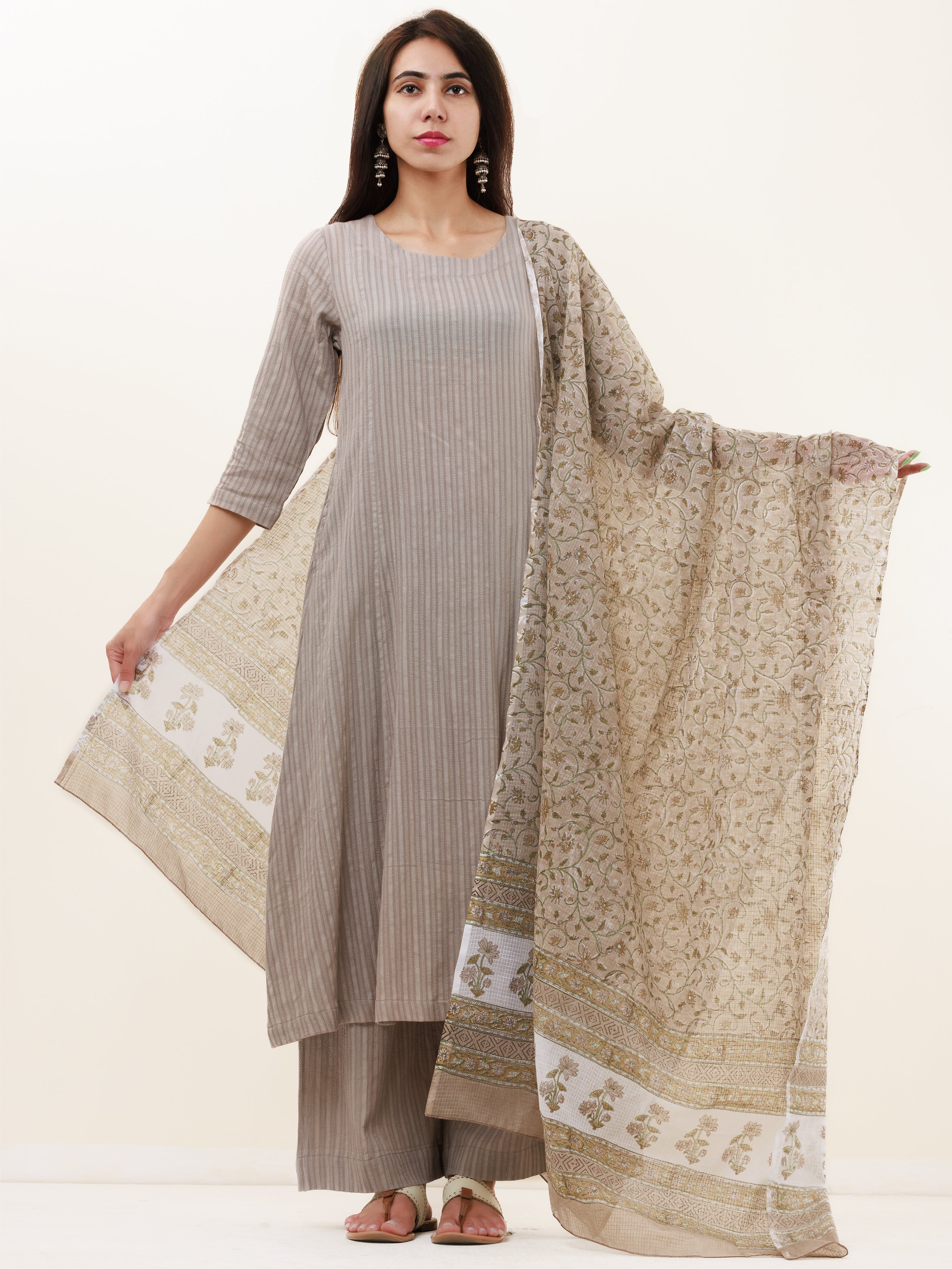 Roz Tara Set Of Kurta Pants Kota Dupatta