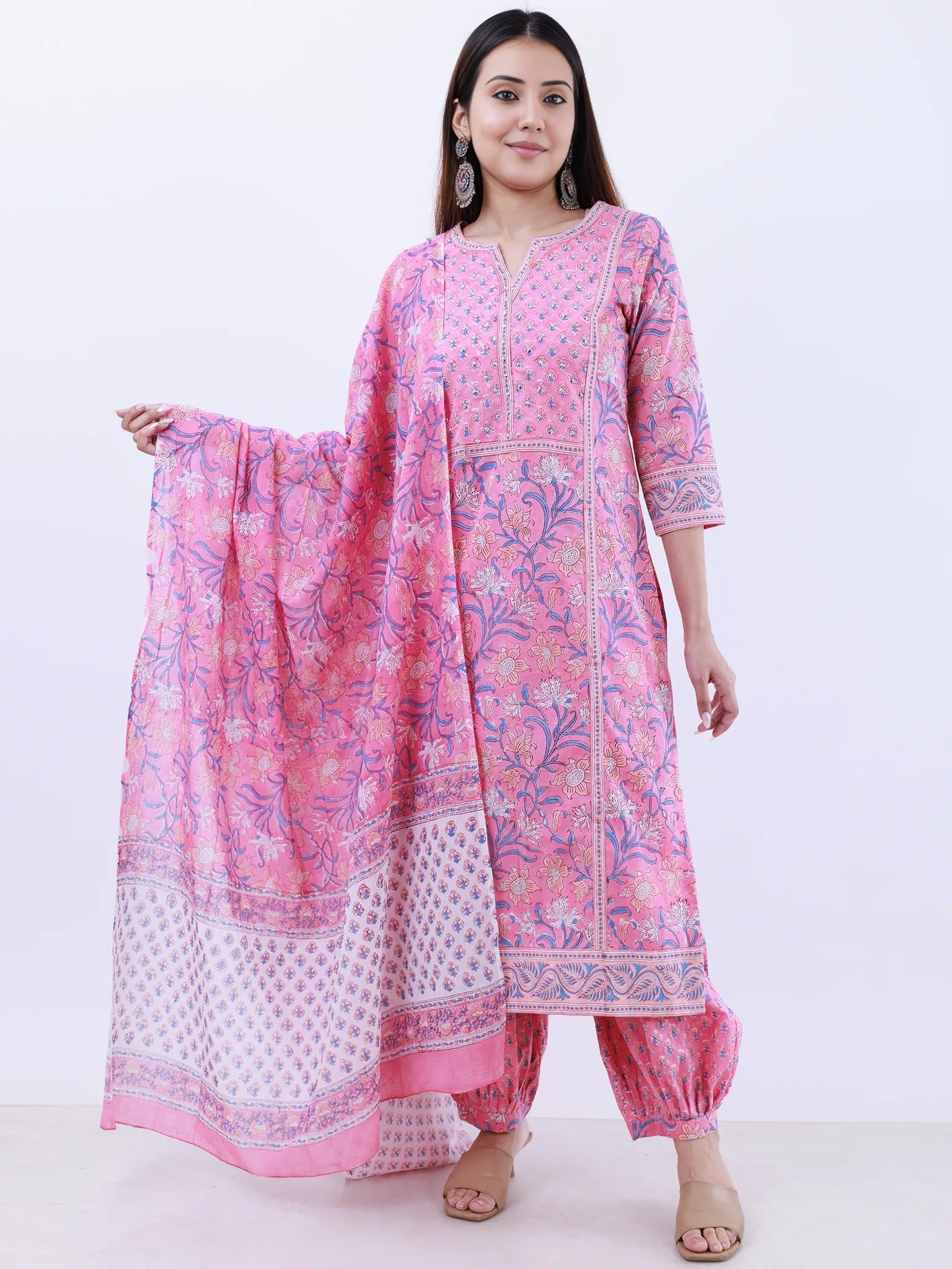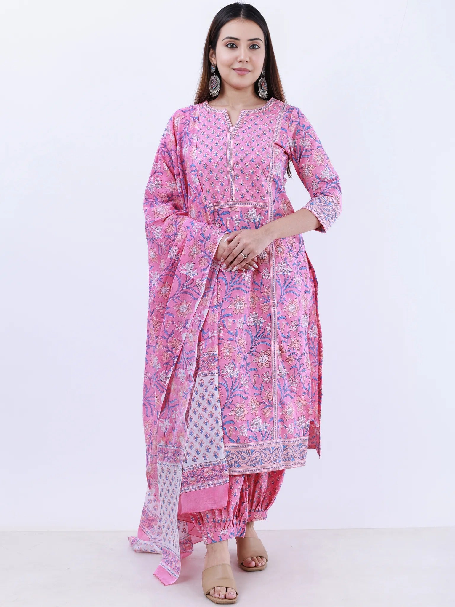 Fabric : Hand Block Printed. Kurta - Cotton . Pants - Cotton, Dupatta - Cotton