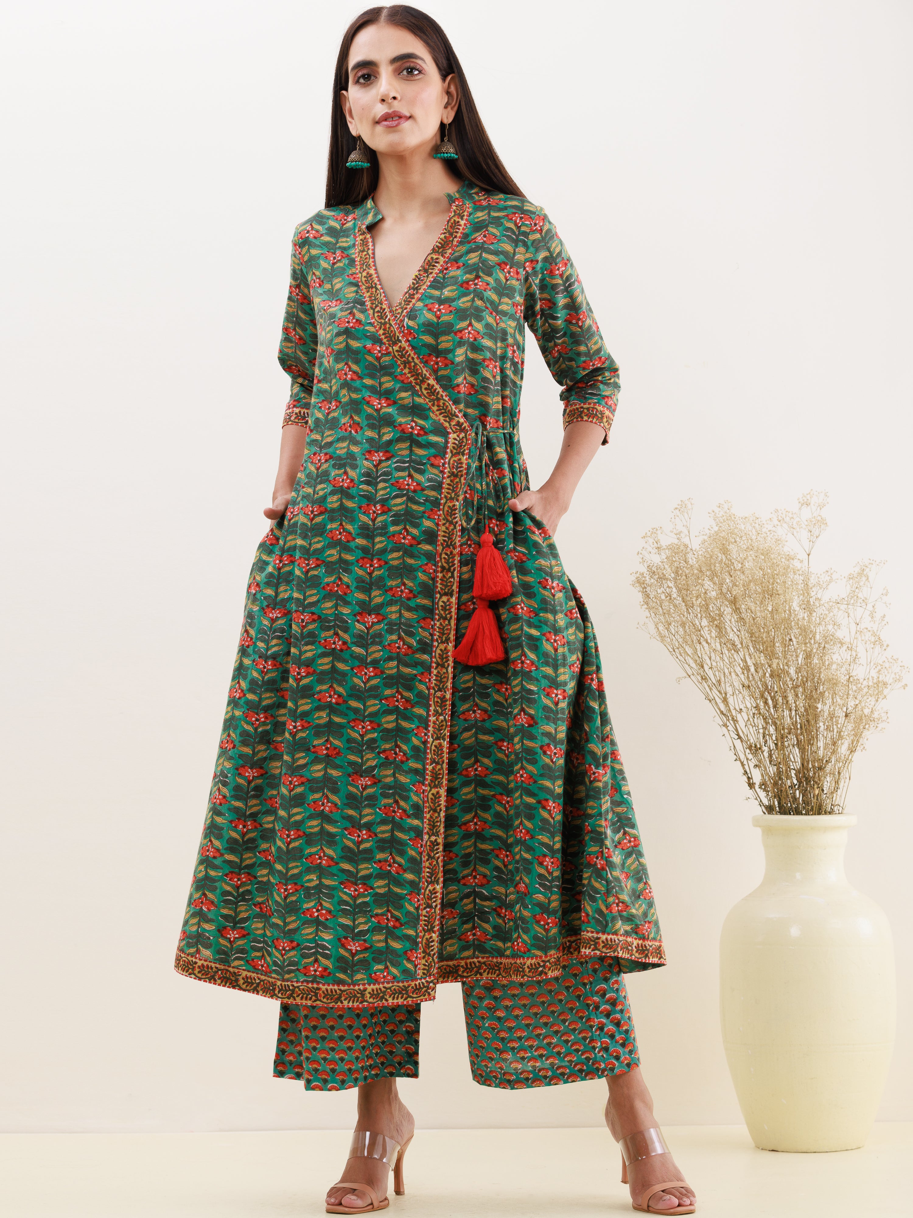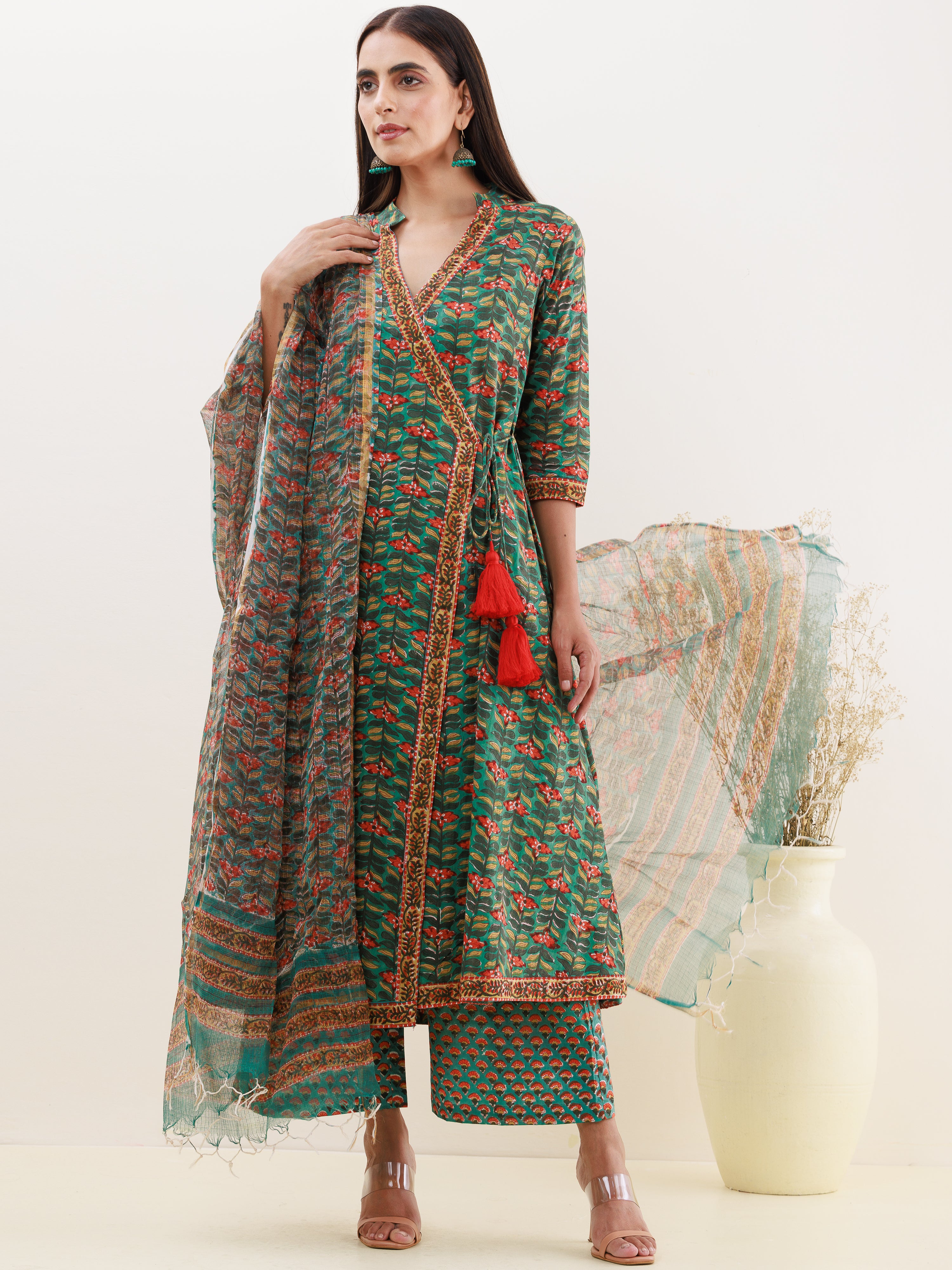 Product: This set contains Handcrafted Sanganeri Premium Cotton Kurta, 100% Cotton Pants and Kota Doria Dupatta.
