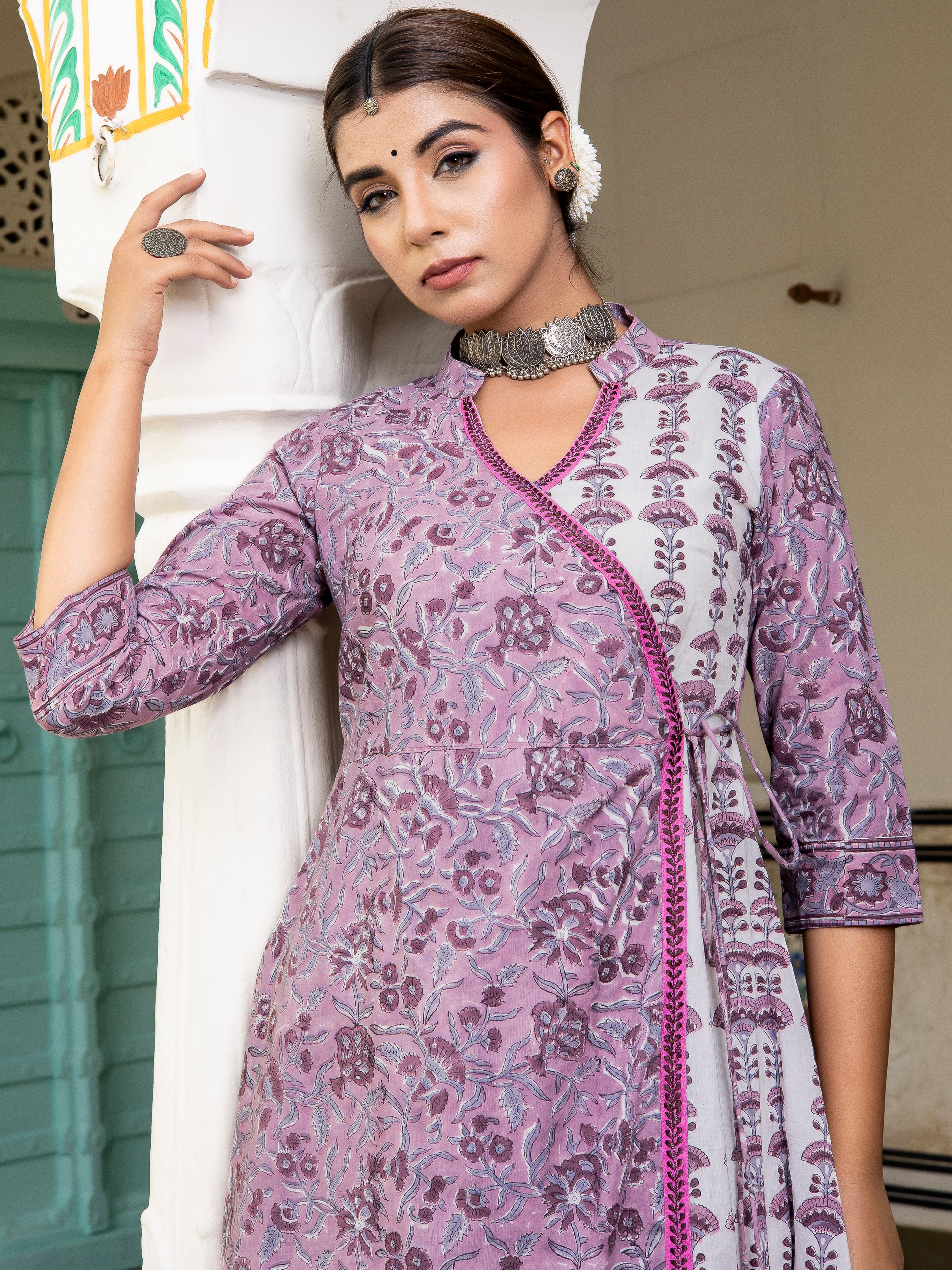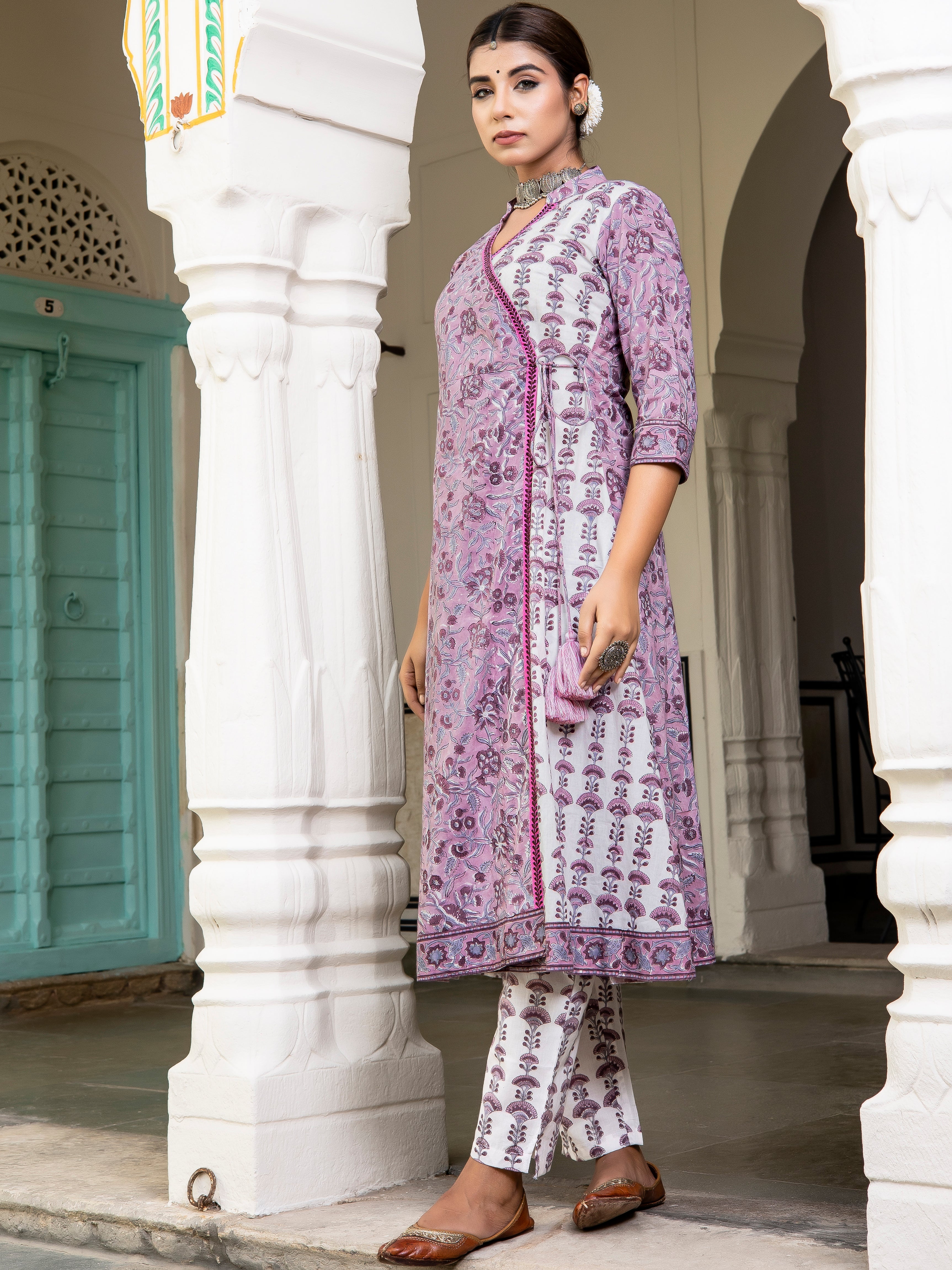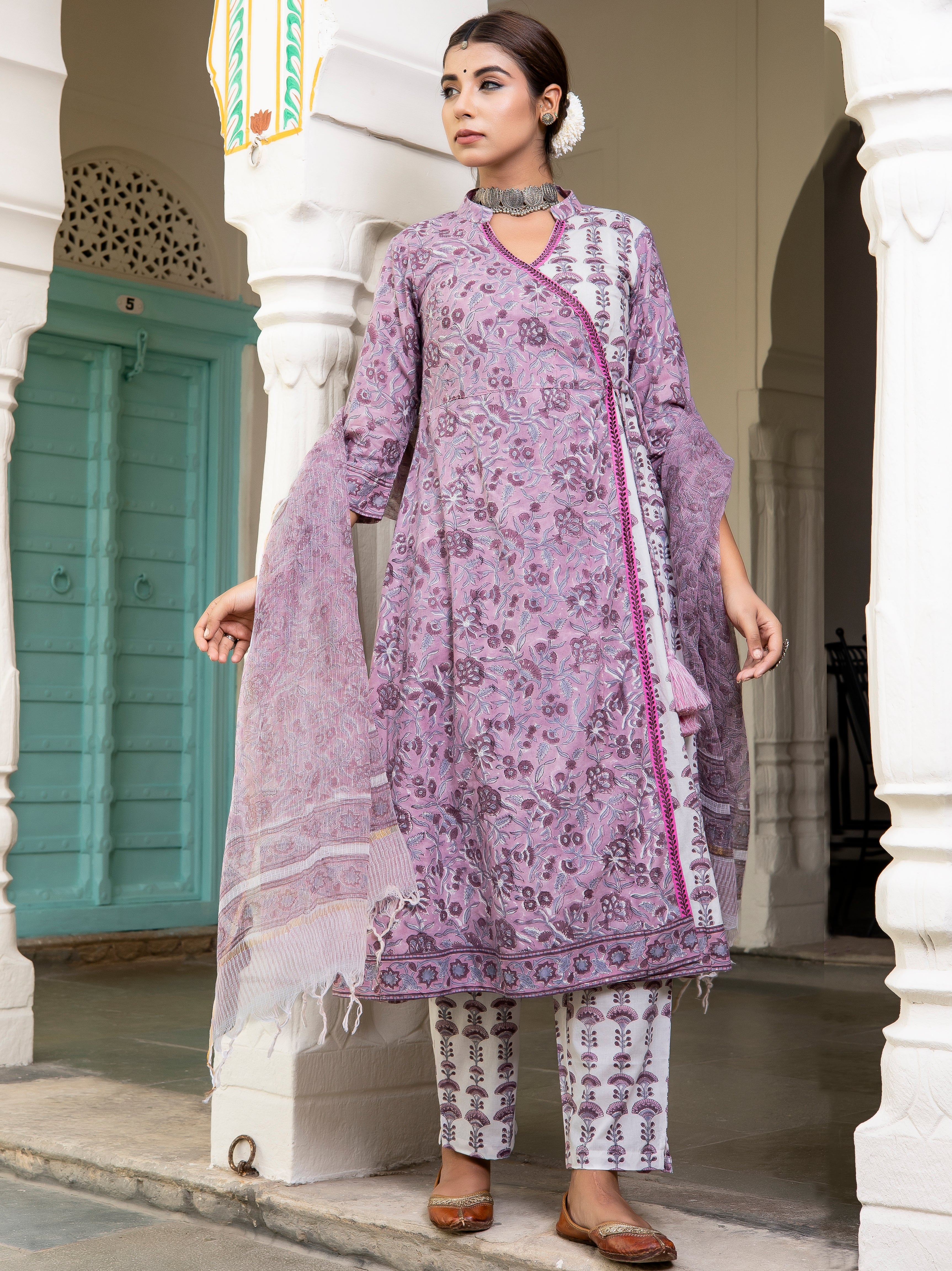 Product: This set contains Handcrafted Sanganeri Premium Cotton Kurta, 100% Cotton Pants and Kota Doria Dupatta.