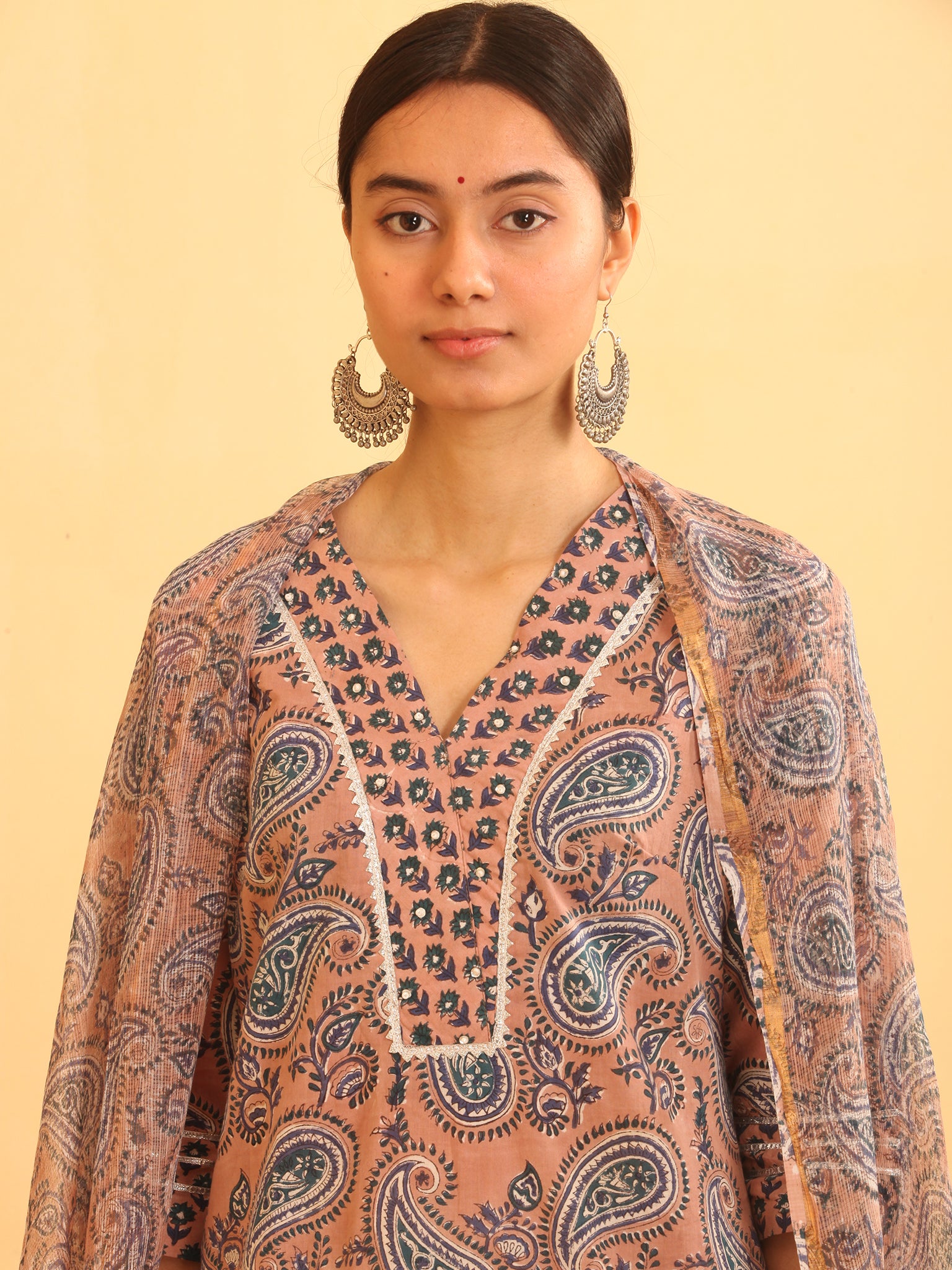 Fabric : Hand Block Printed. Kurta - Cotton. Pants - Cotton, Dupatta - Kota Doria