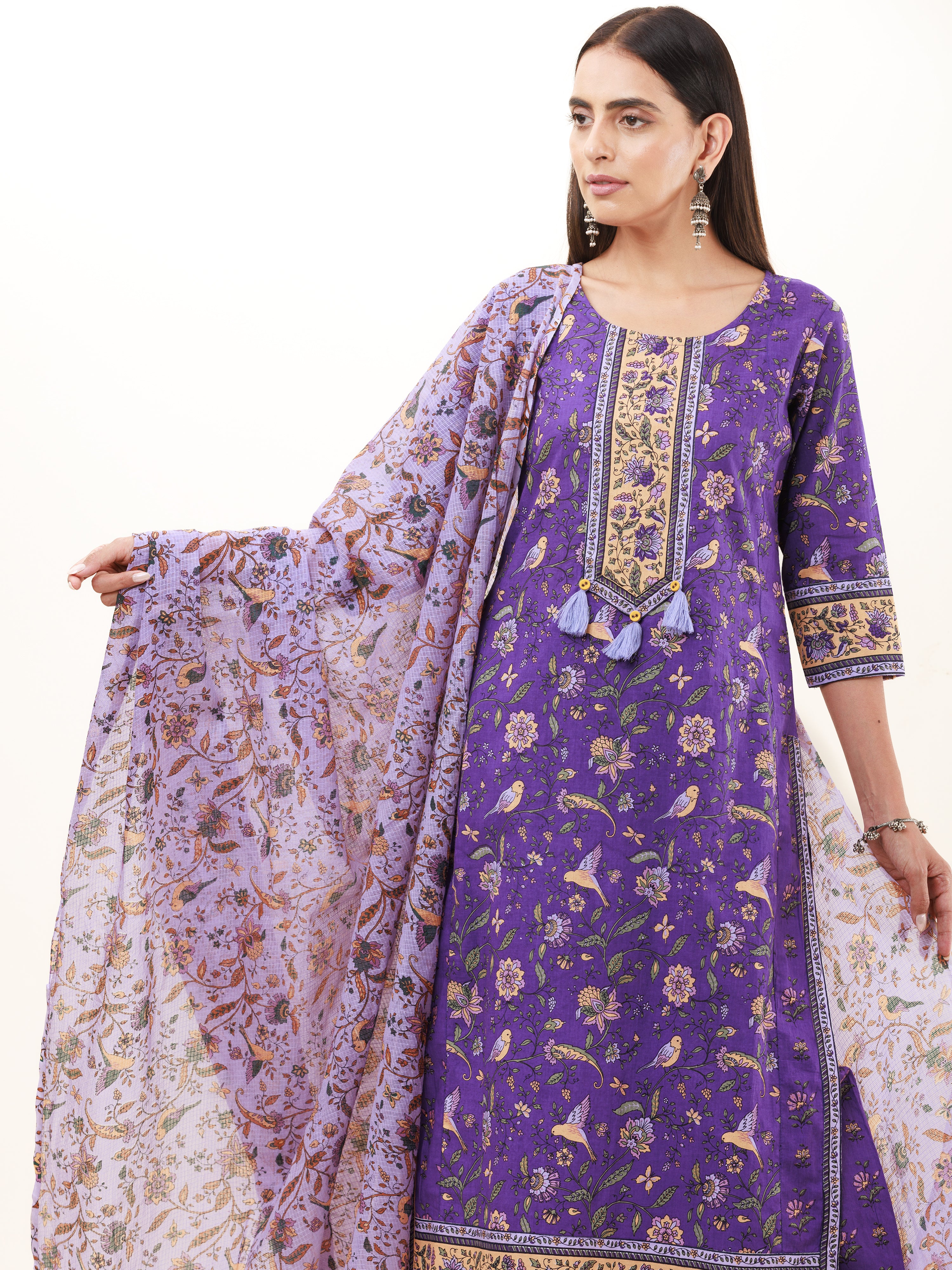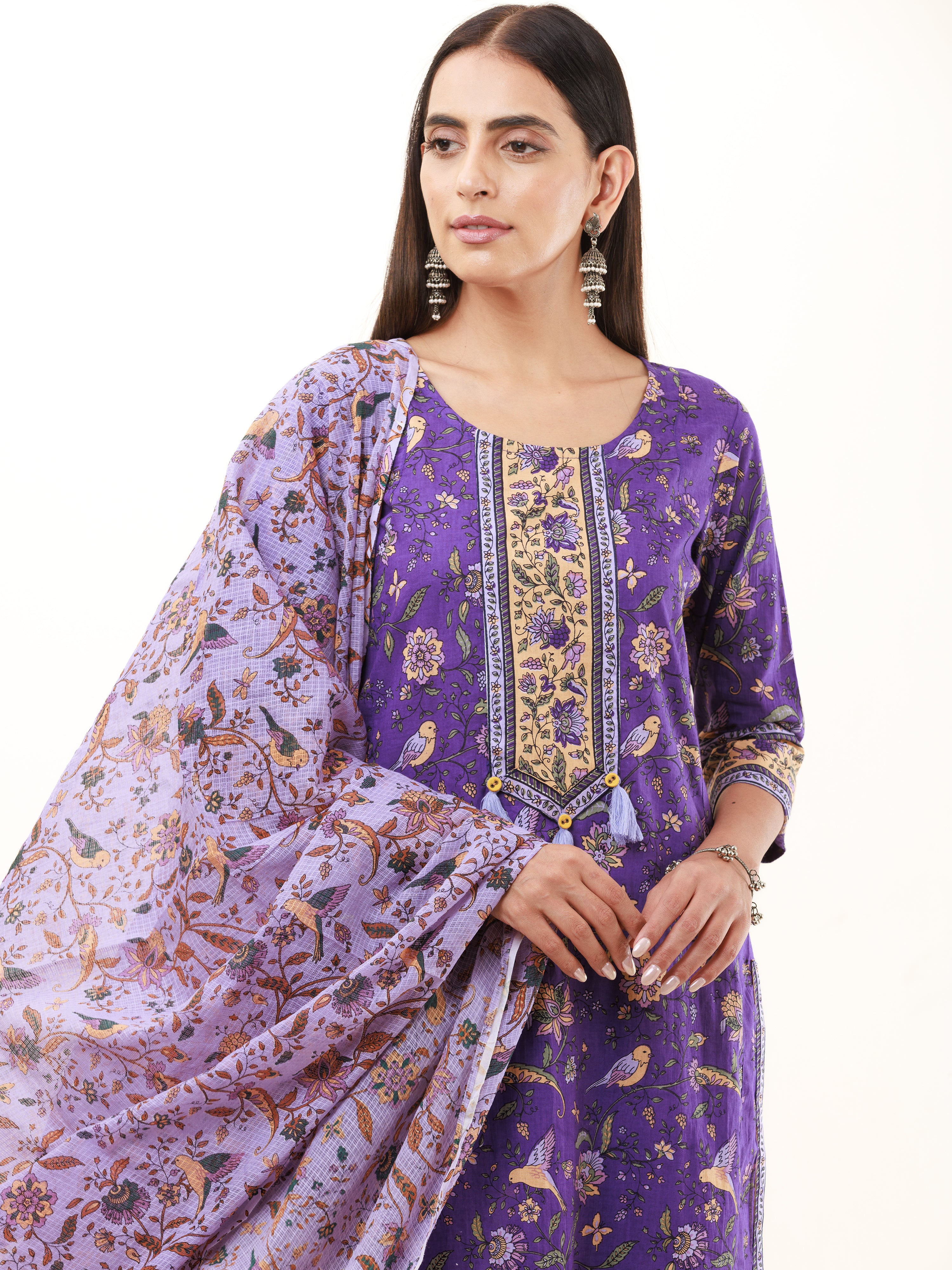 Product: This set contains Handcrafted Sanganeri Premium Cotton Kurta, 100% Cotton Pants and Kota Doria Dupatta.